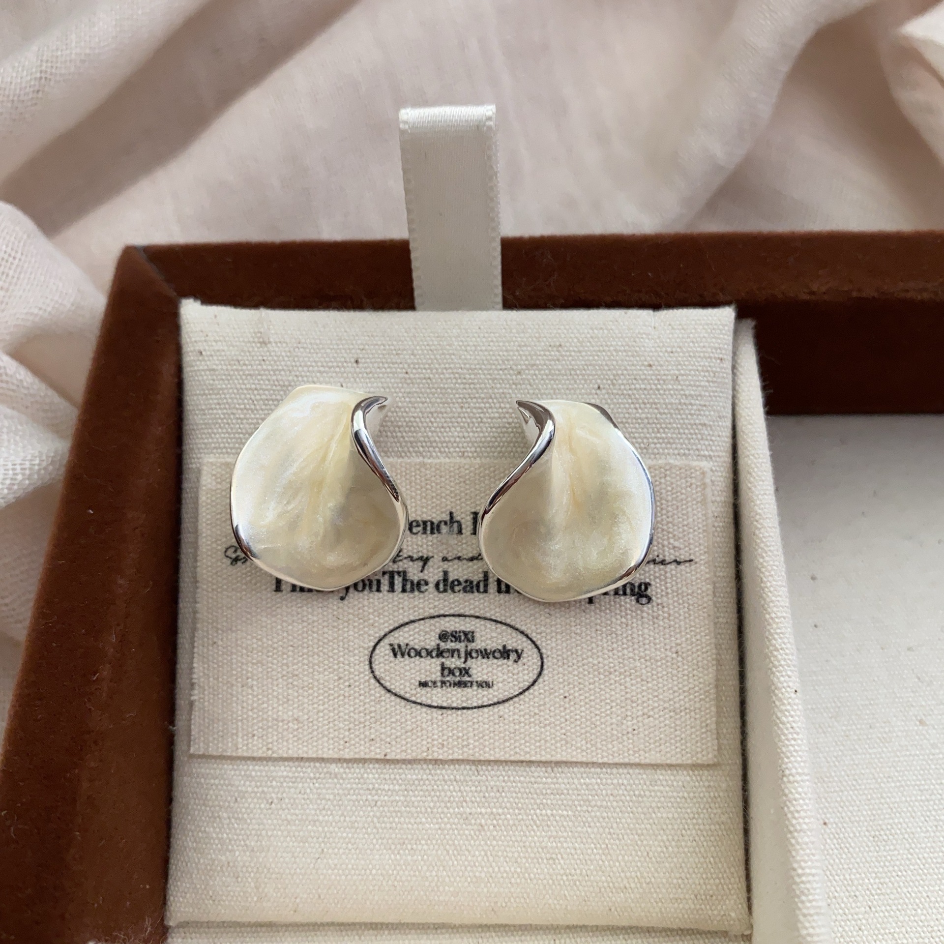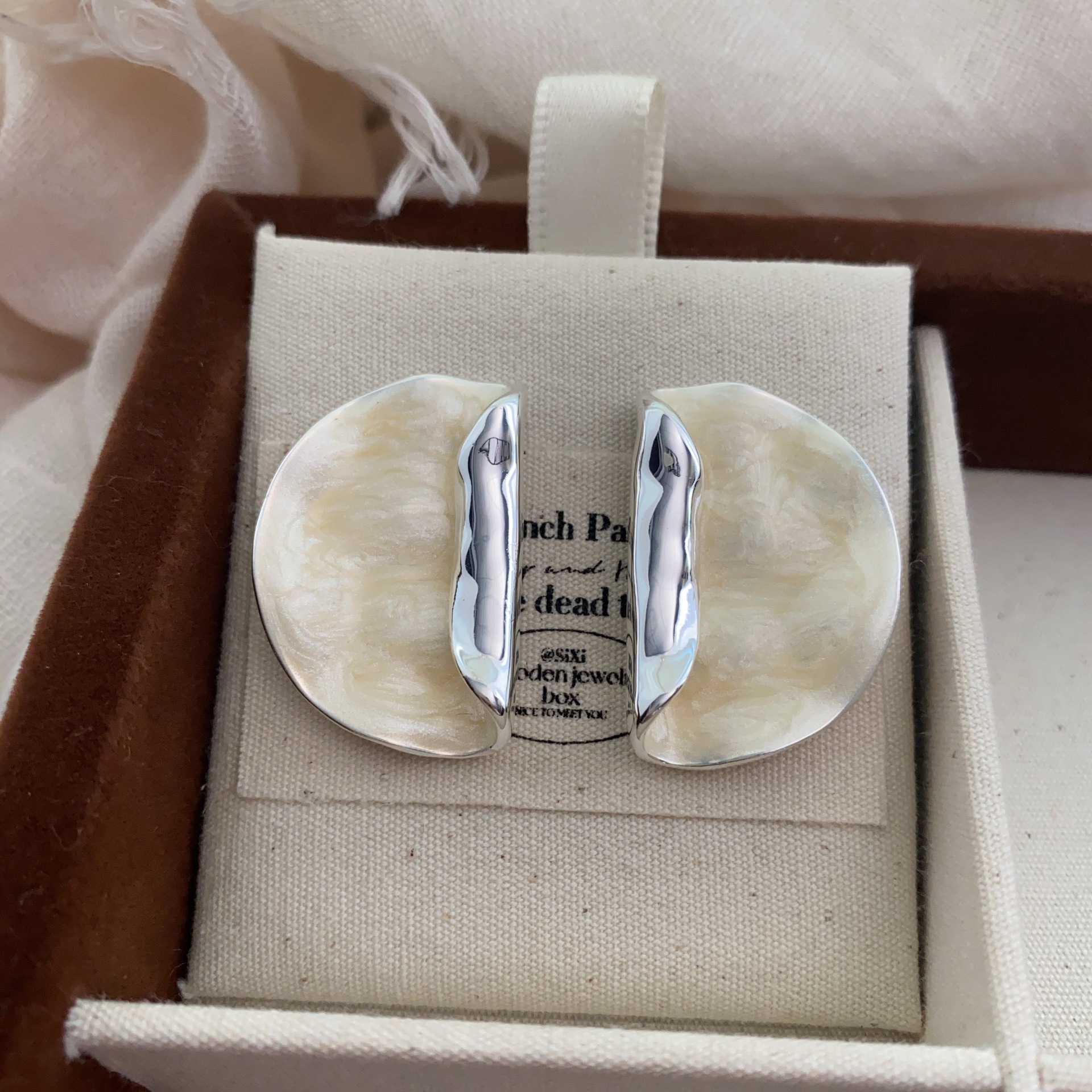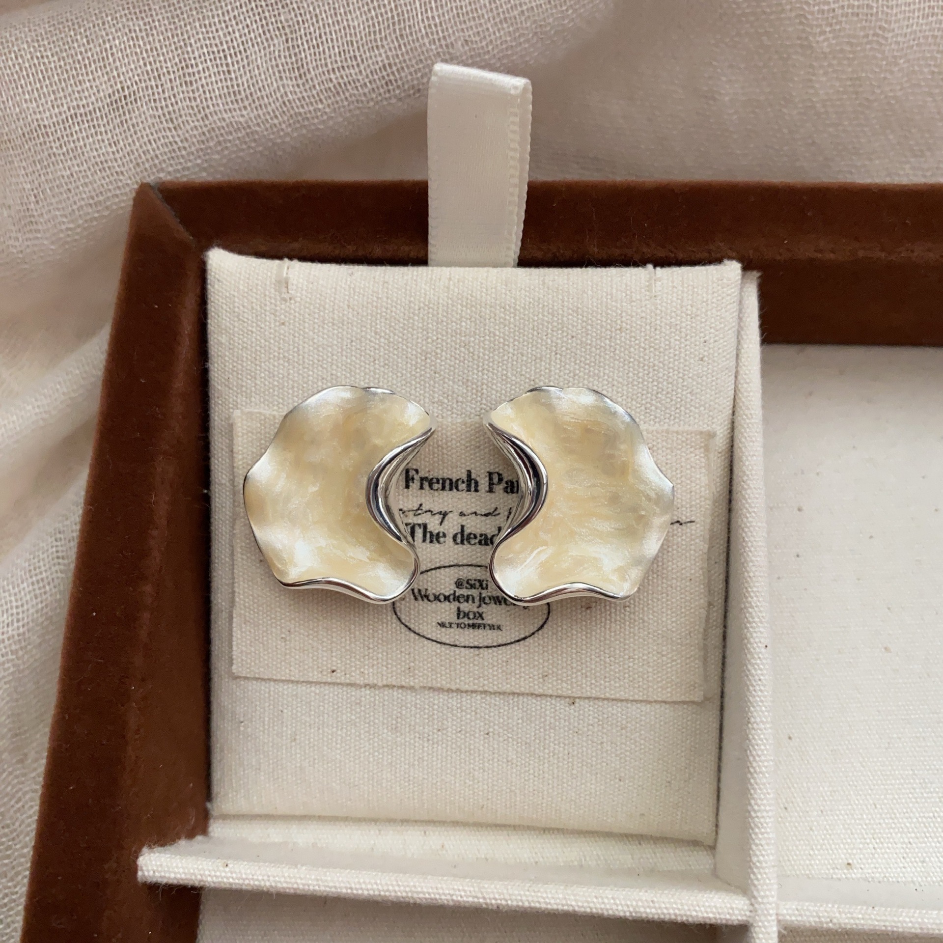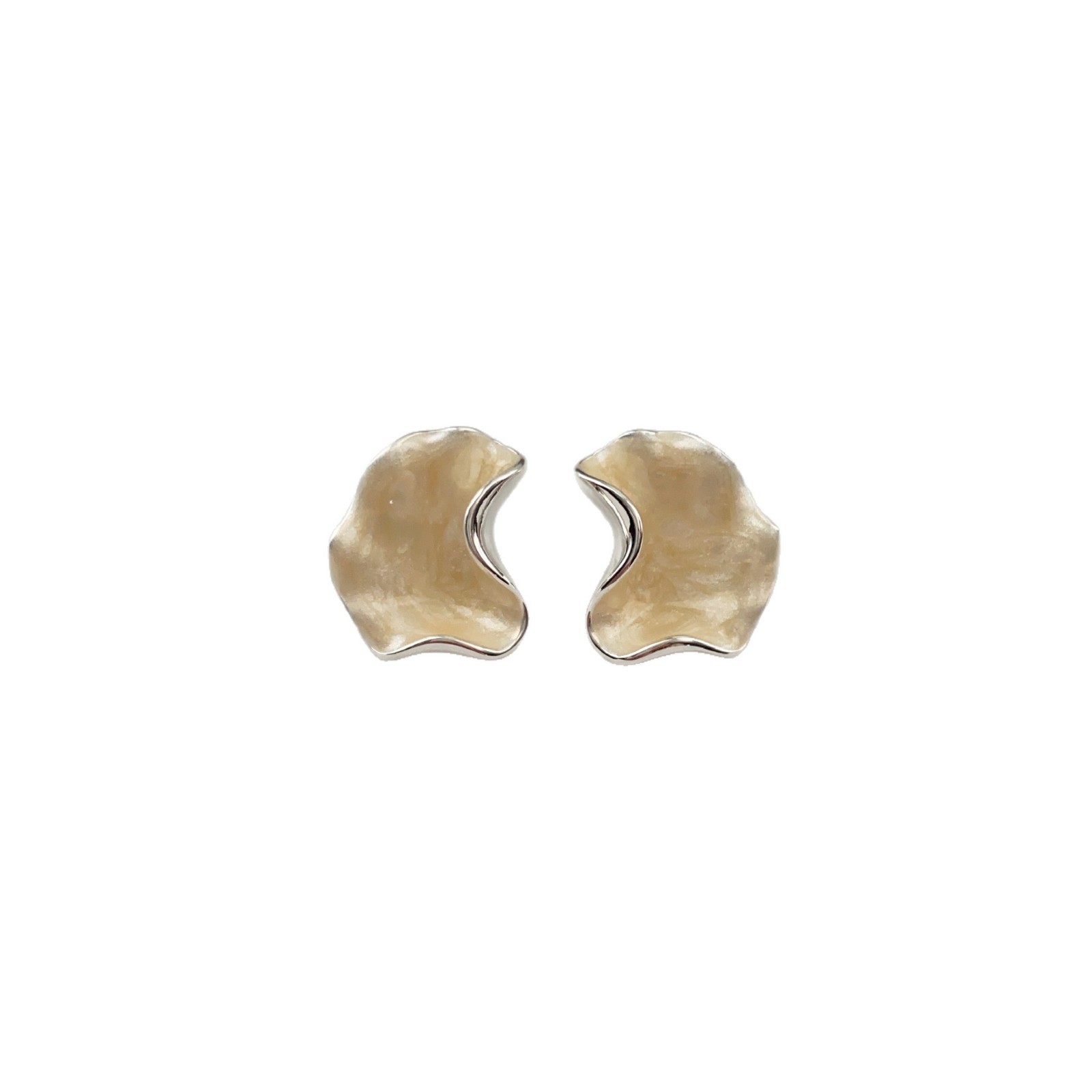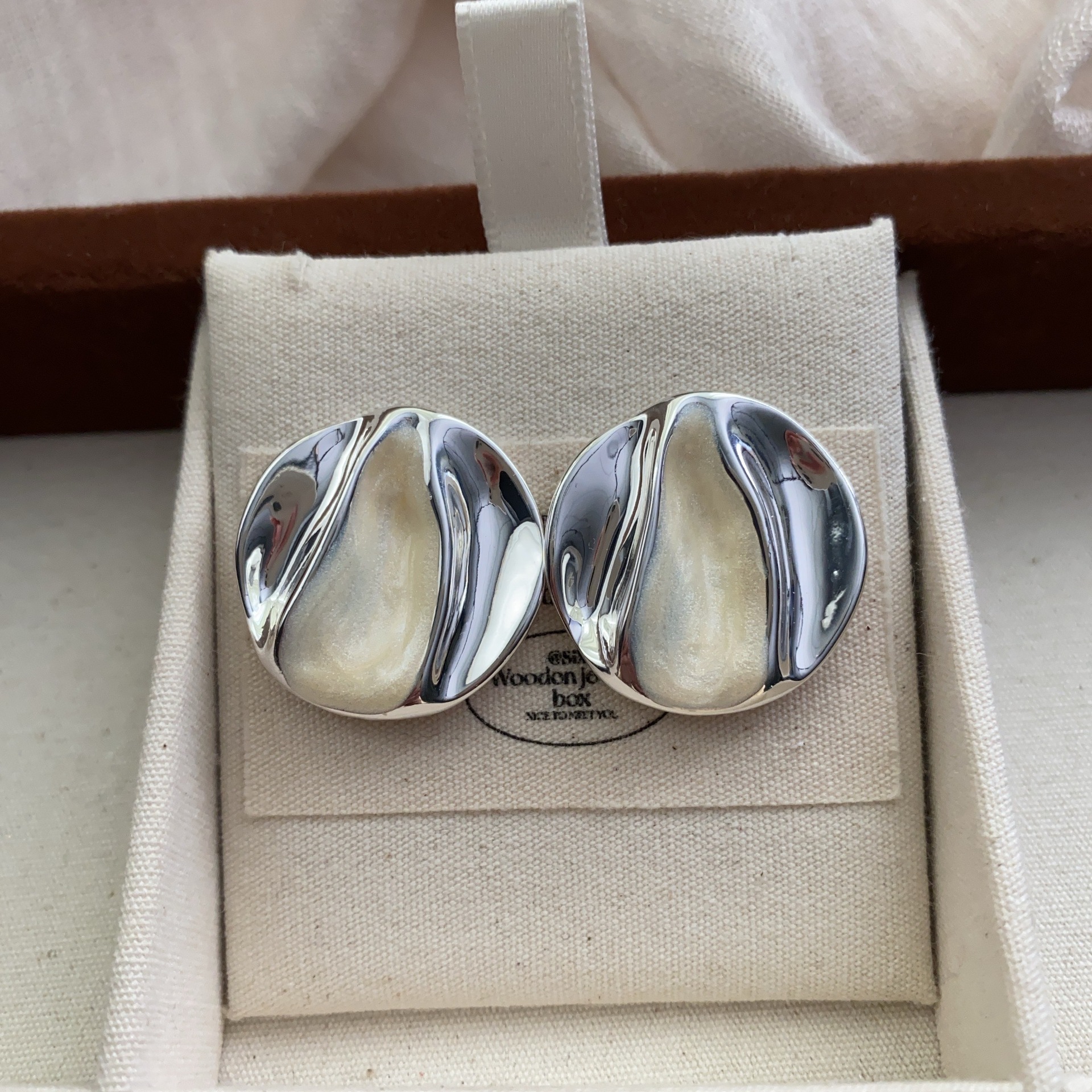 金属不规则耳钉2025新款高级感耳饰欧美轻奢简约波浪圆片抽象耳饰