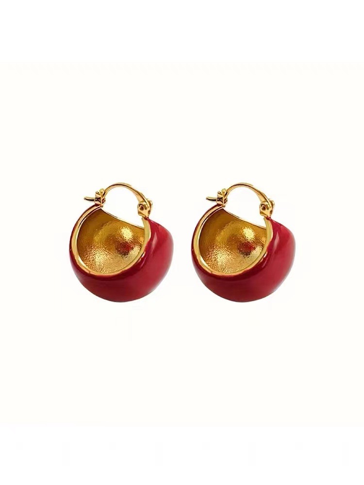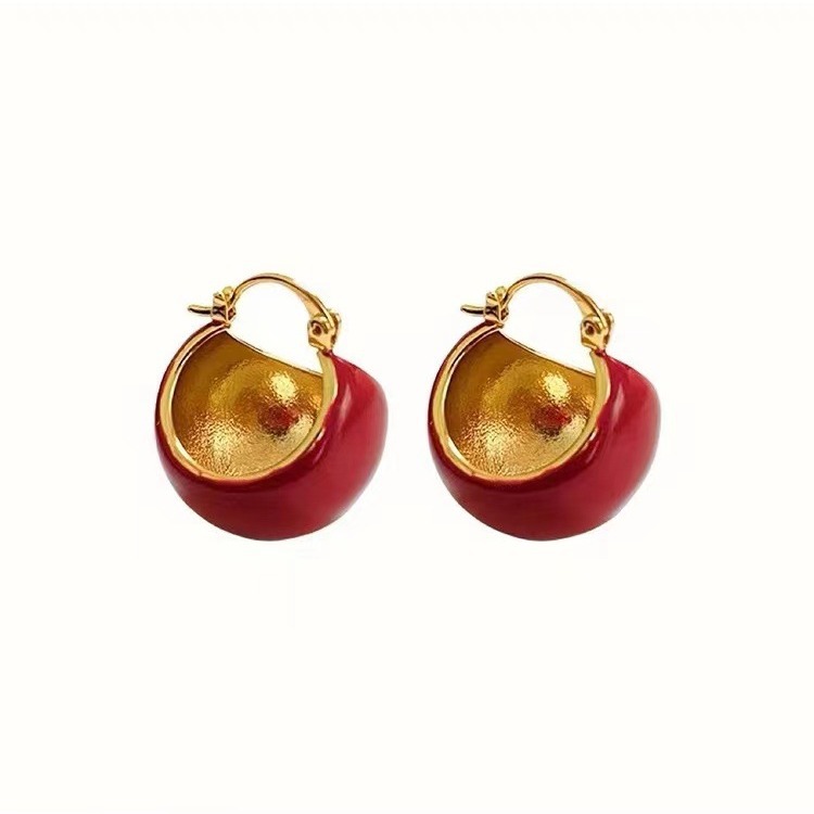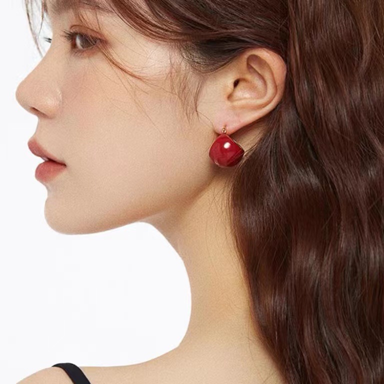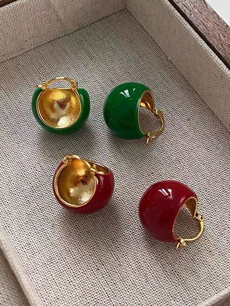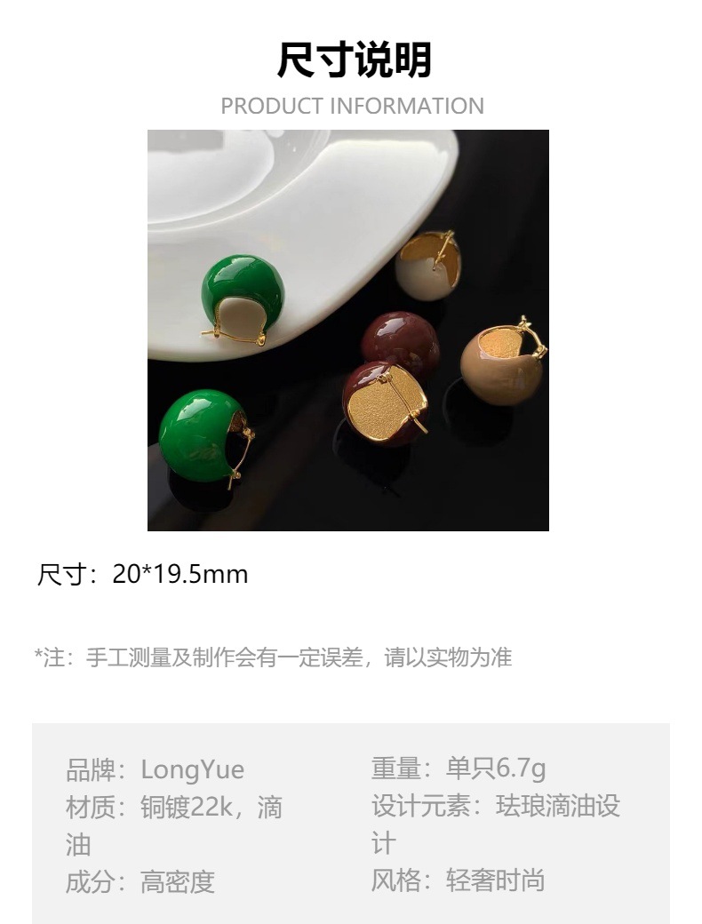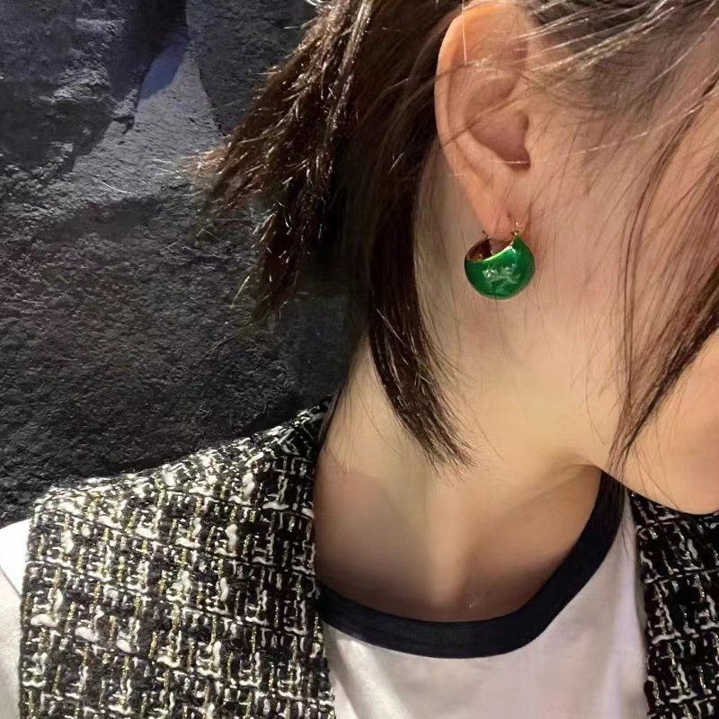 复古珐琅绿色耳环女轻奢小众高级感耳扣复古气质耳钉新款白色耳饰