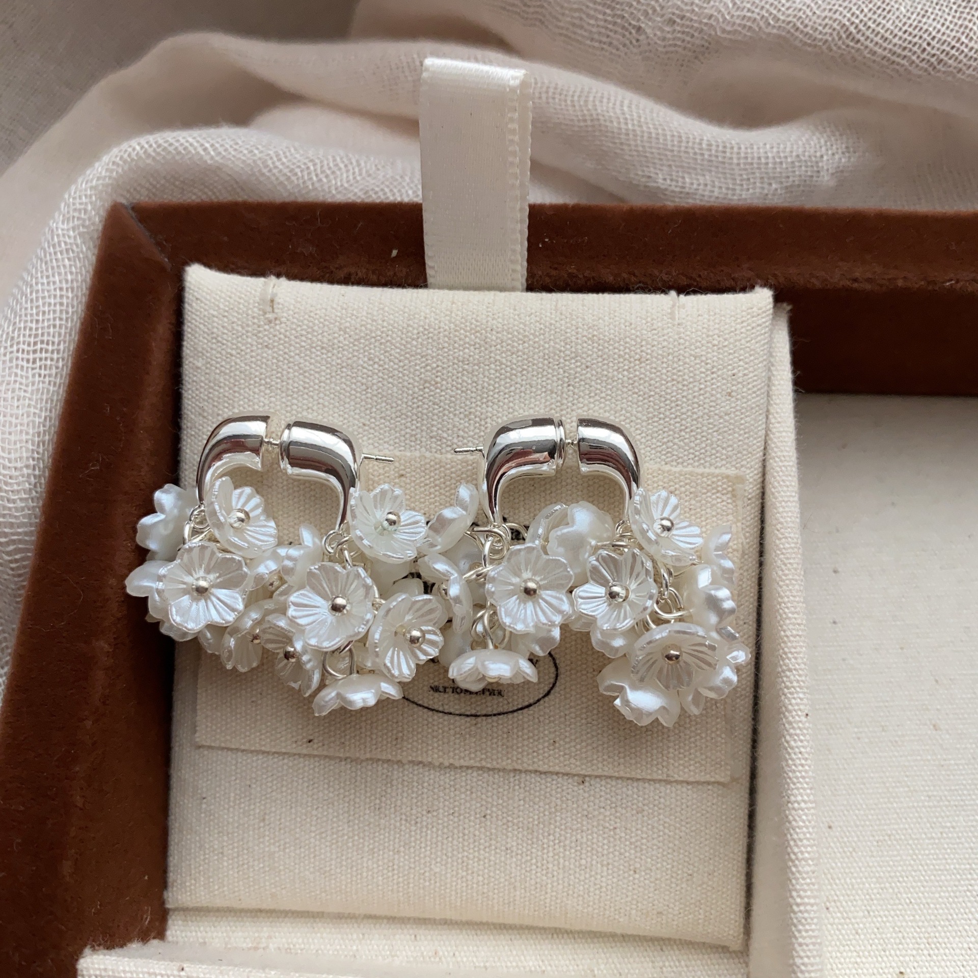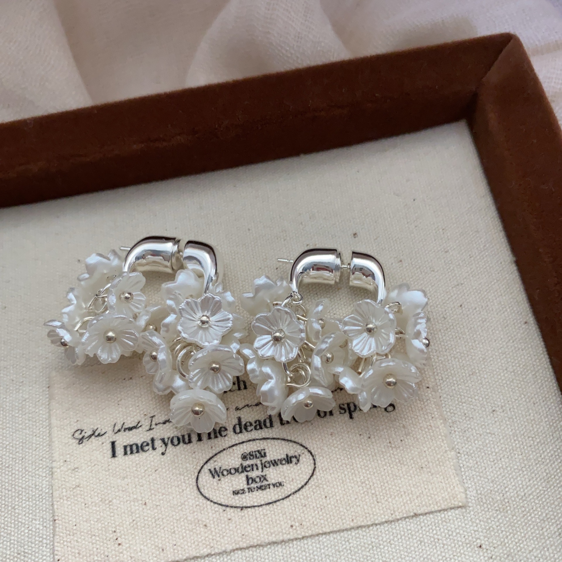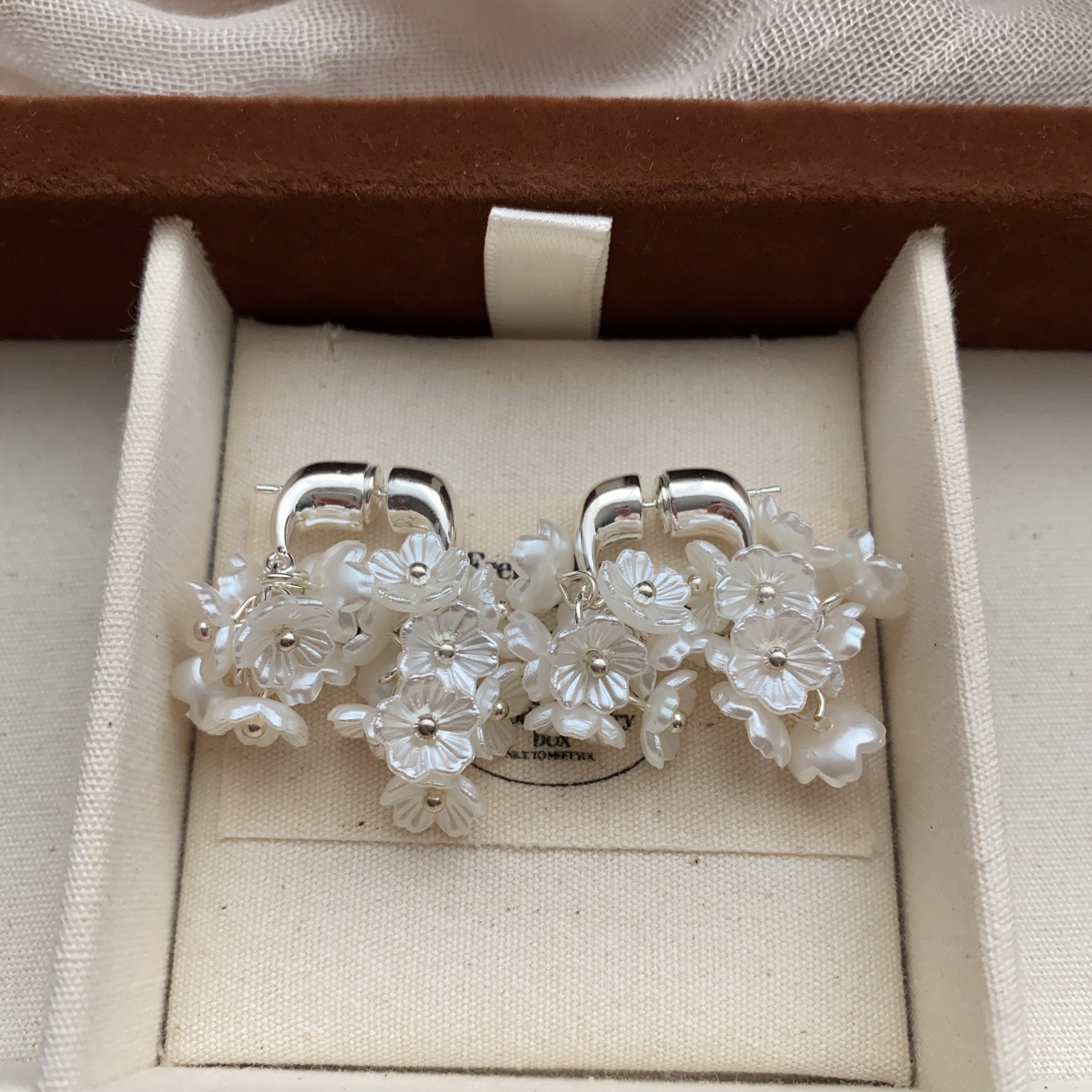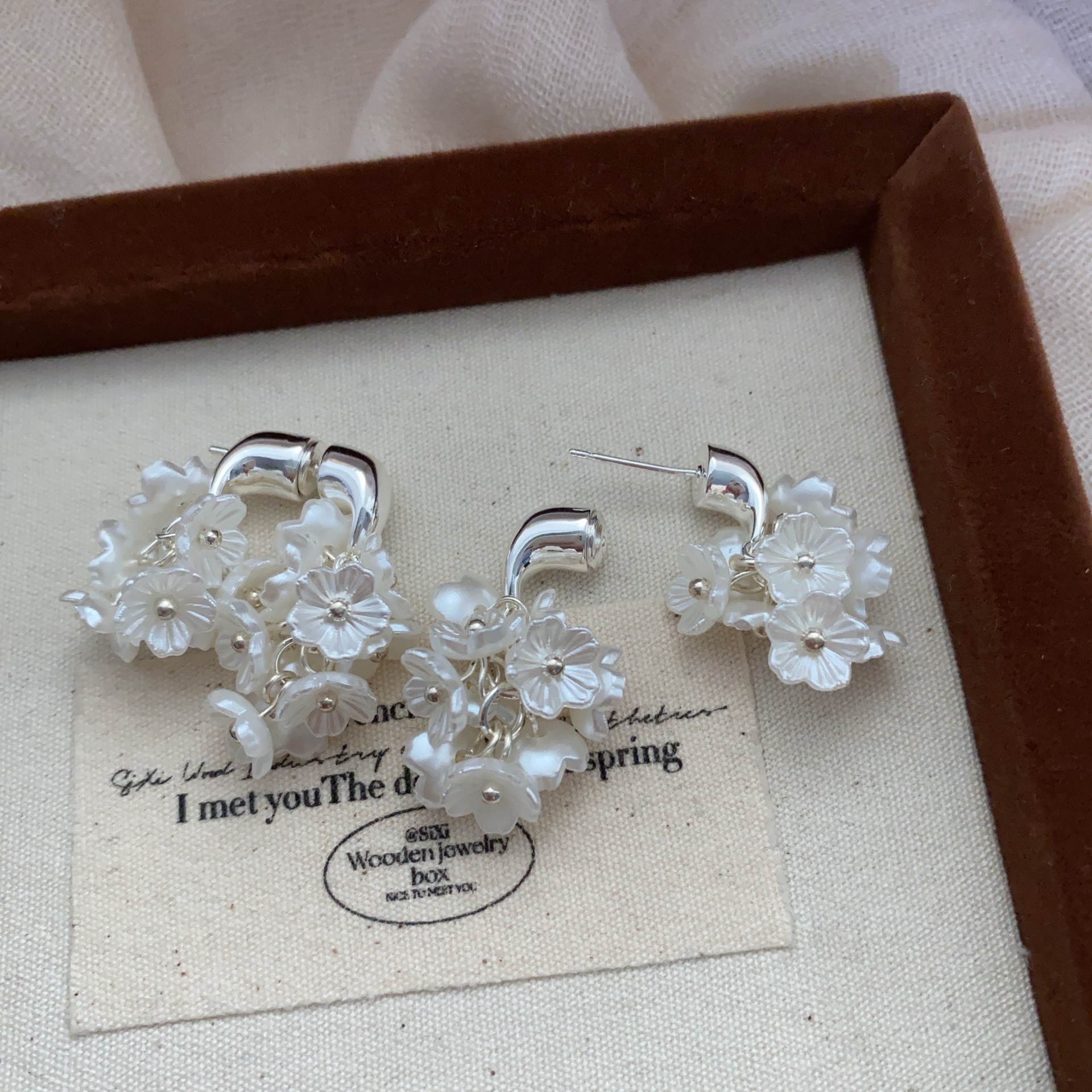 一款多戴白色花朵流苏耳环耳钉超仙高级感耳饰小清新甜美可爱淑女