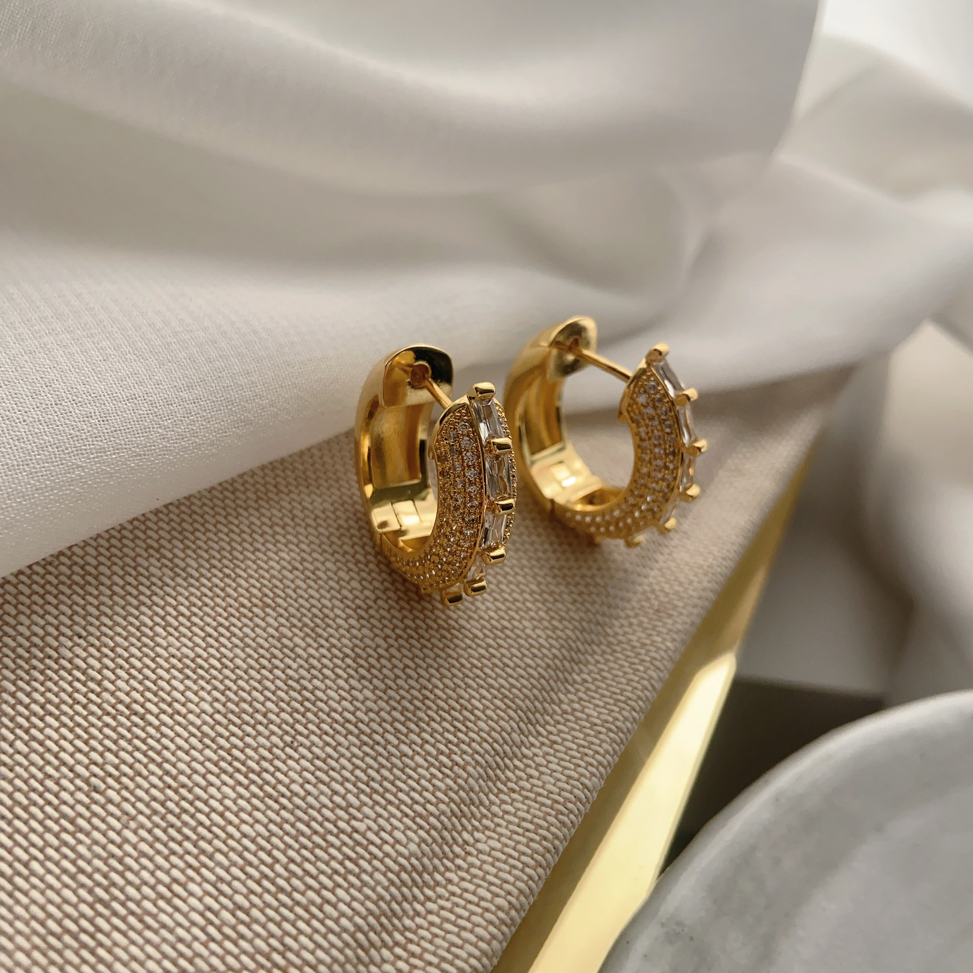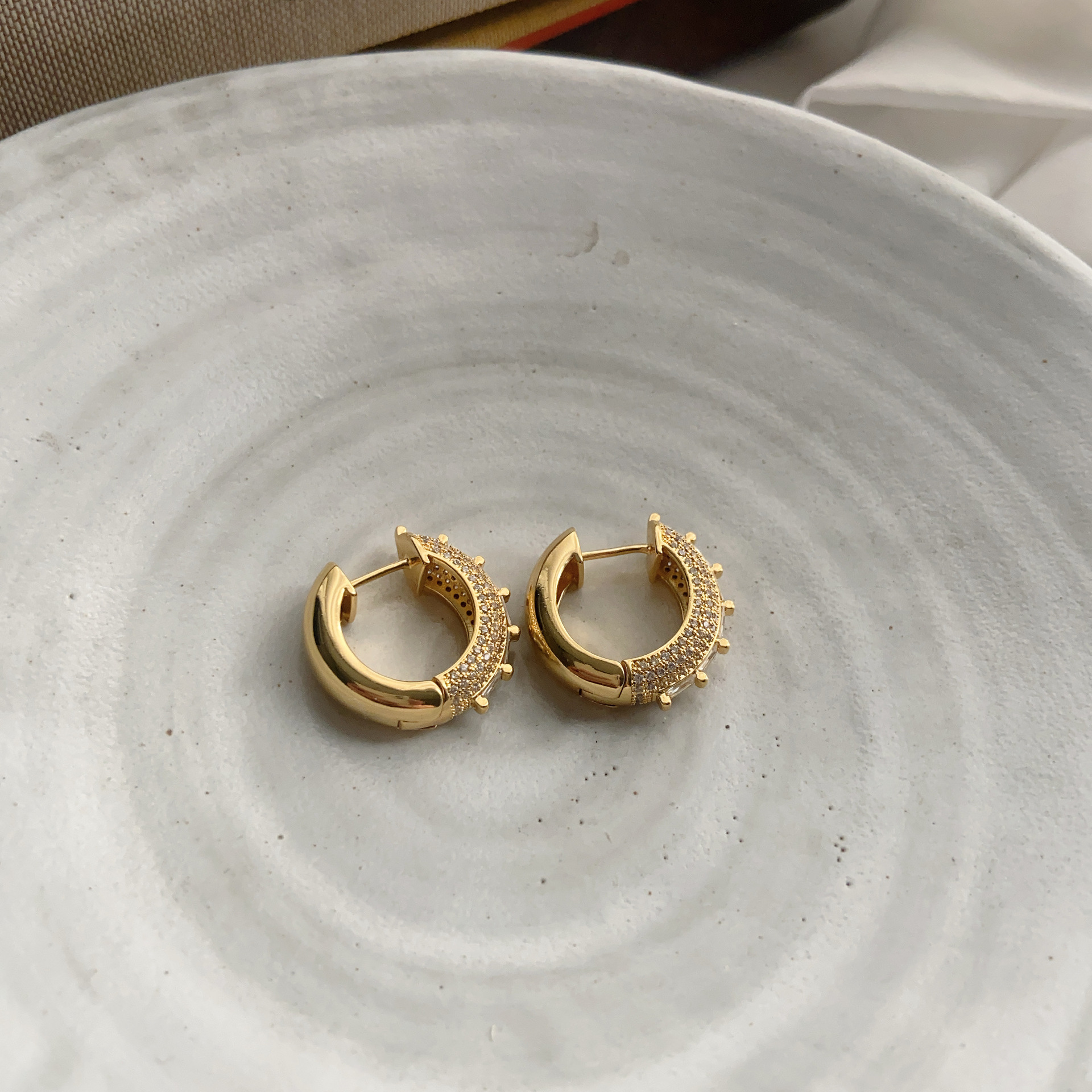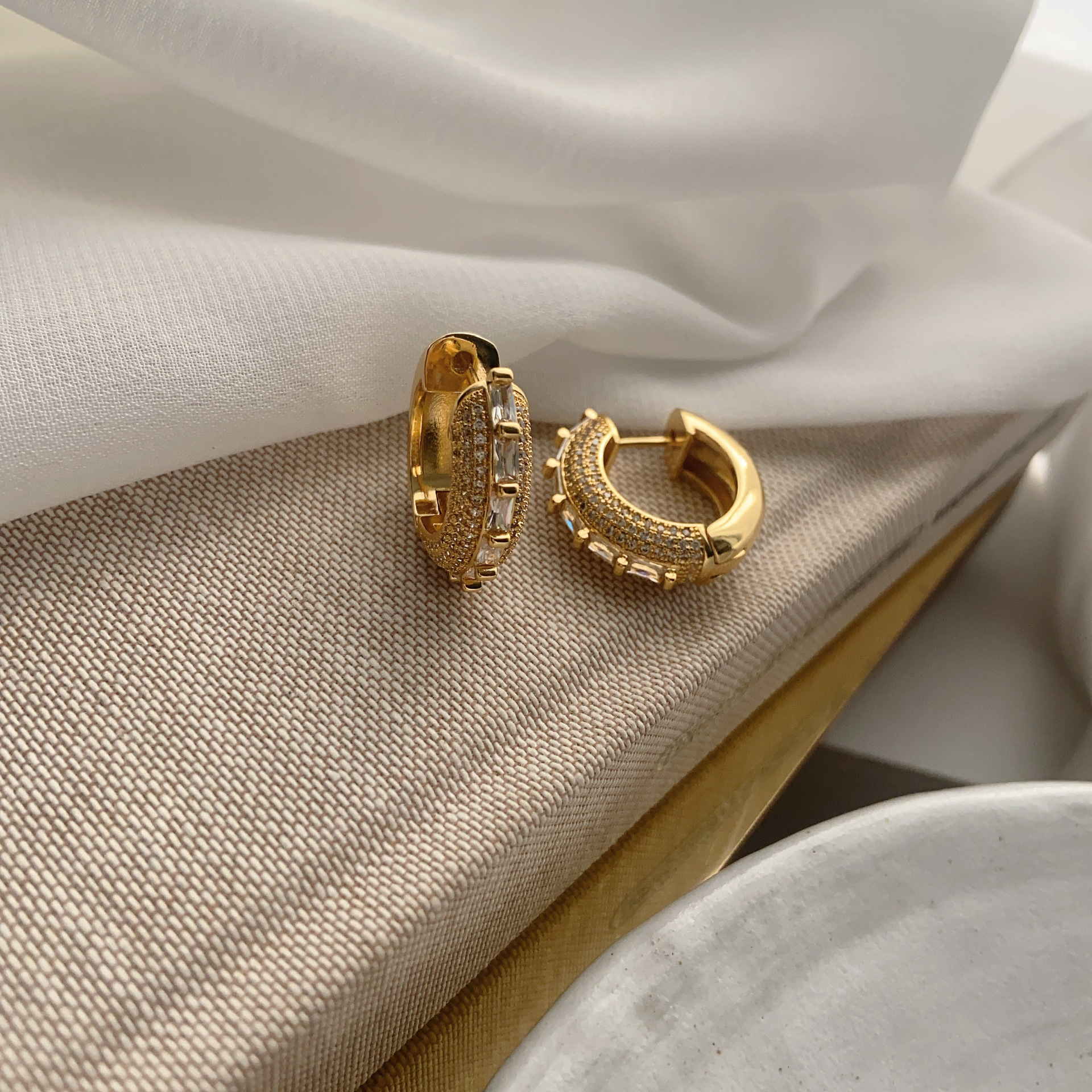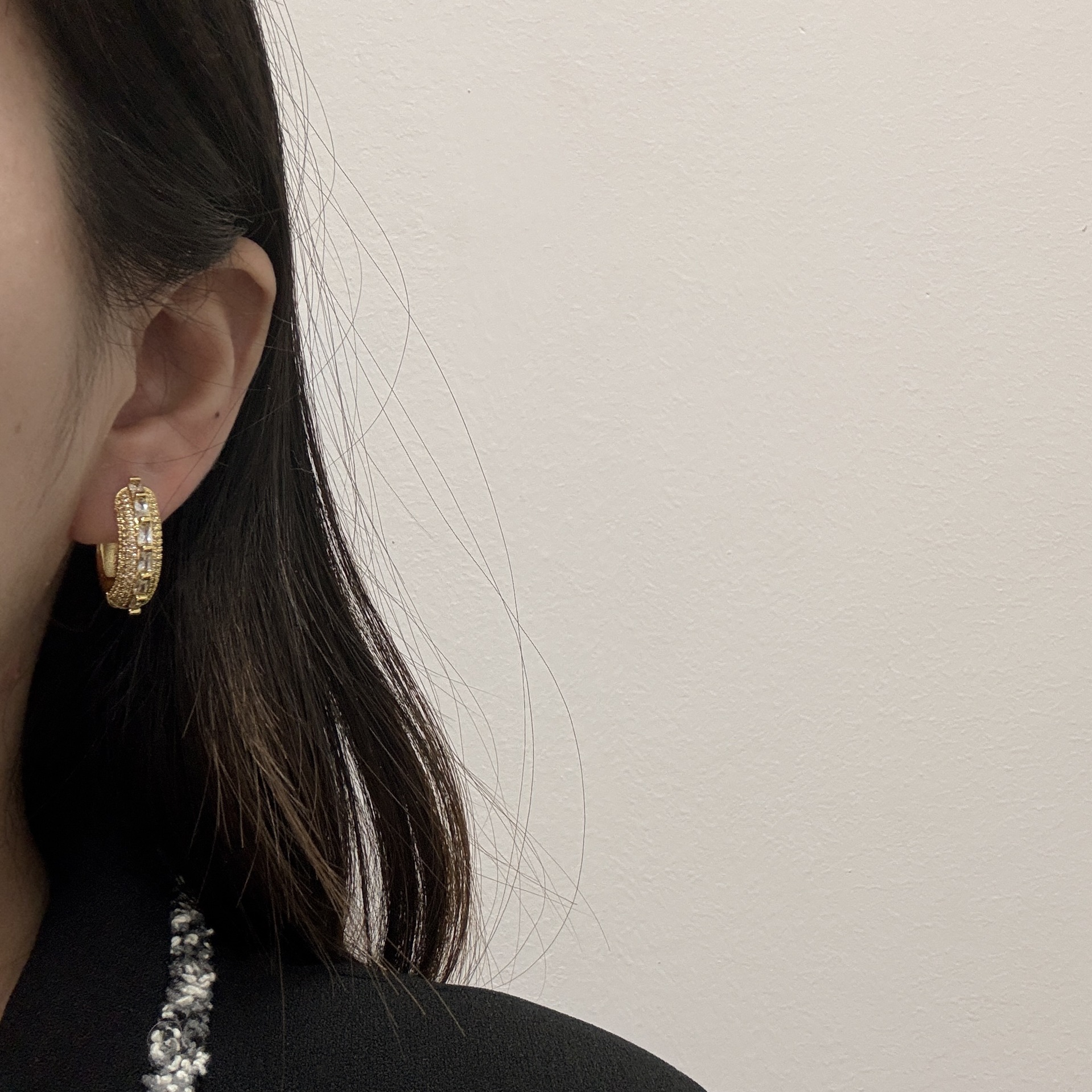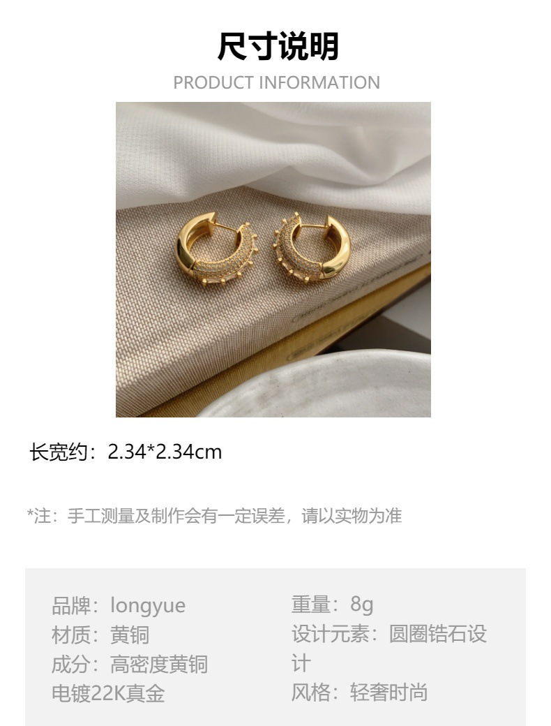 重工镶钻轻奢小众设计高级感双层拼接光面耳圈女气质百搭耳环耳饰