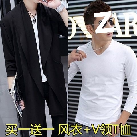 风衣男中长款防风衣男外套夏季韩版防晒男士薄款春秋帅气披风大衣