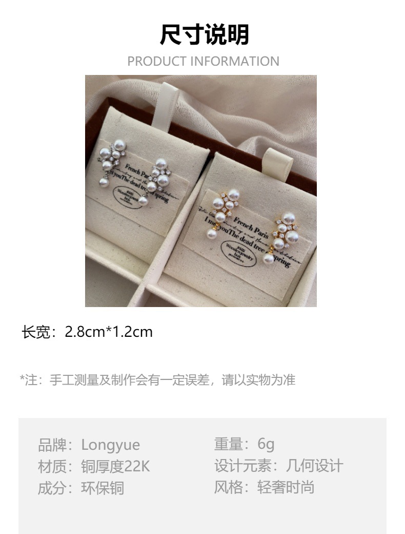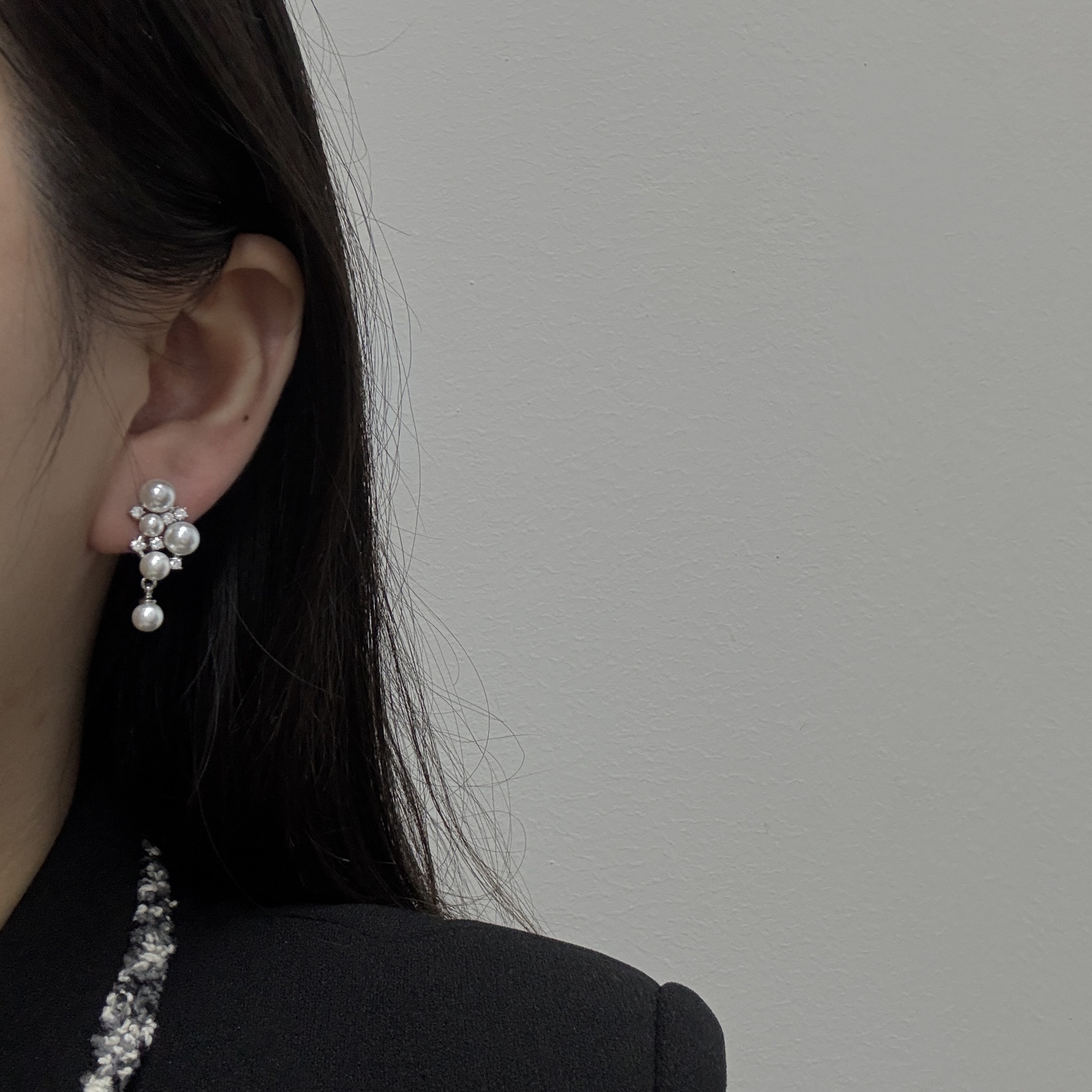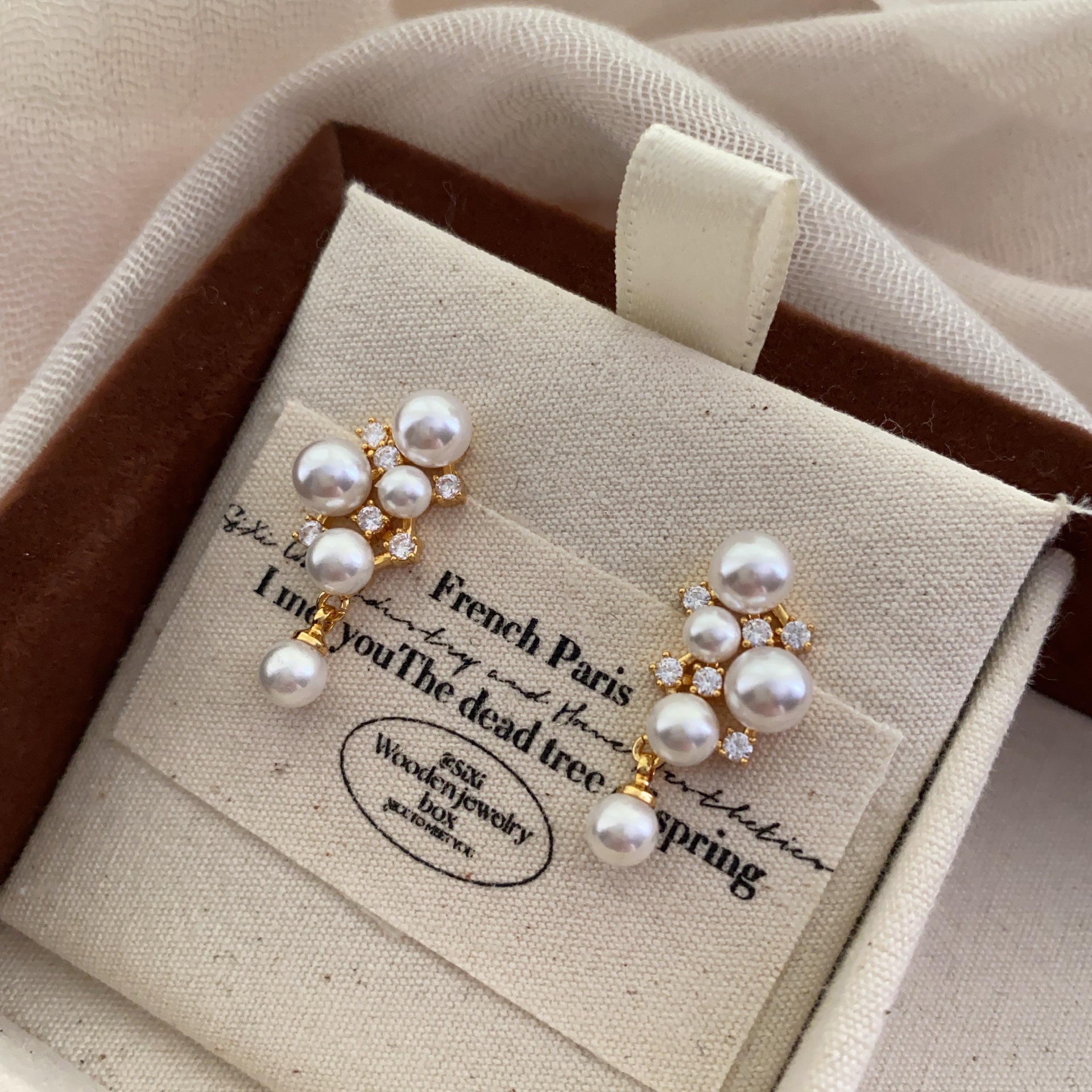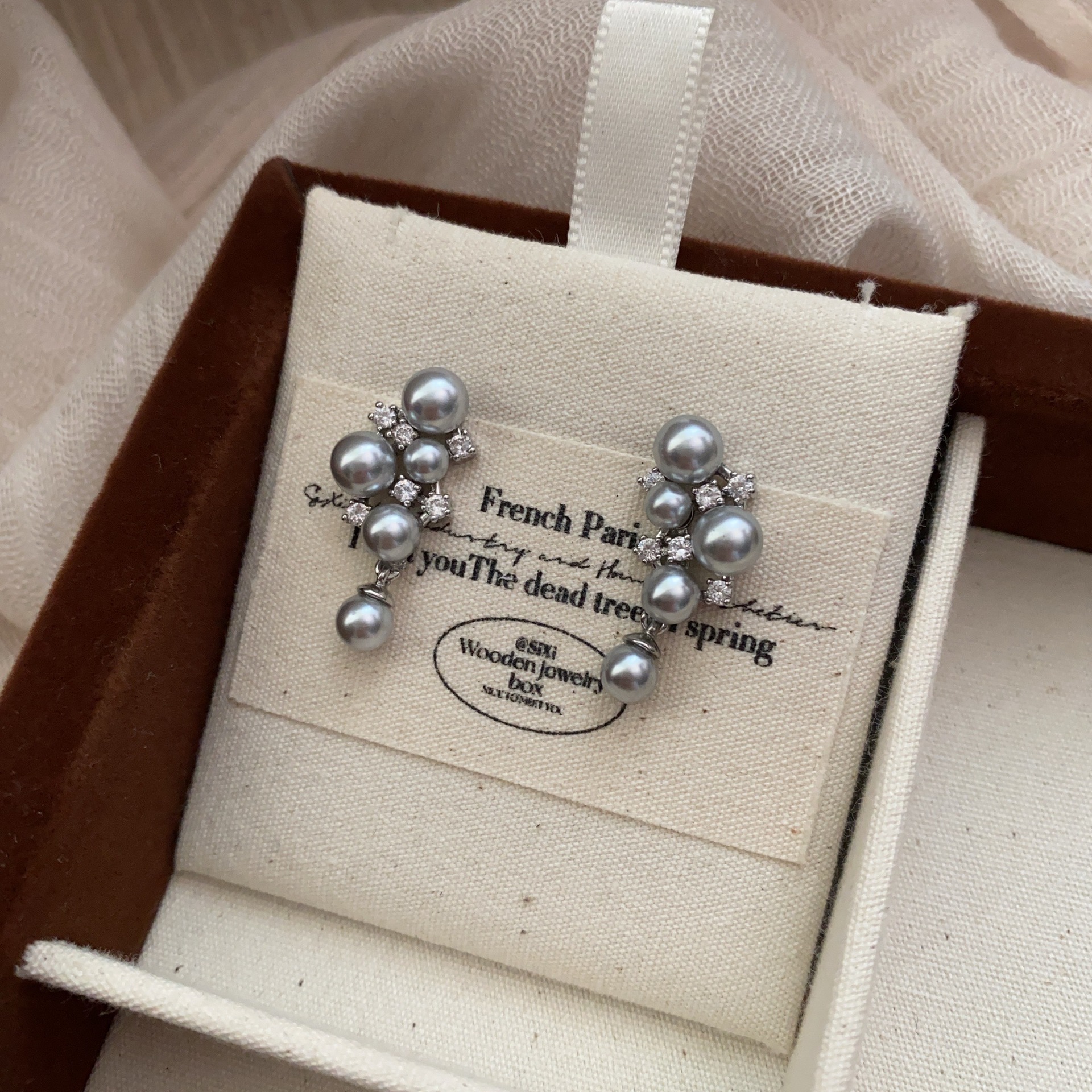 甜美珍珠锆石耳钉女小葡萄串潮时尚气质轻奢小众设计感耳环耳饰女