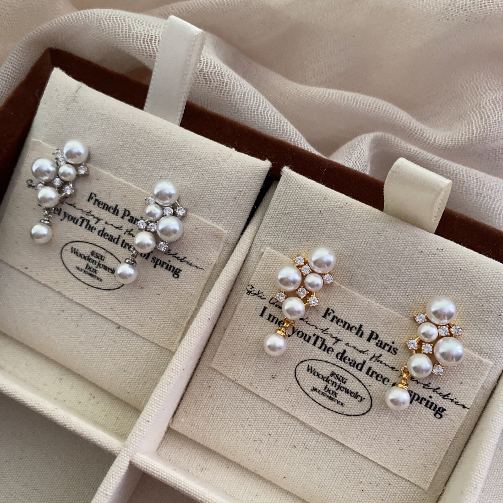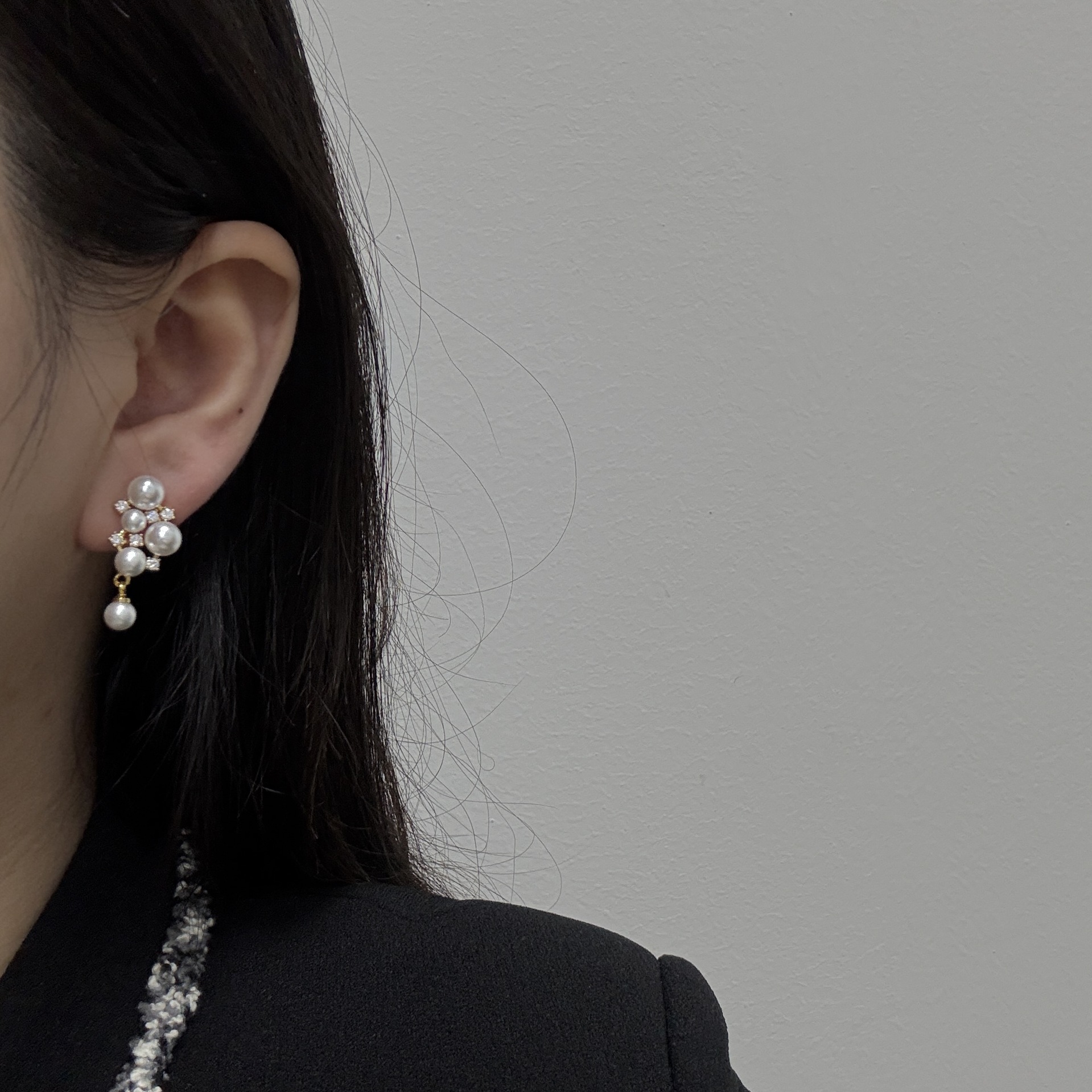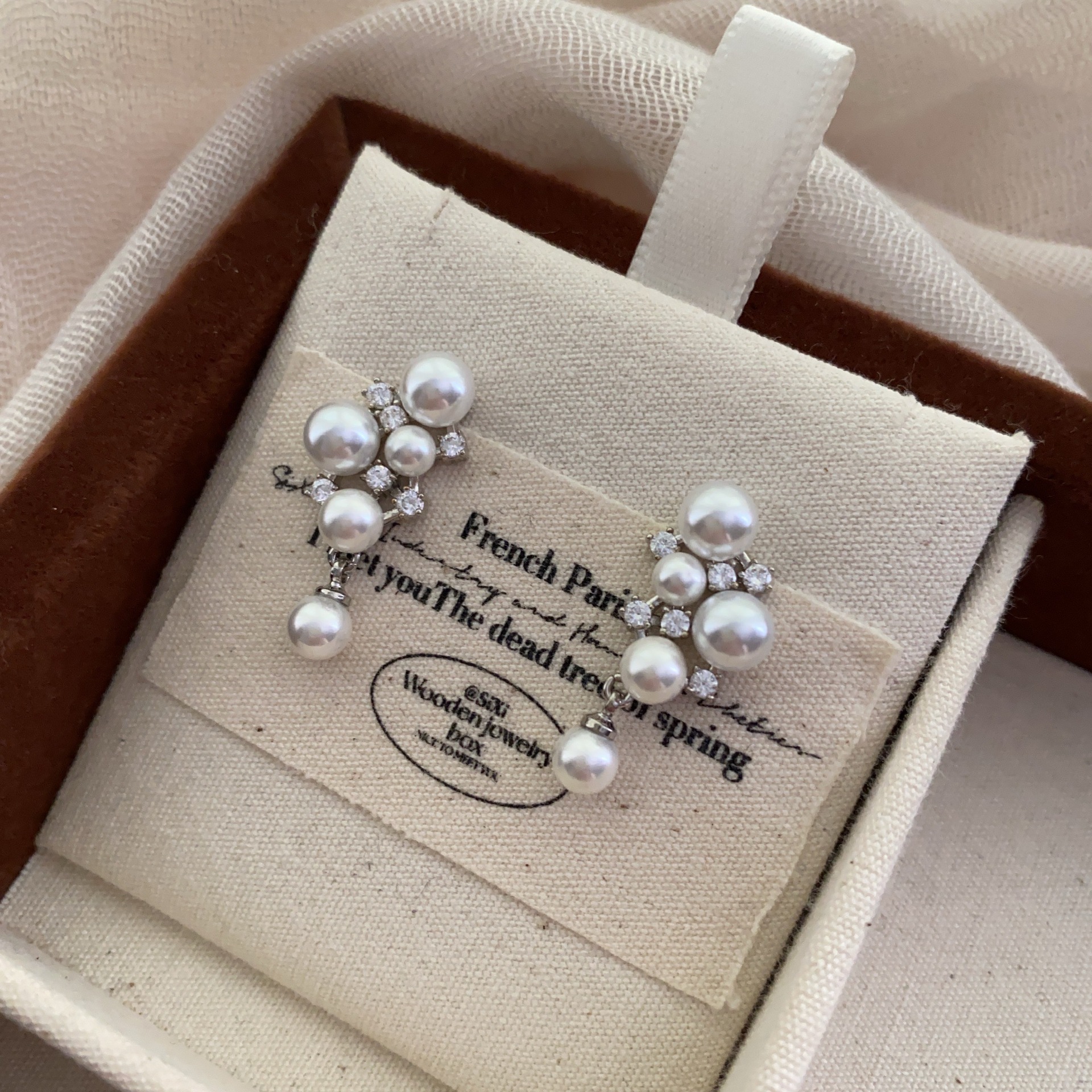 甜美珍珠锆石耳钉女小葡萄串潮时尚气质轻奢小众设计感耳环耳饰女