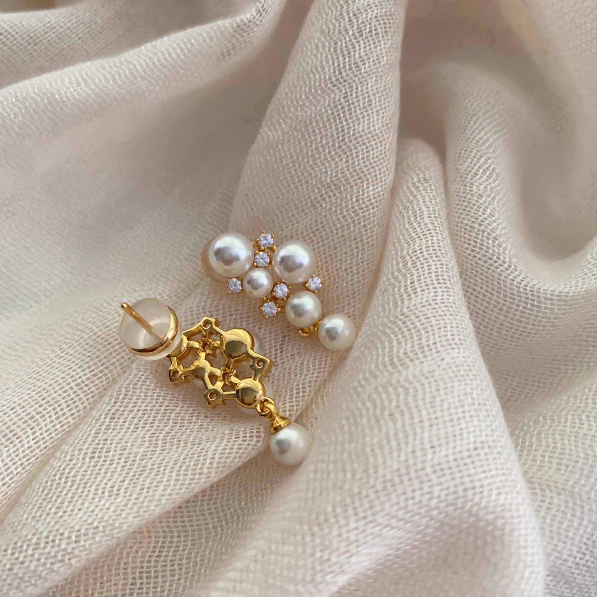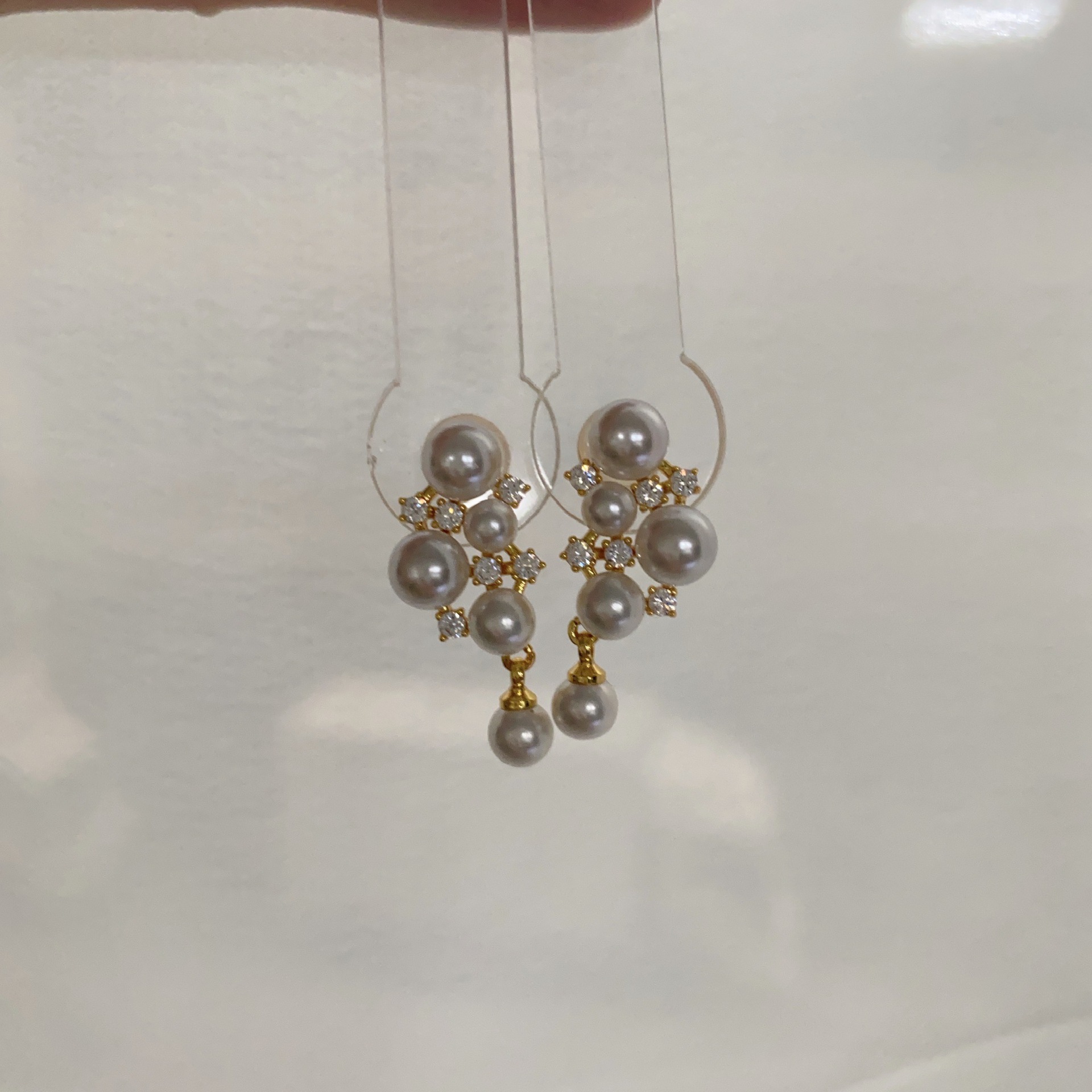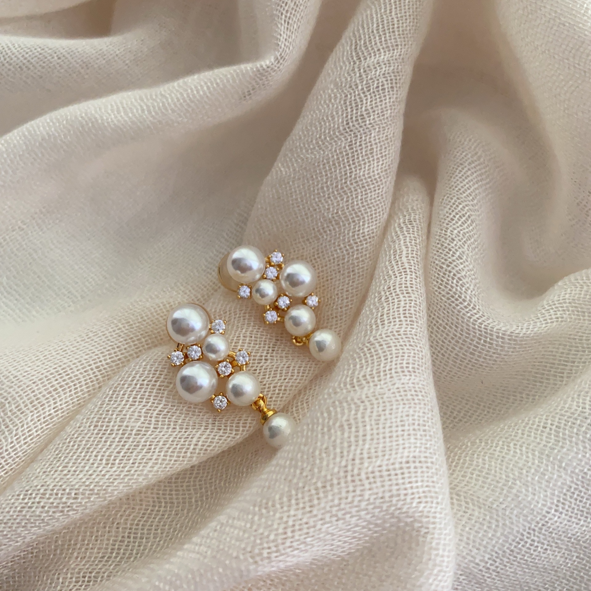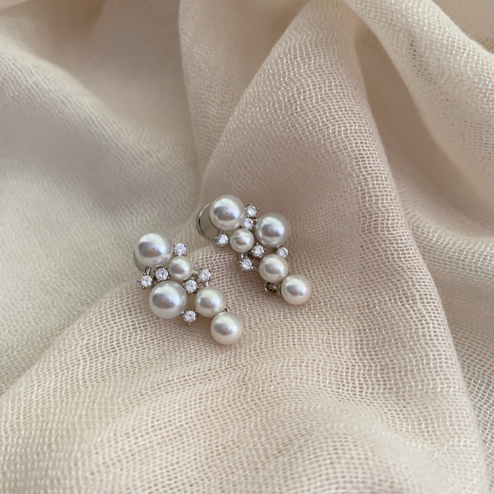 甜美珍珠锆石耳钉女小葡萄串潮时尚气质轻奢小众设计感耳环耳饰女