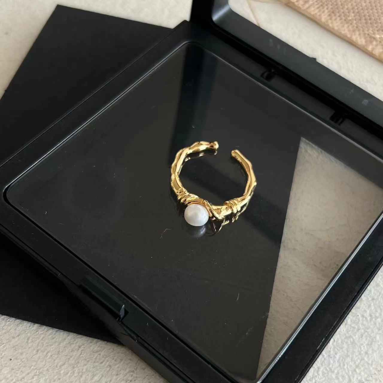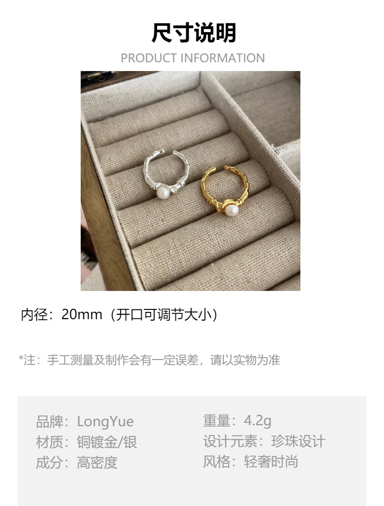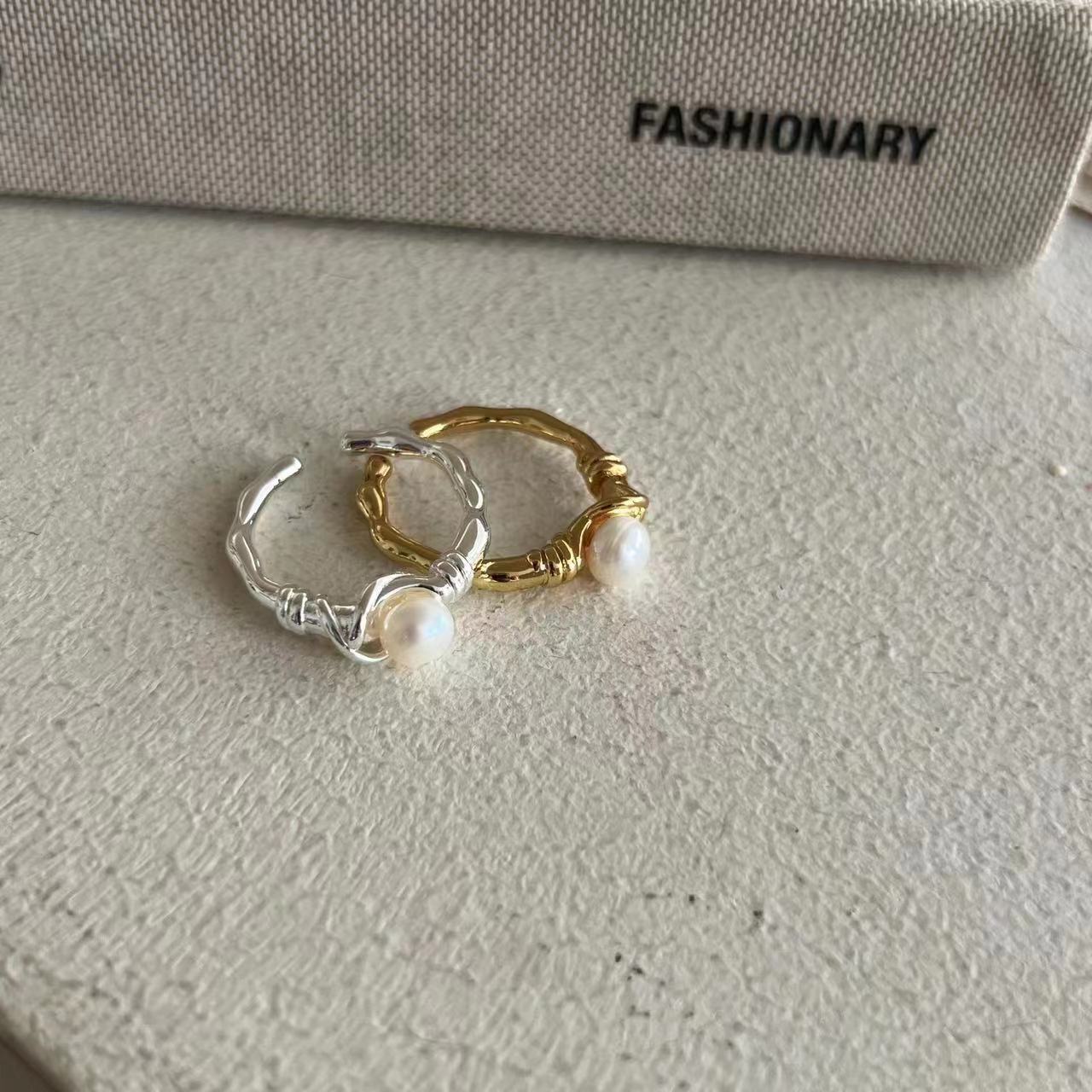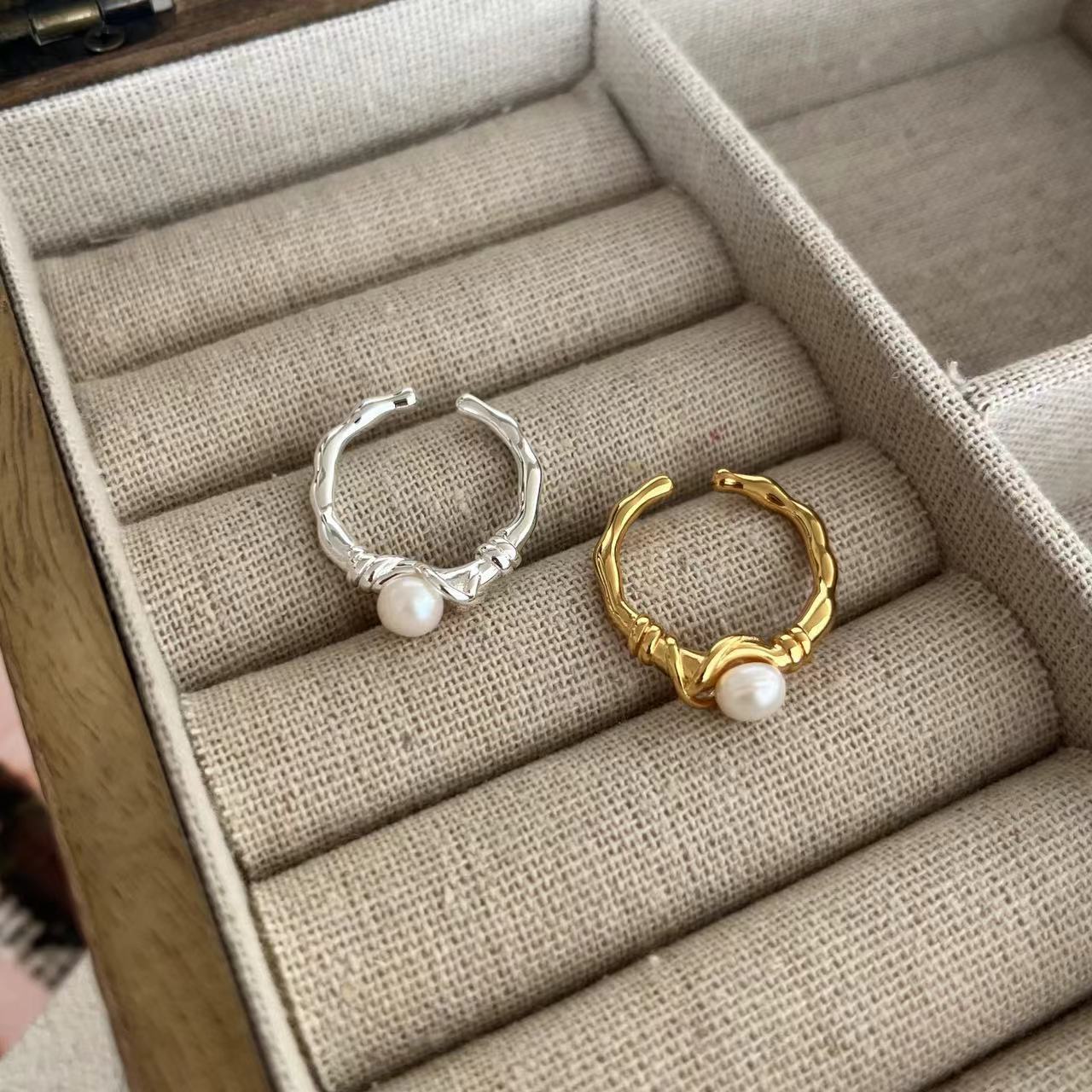 欧美风几何不规则麻花珍珠戒指女生时尚个性百搭潮流指环法式小众
