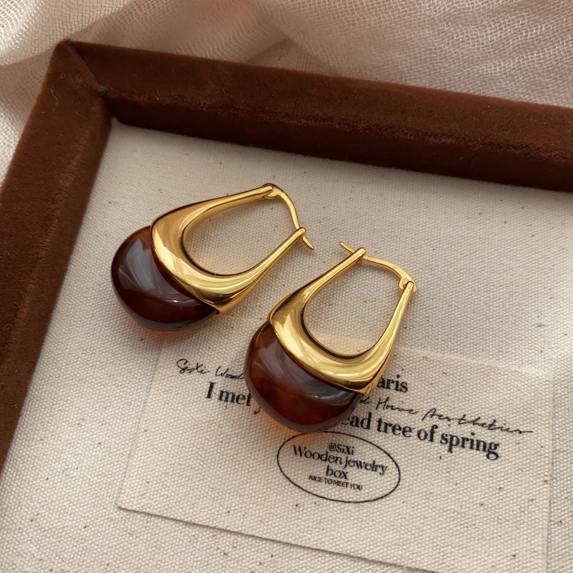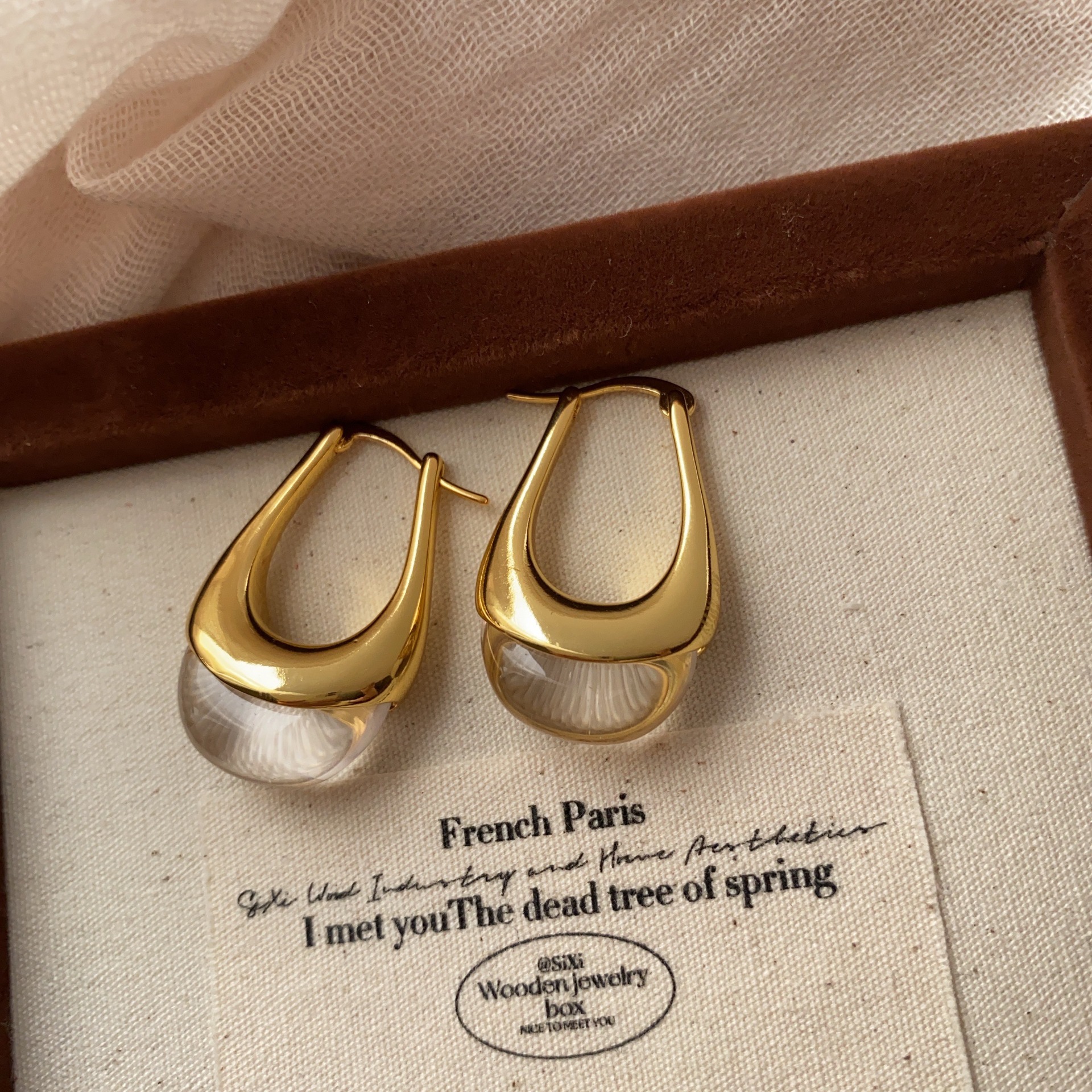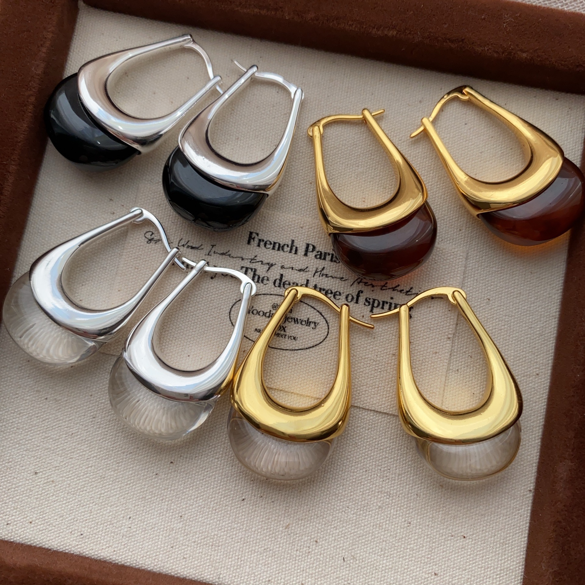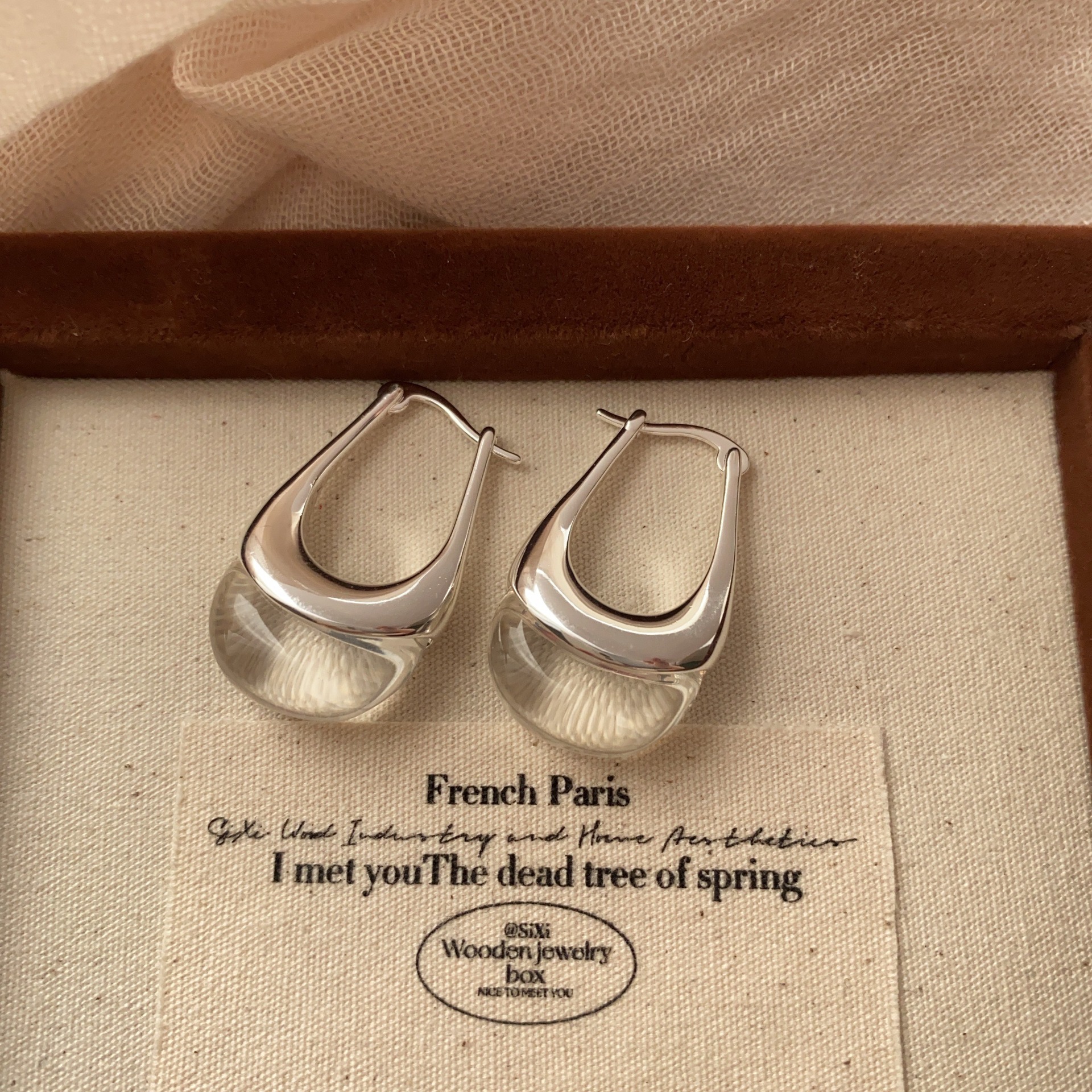 简约半透明树脂水滴形耳扣耳环冷淡风小众时尚复古法式高级感耳饰