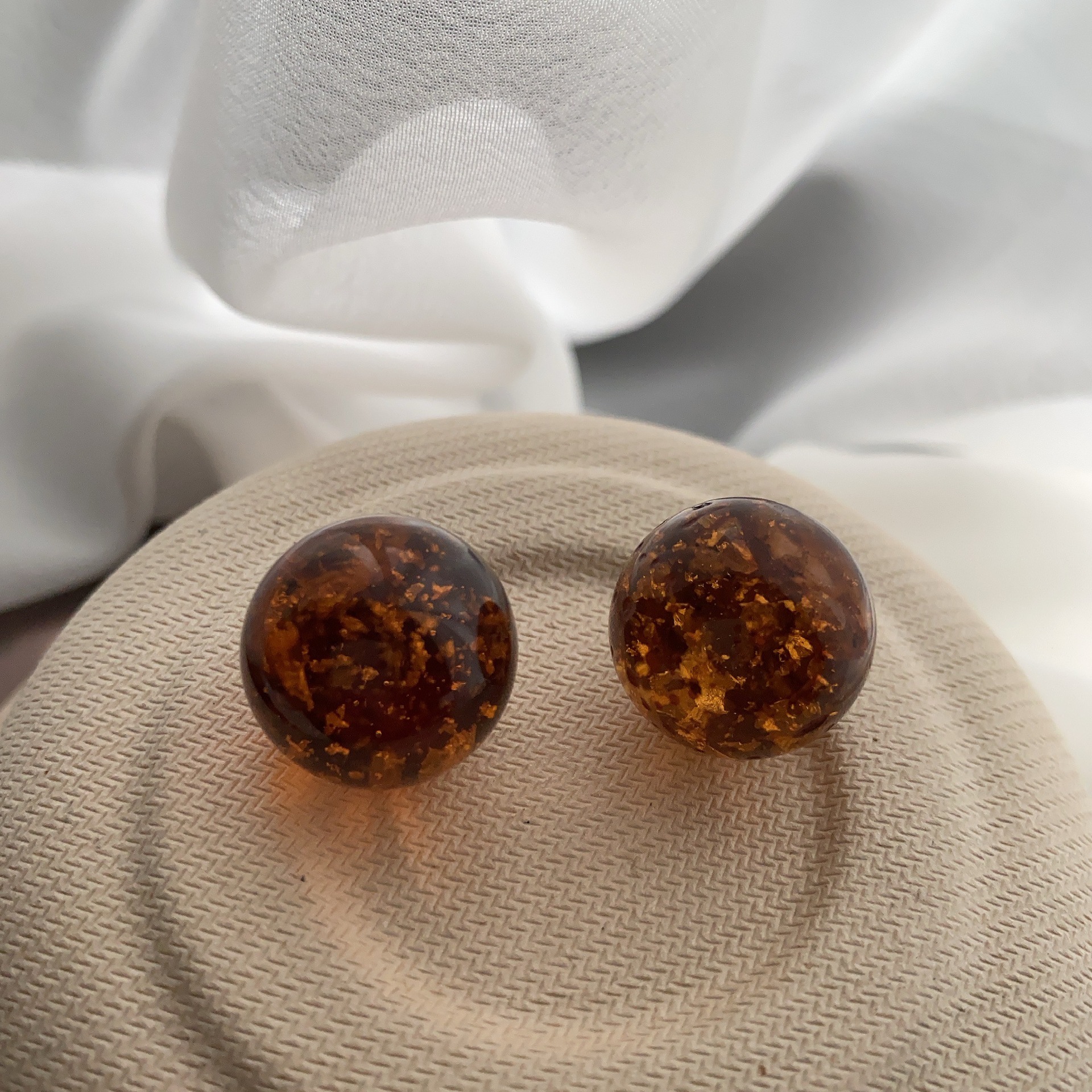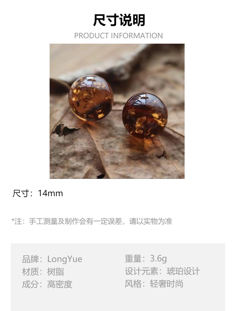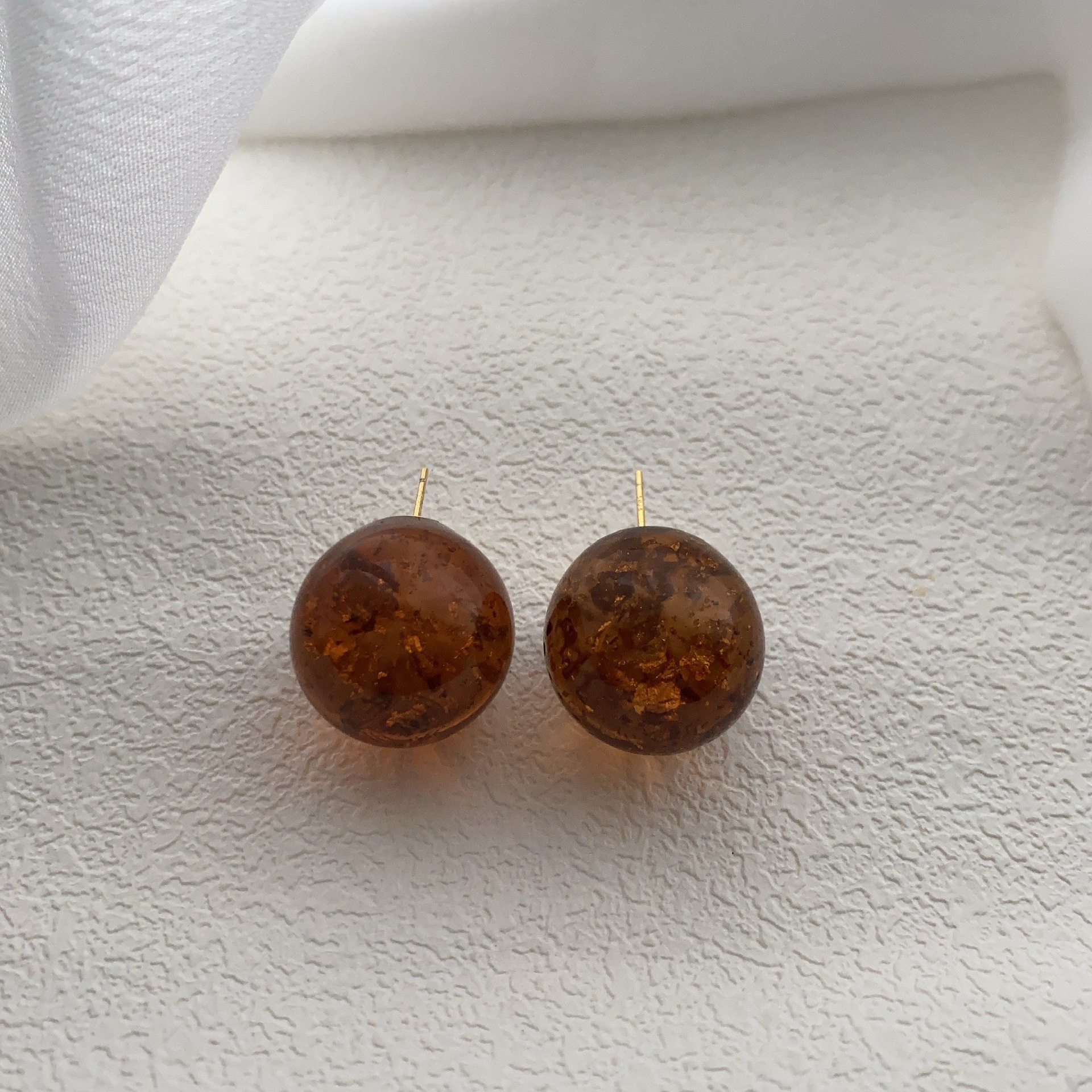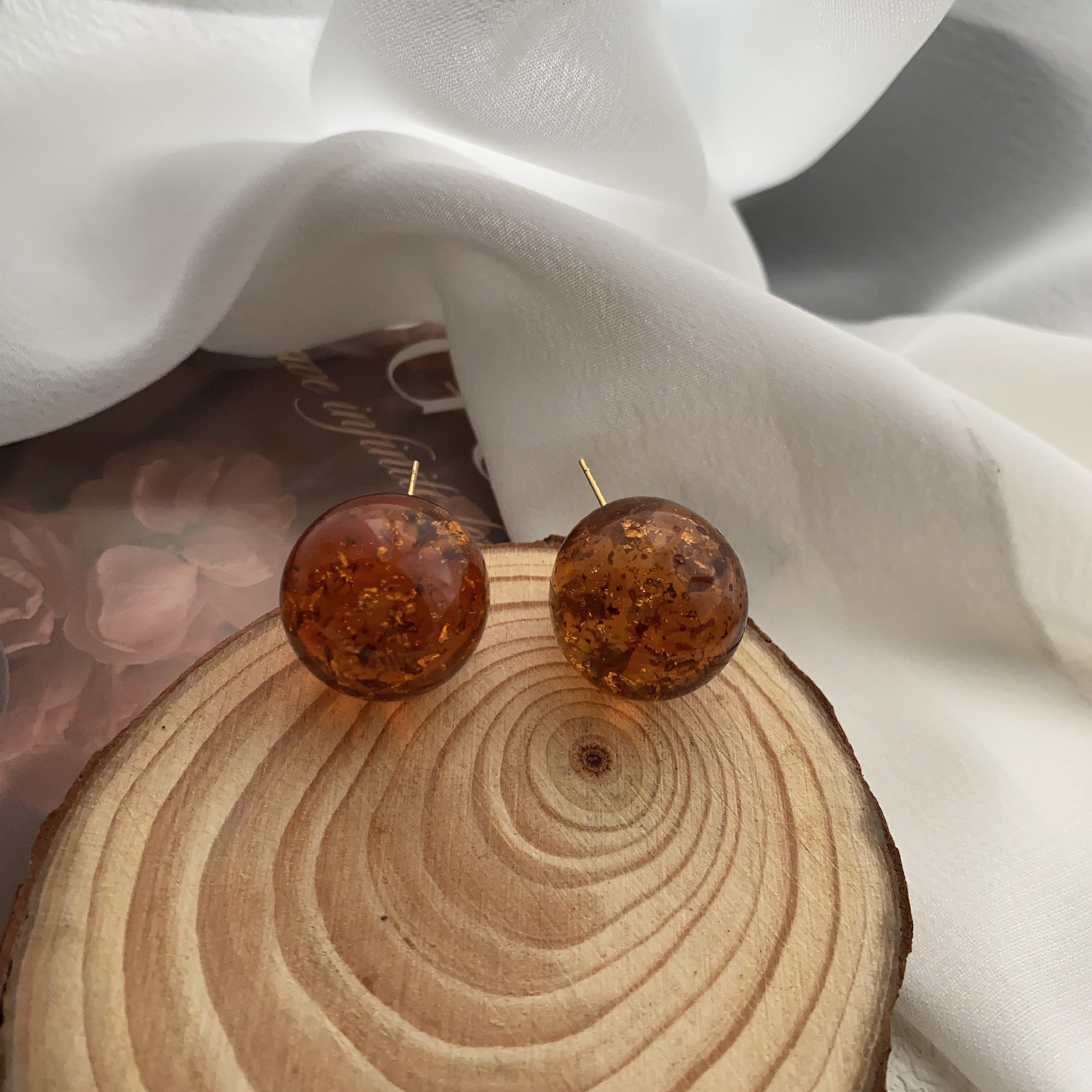 2025秋冬新款琥珀树脂耳钉简约高级百搭复古耳饰气质优雅美拉德女