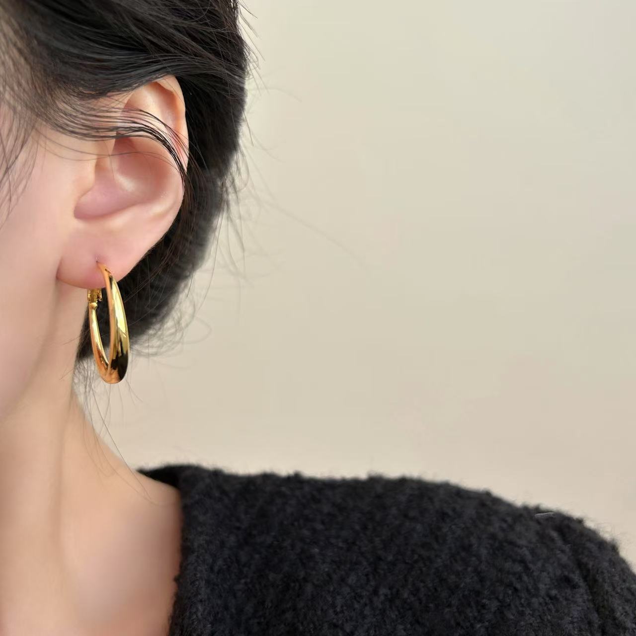 欧美冷淡风简约加粗大圈圈耳环耳饰时尚感通勤经典款耳圈百搭个性