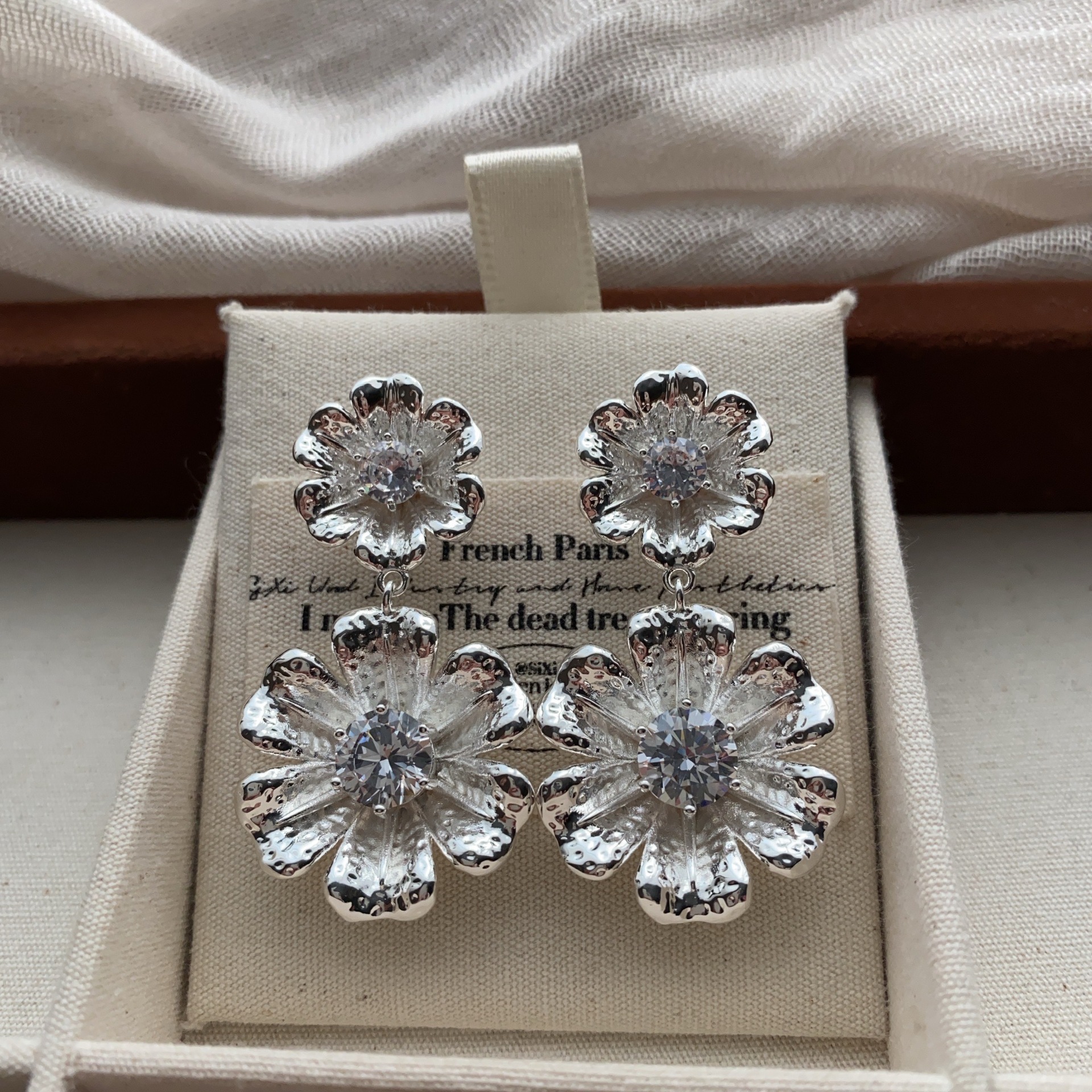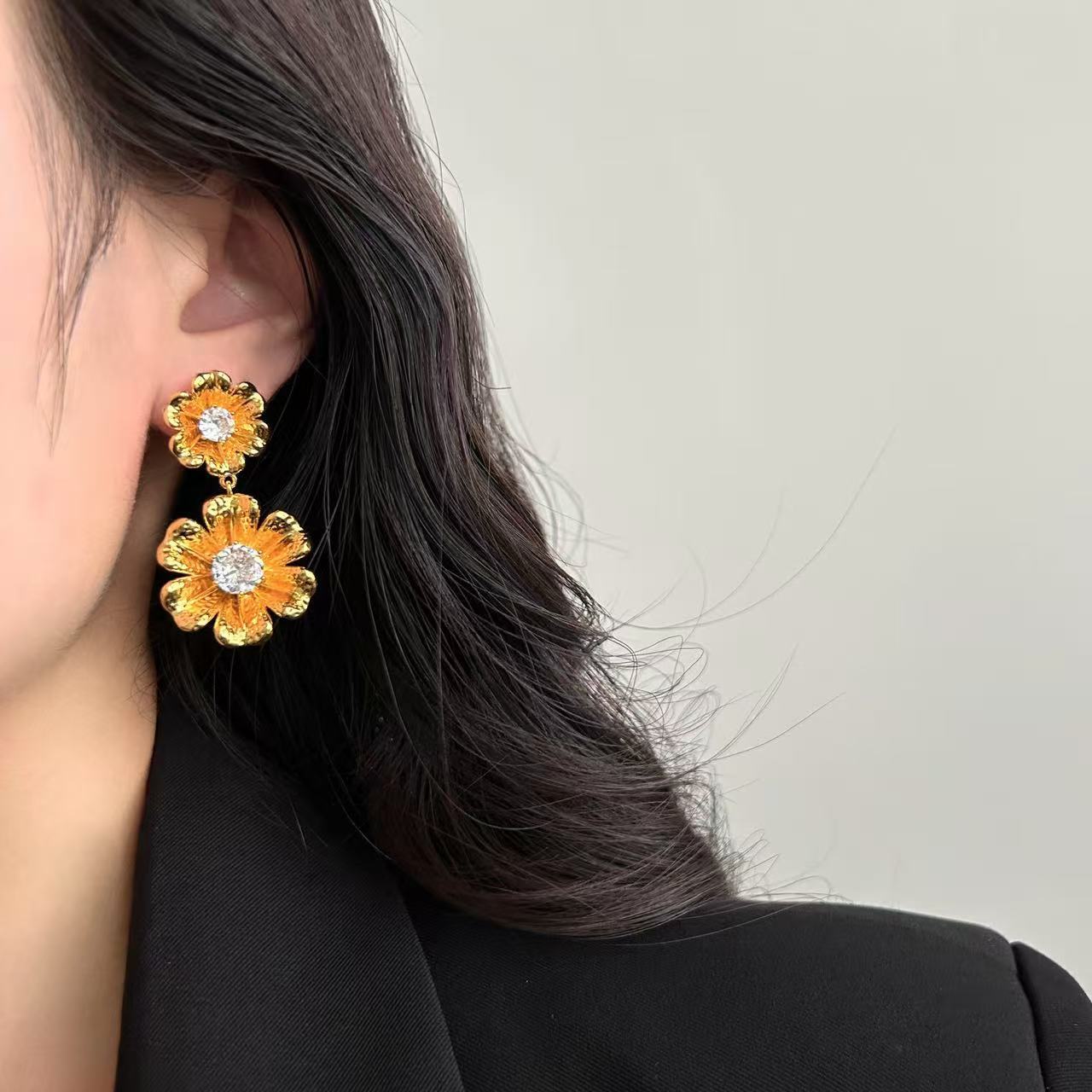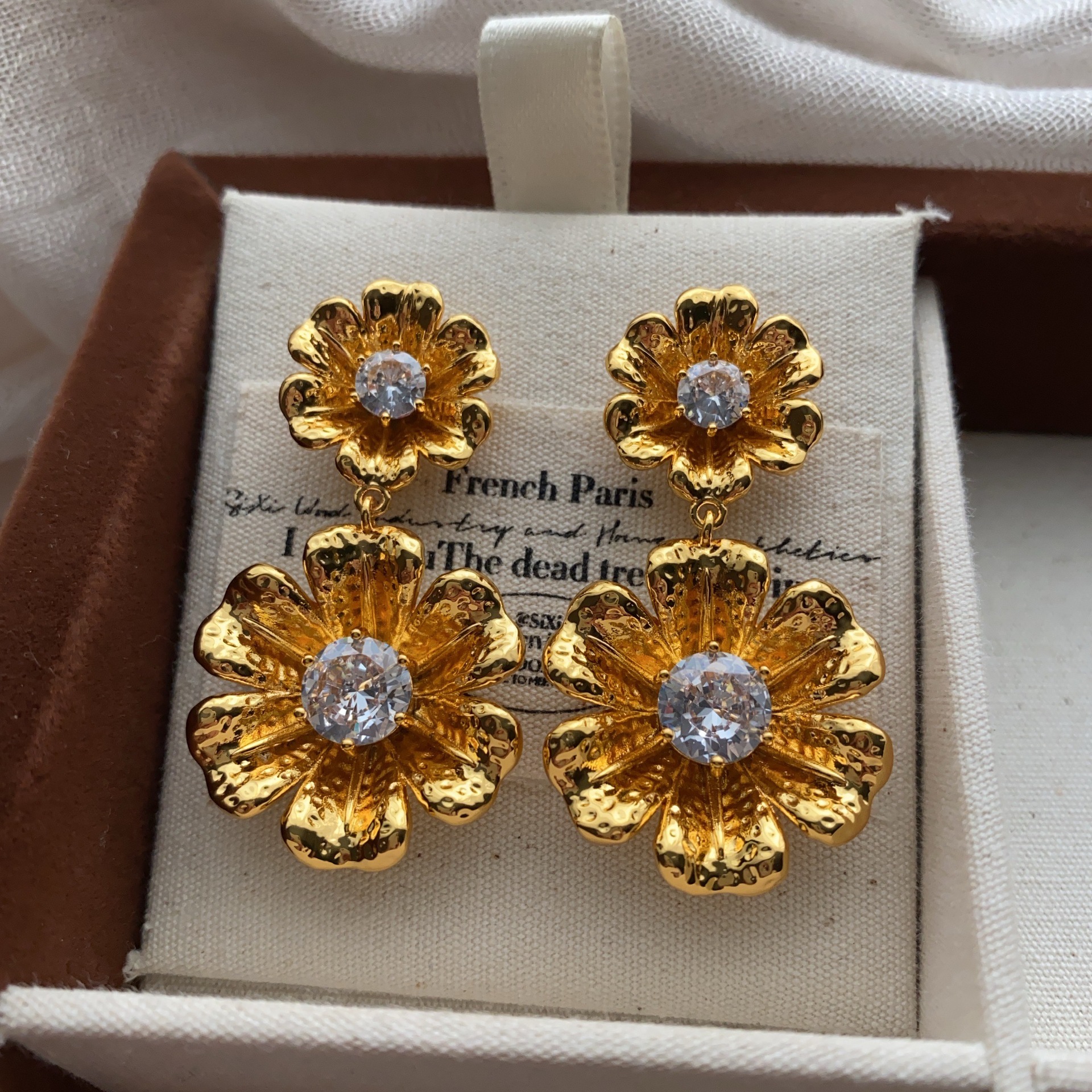 星辰对花的表镶钻花朵浪漫耳钉复古小众百搭耳环时尚个性气质耳饰