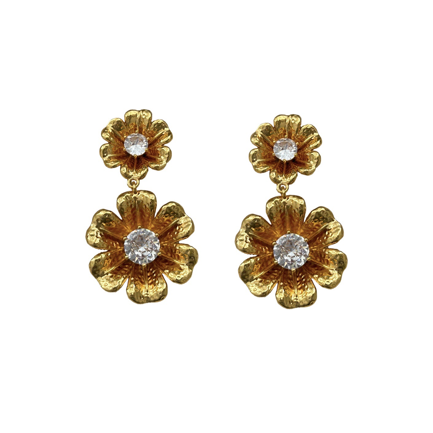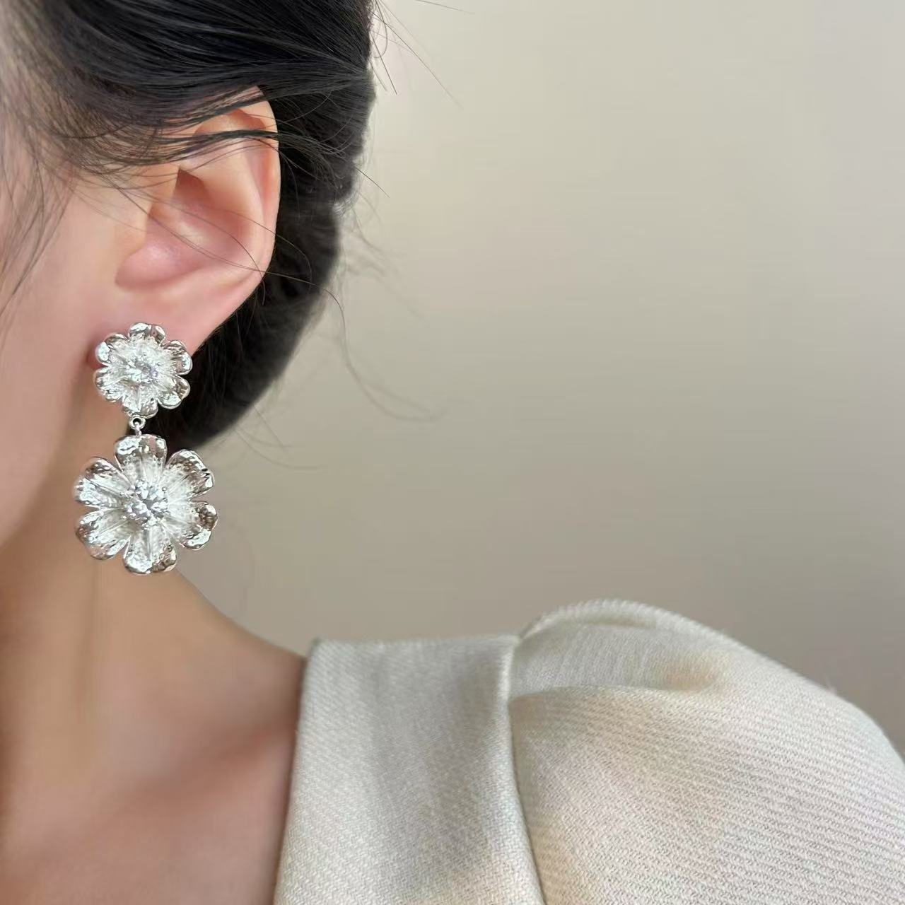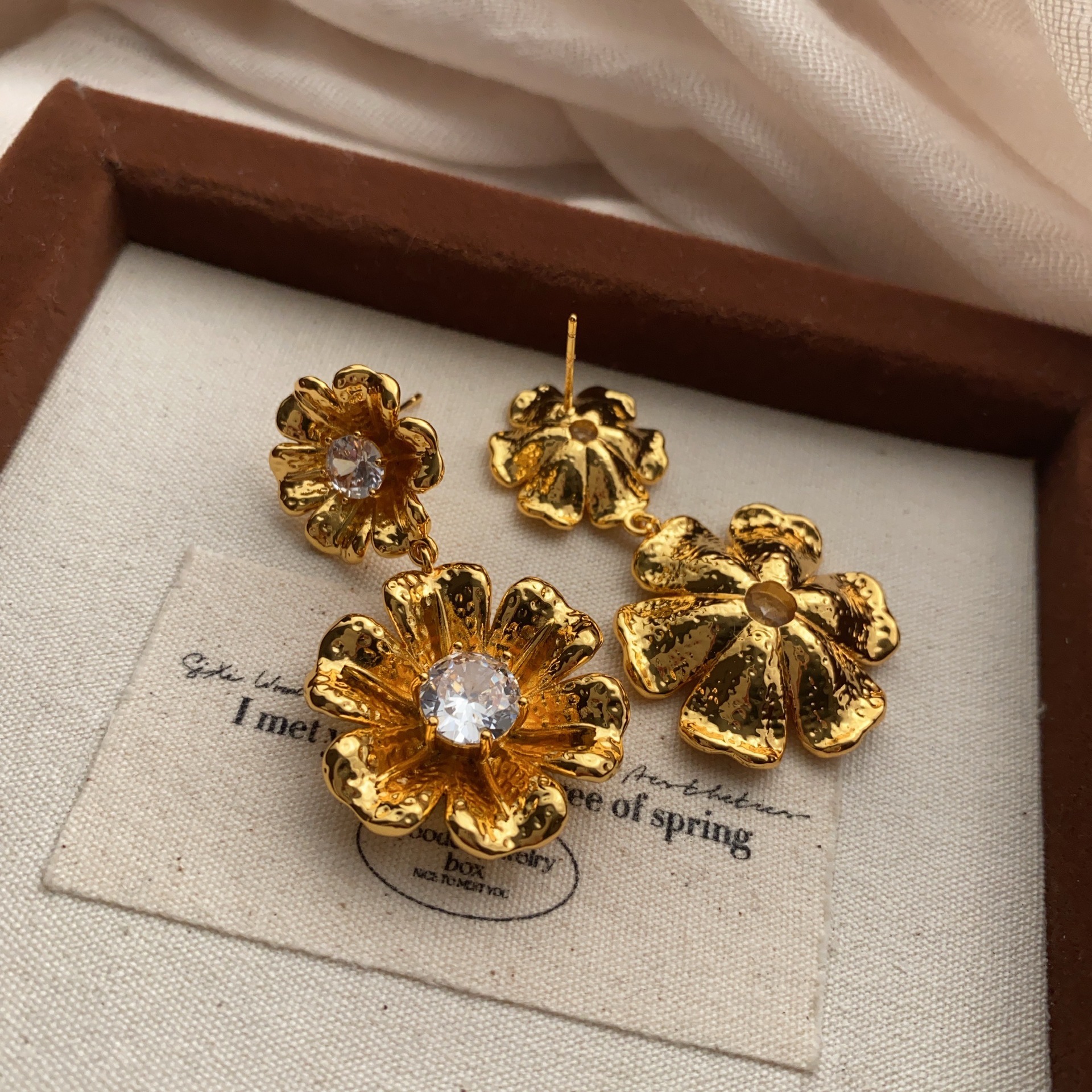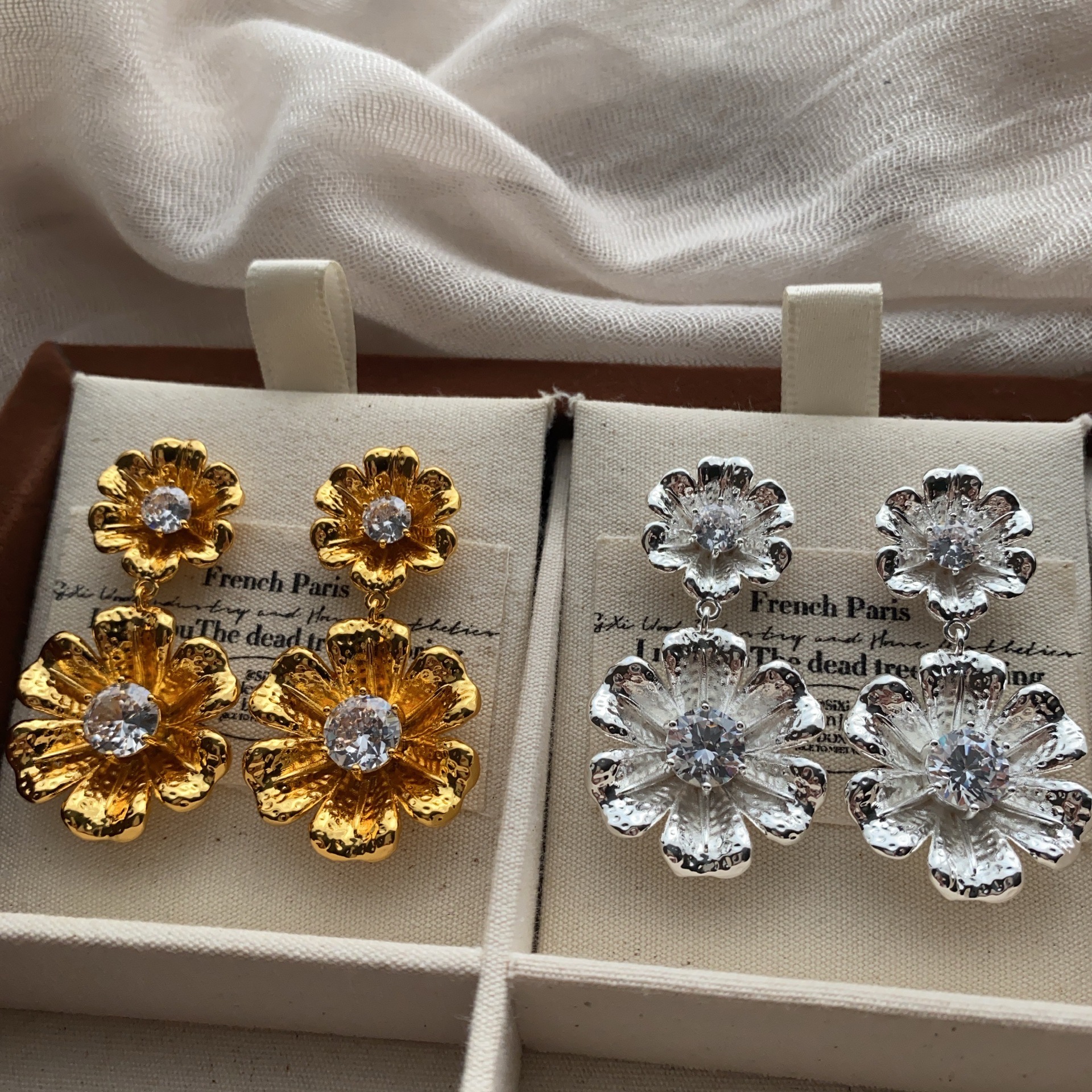 星辰对花的表镶钻花朵浪漫耳钉复古小众百搭耳环时尚个性气质耳饰