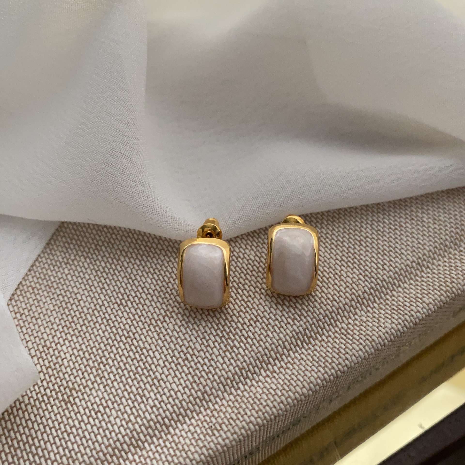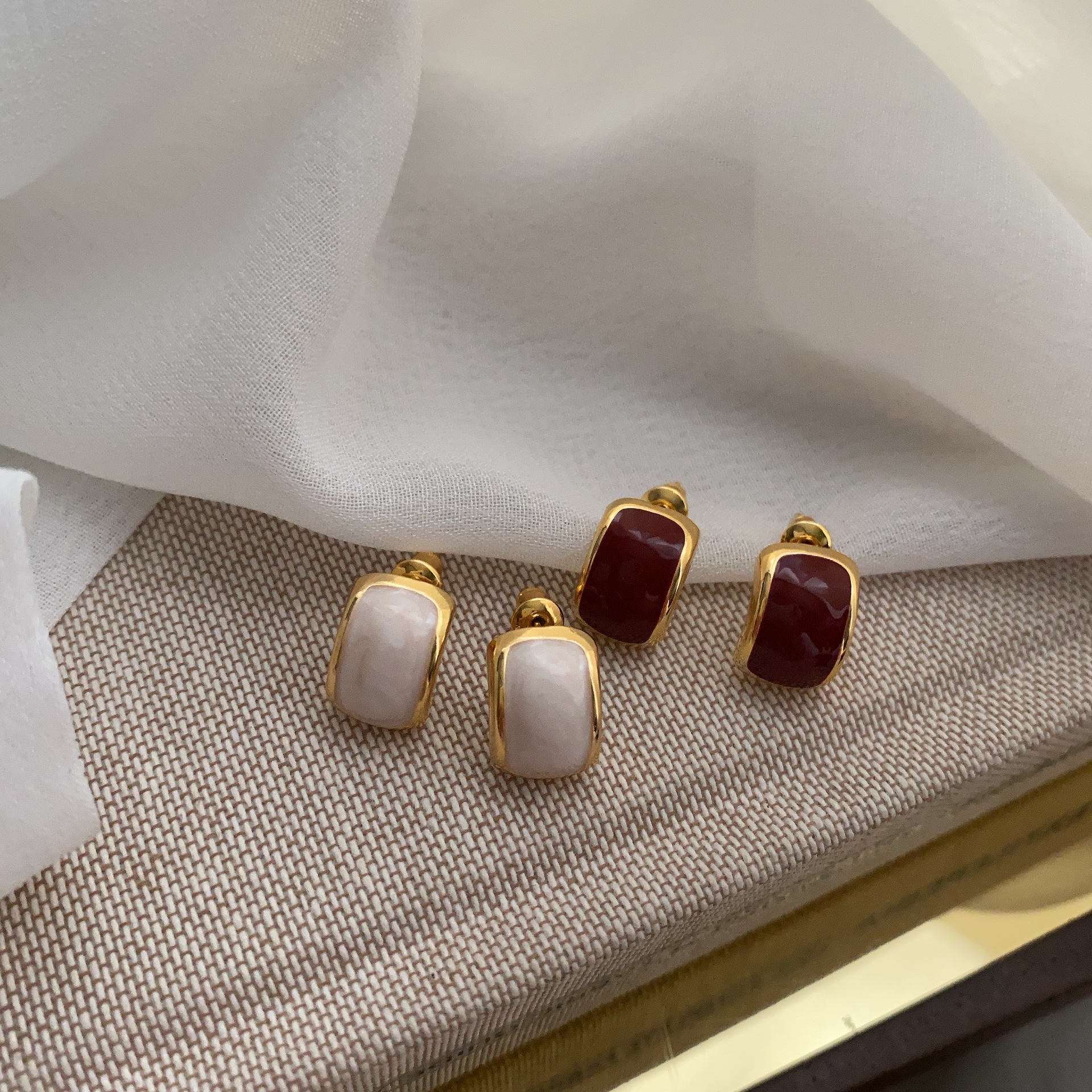 百搭新款简约气质白色滴釉耳钉女小众设计高级感耳环时尚百搭耳饰
