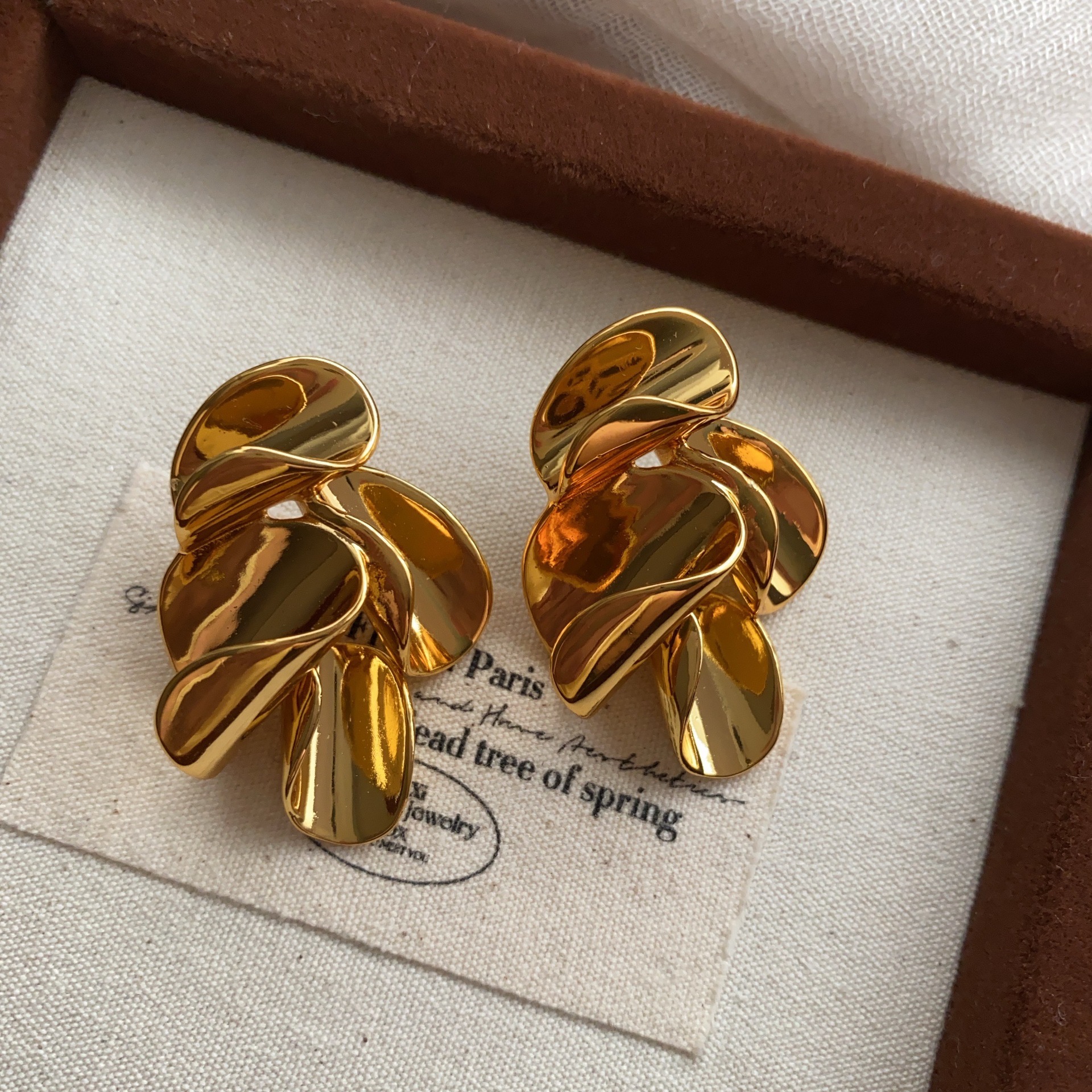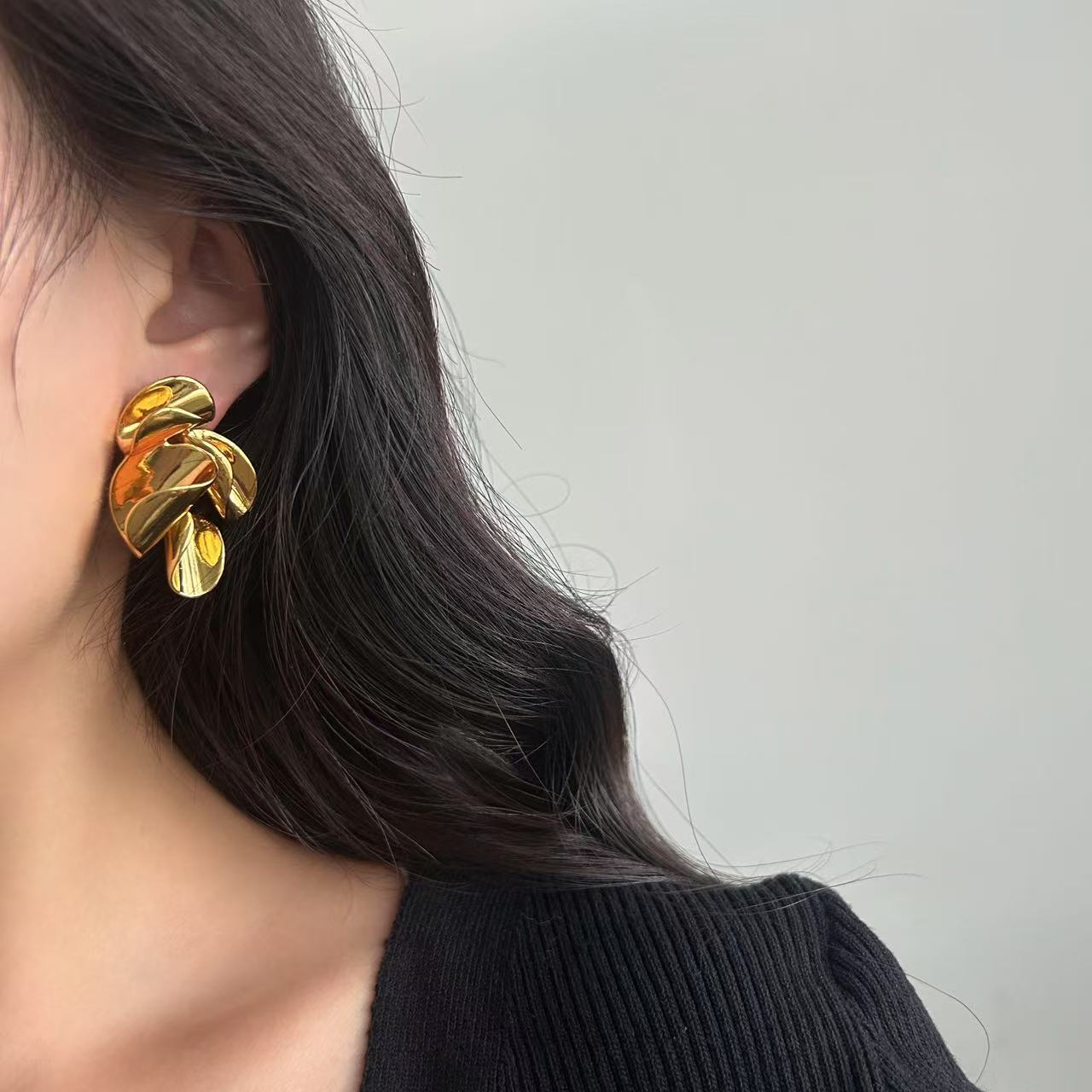 扭曲树叶耳钉耳环小众独特高级设计精致优雅质感时尚轻奢个性百搭