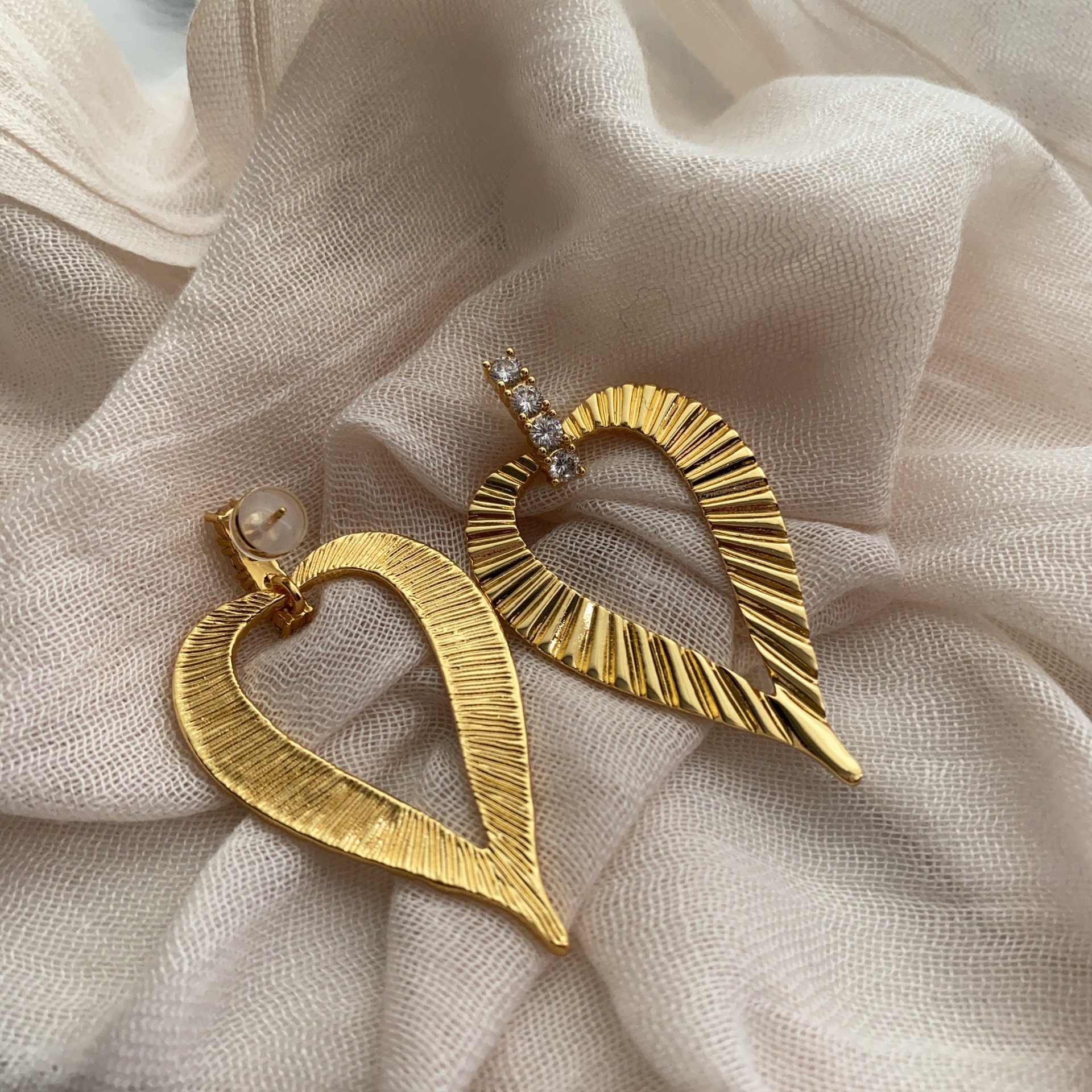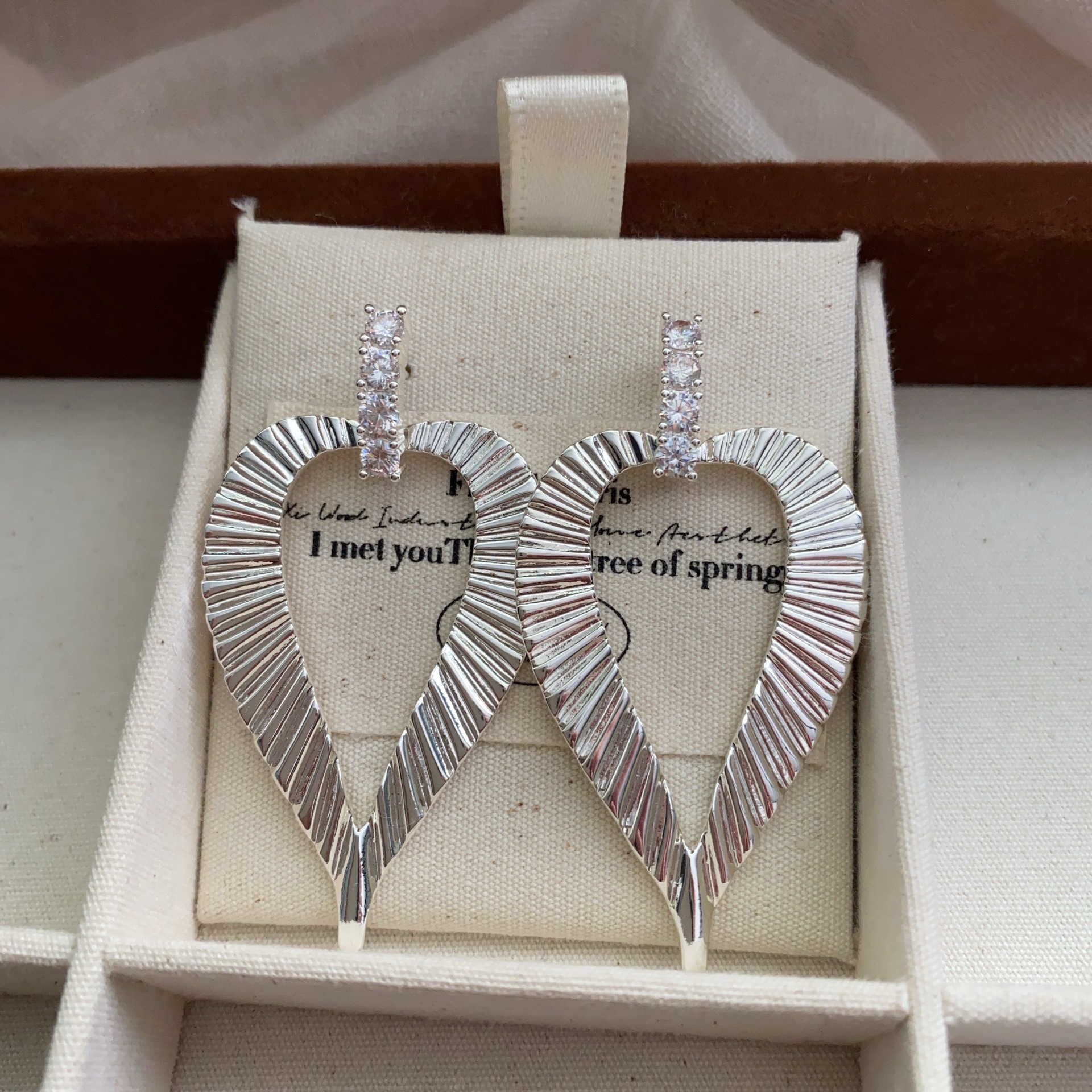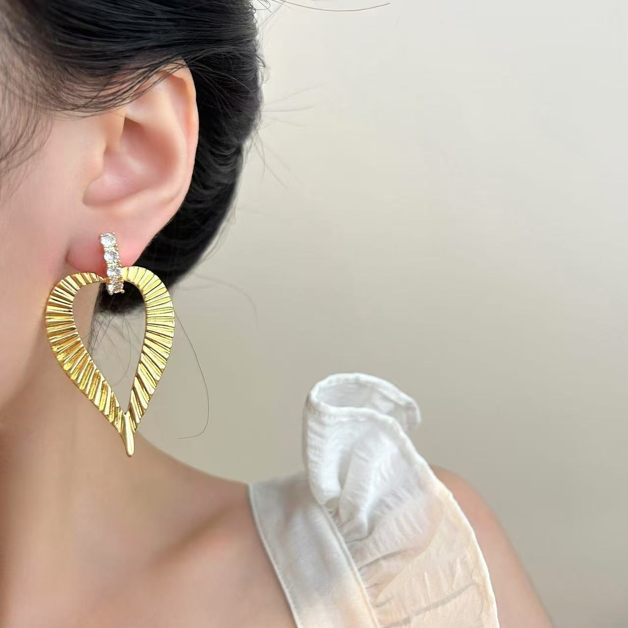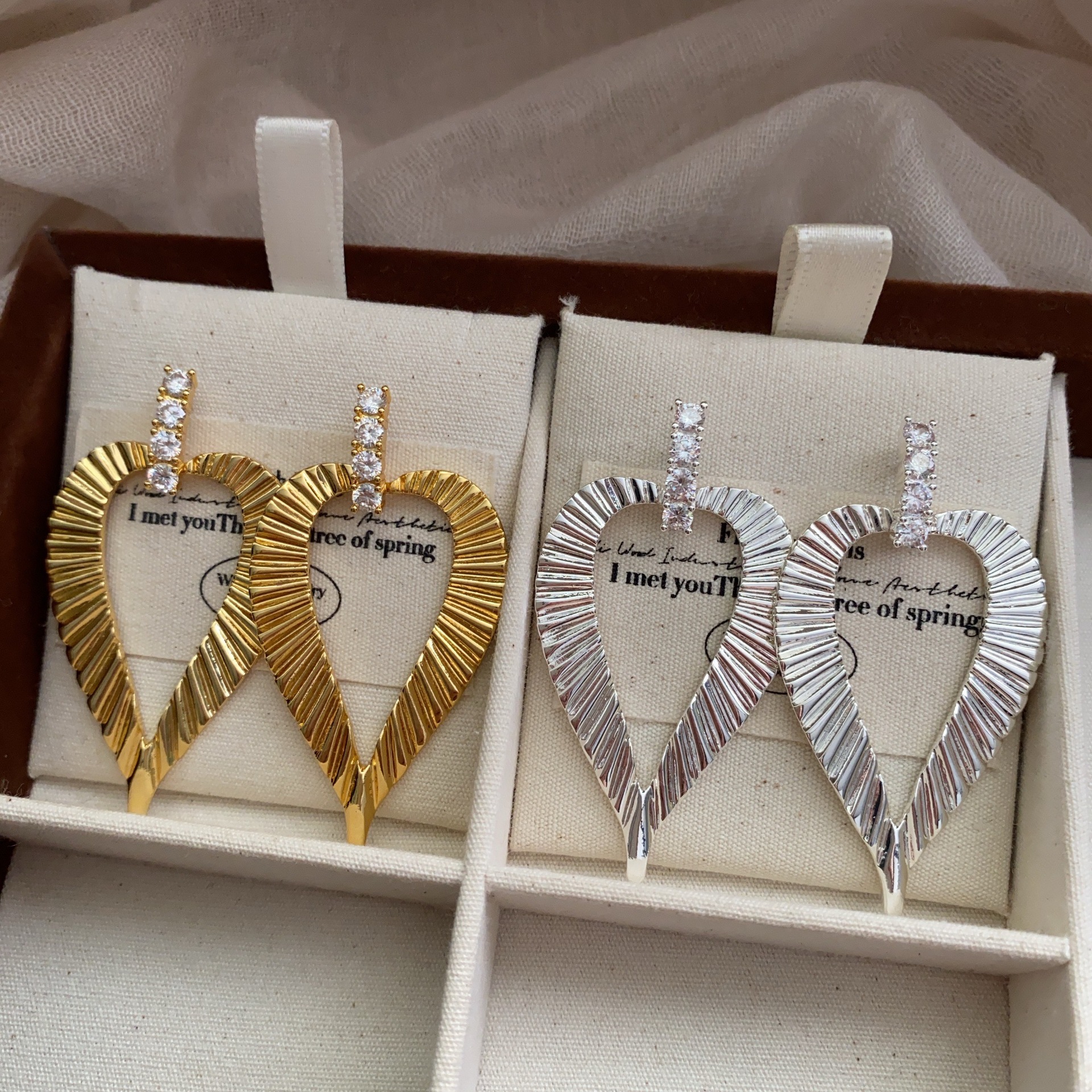 夸张时尚镂空金银色锆石爱心耳坠欧美小众设计高级感简约百搭耳饰