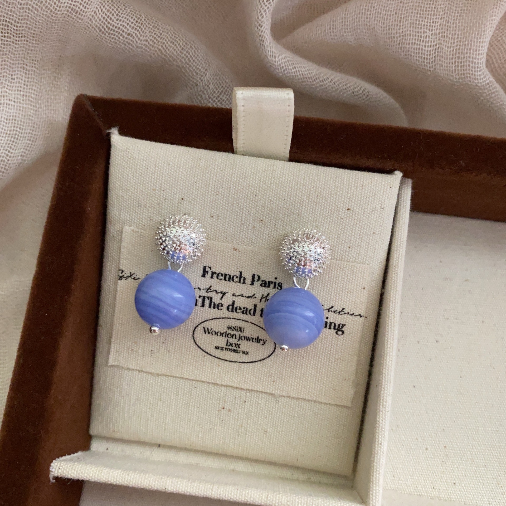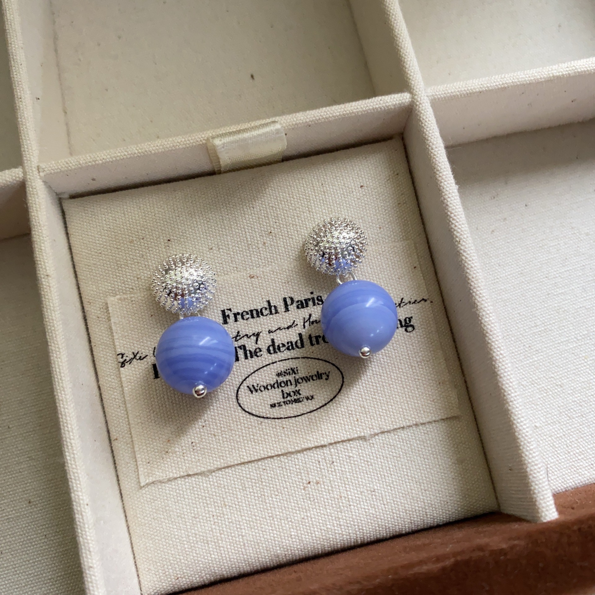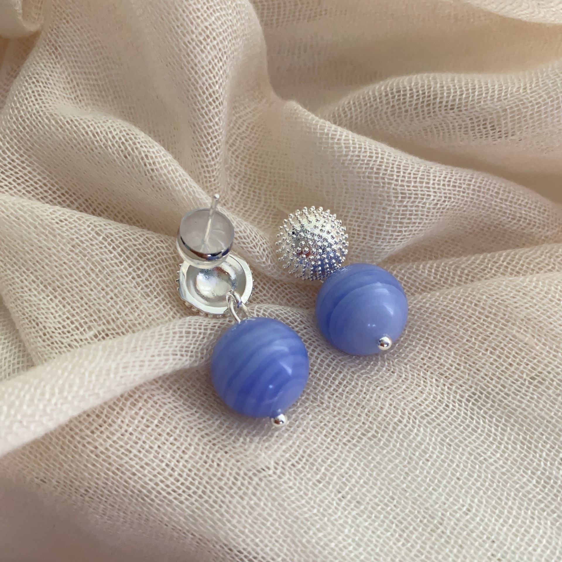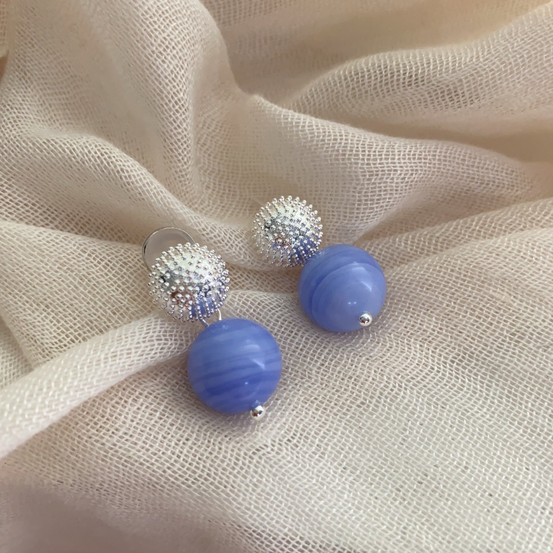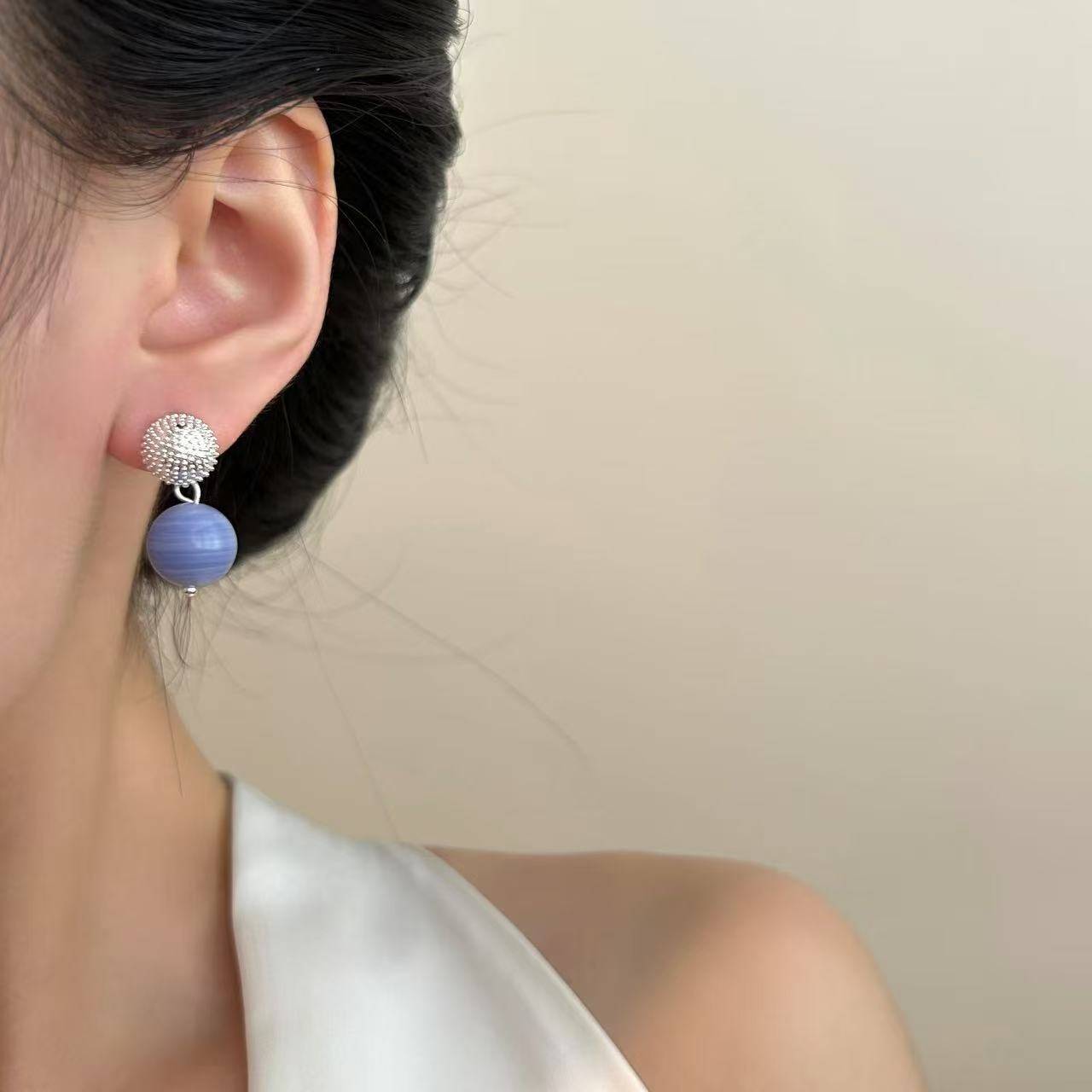 简约新款蓝色球体高级感珠珠耳坠轻奢时尚百搭个性气质优雅女耳环