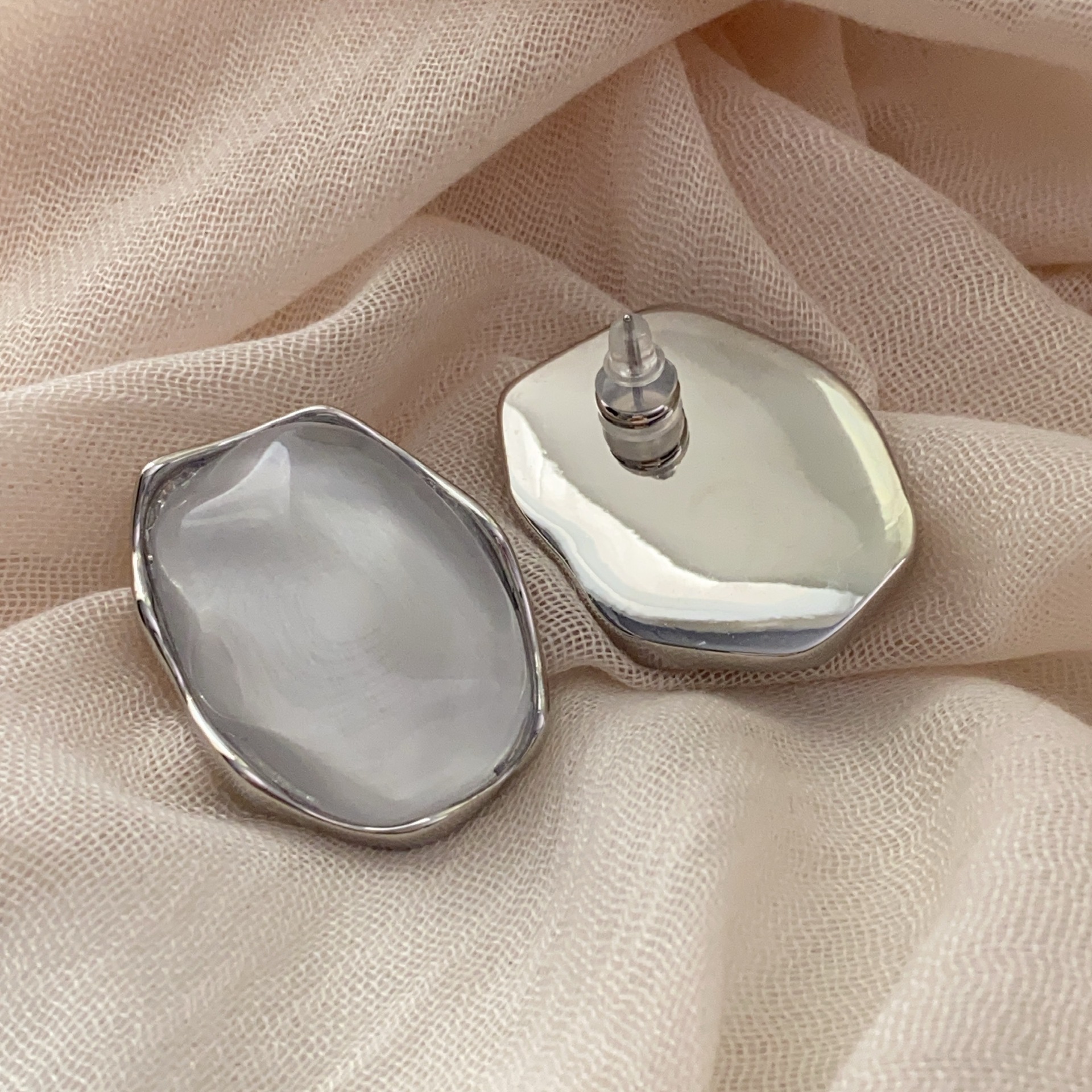 欧美时髦爆款拉丝几何不规则膝盖耳钉女轻奢高级感适合大圆脸耳环