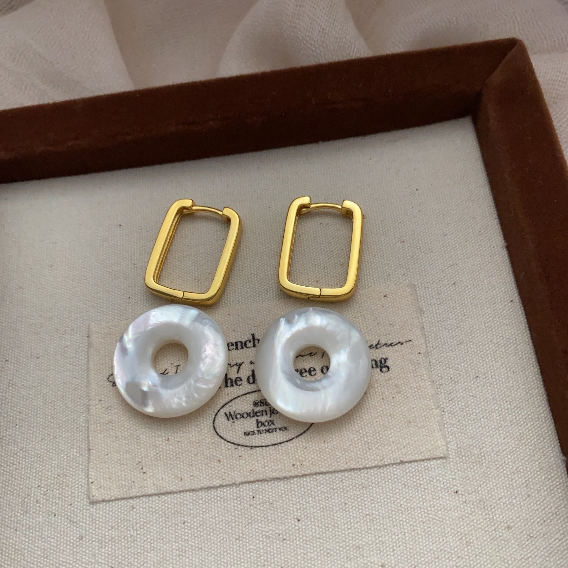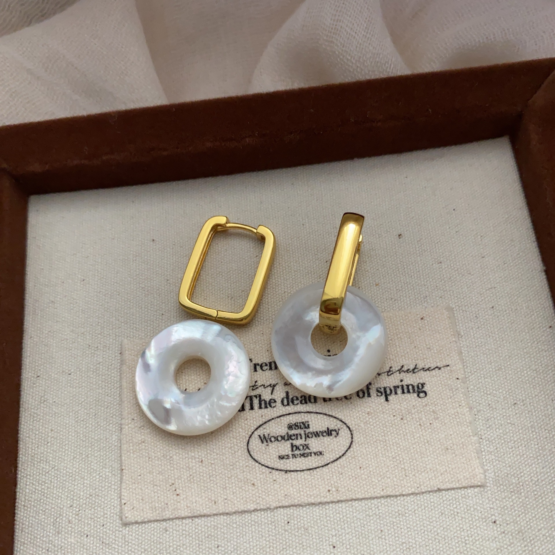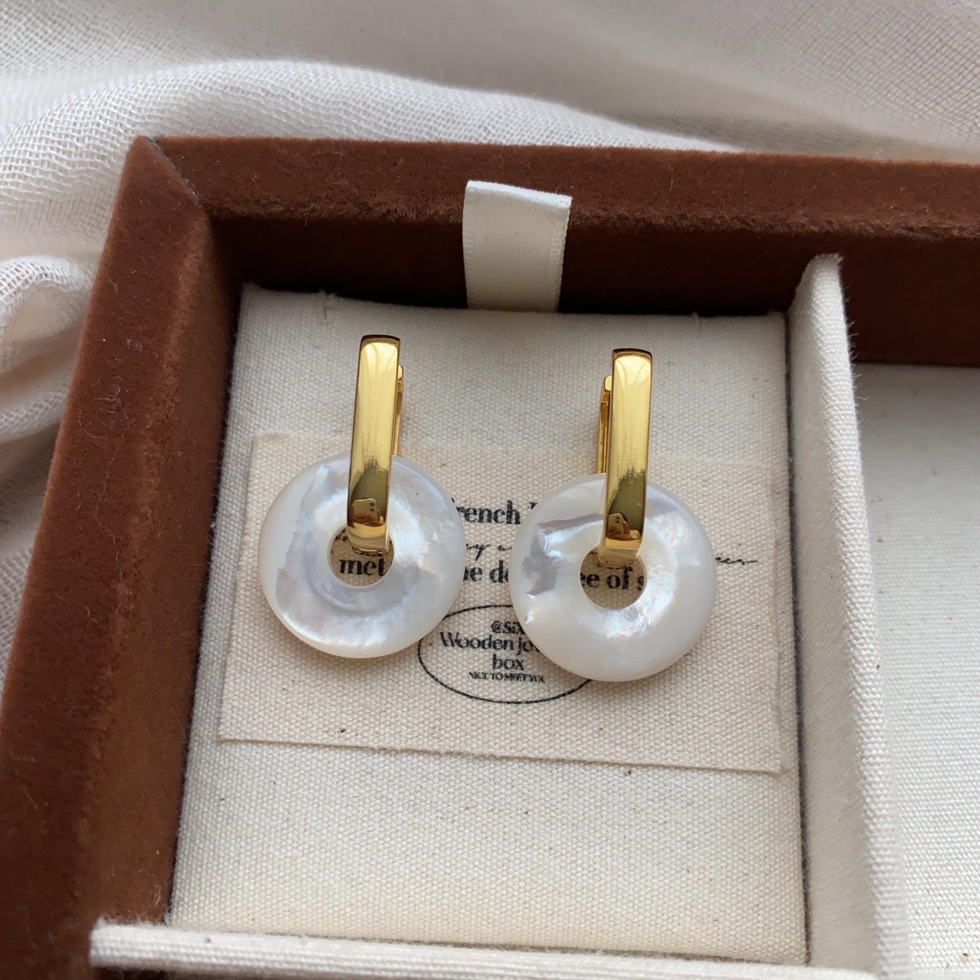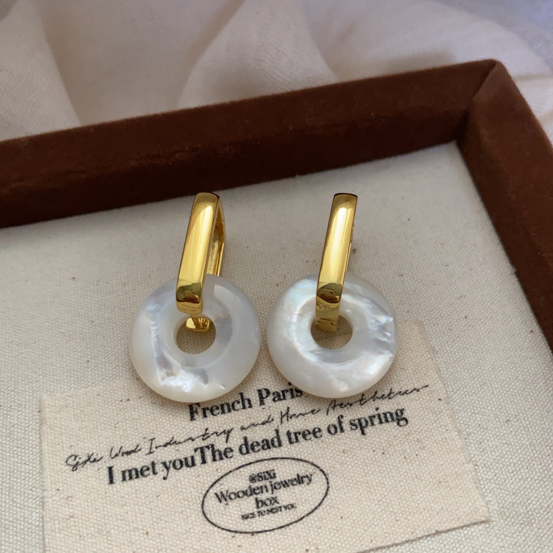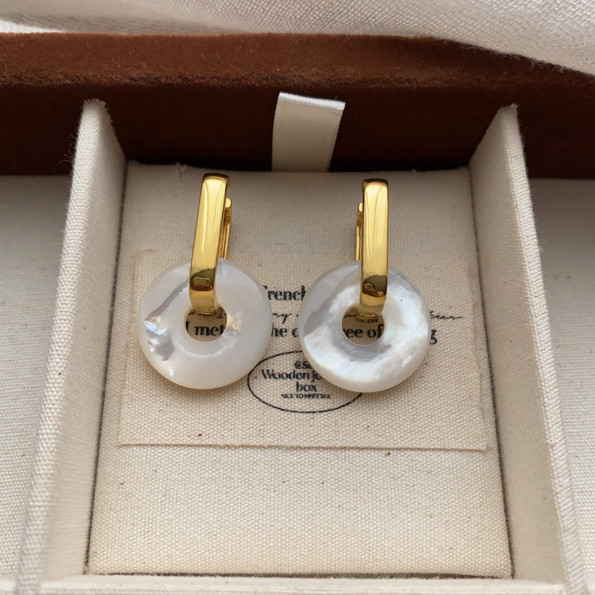 圆形天然贝母圆圈耳环耳扣简约小众中国风平安扣高级耳饰独特精致