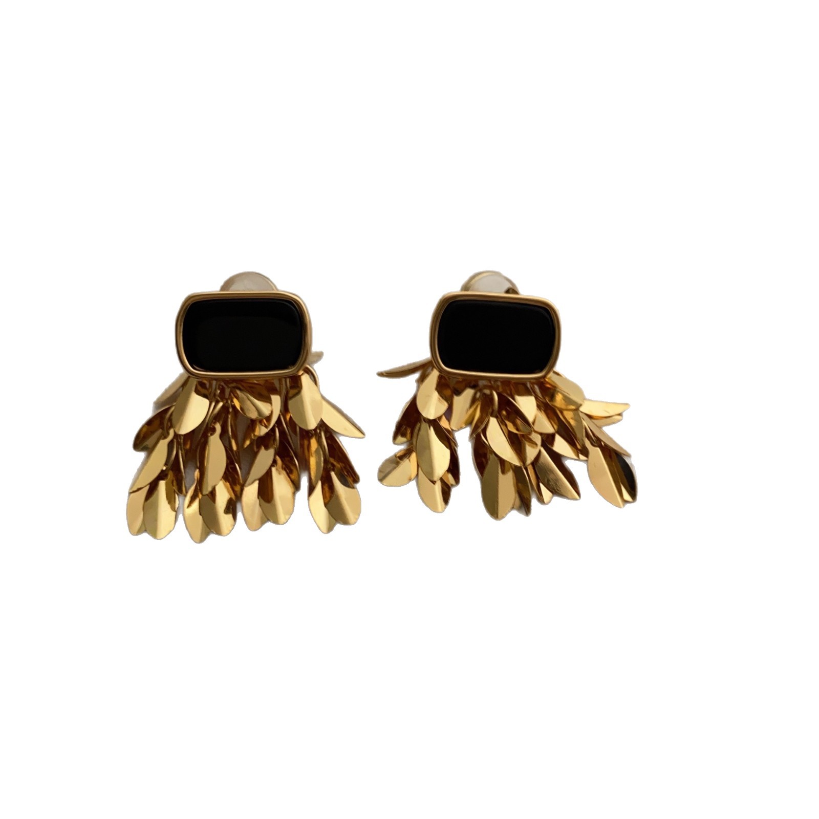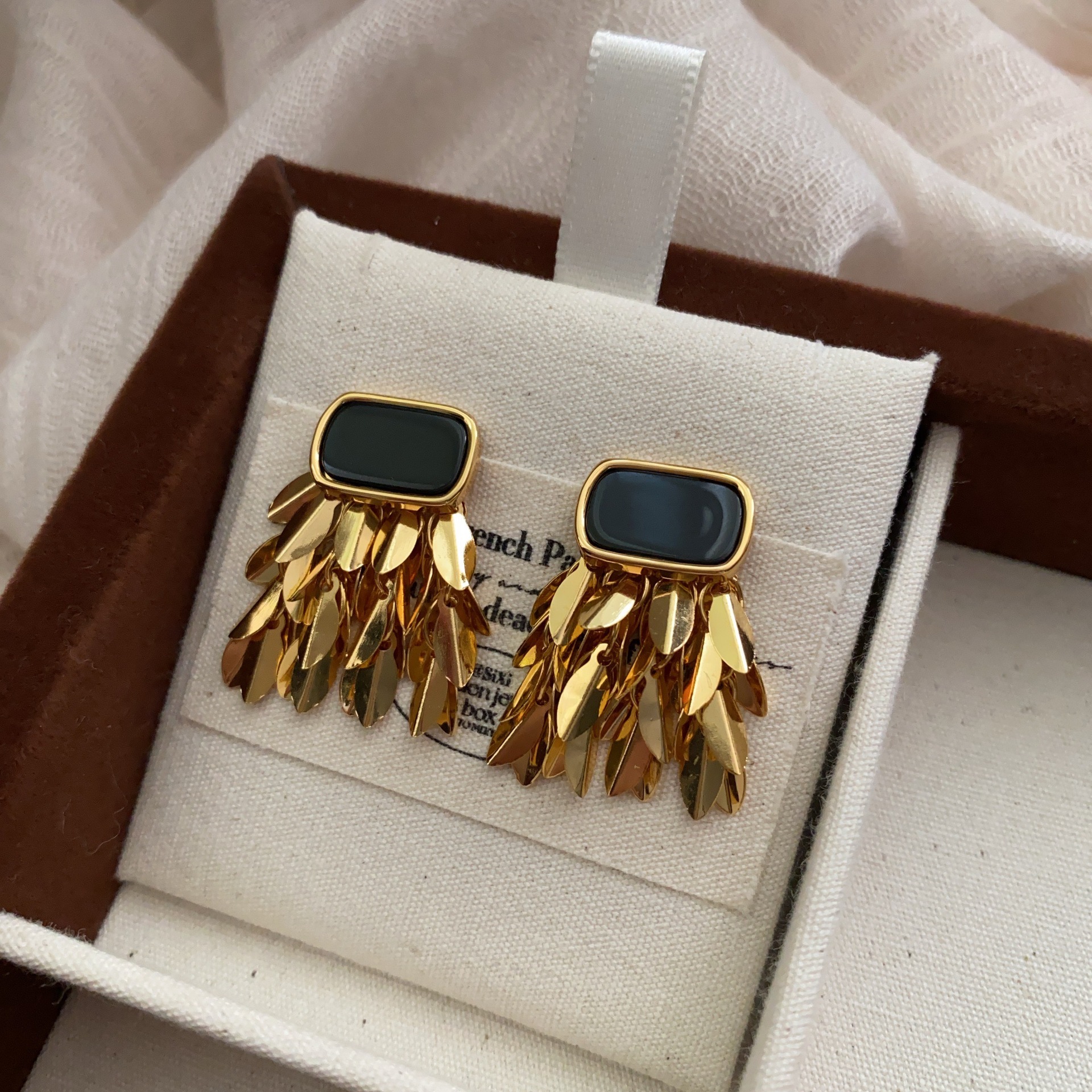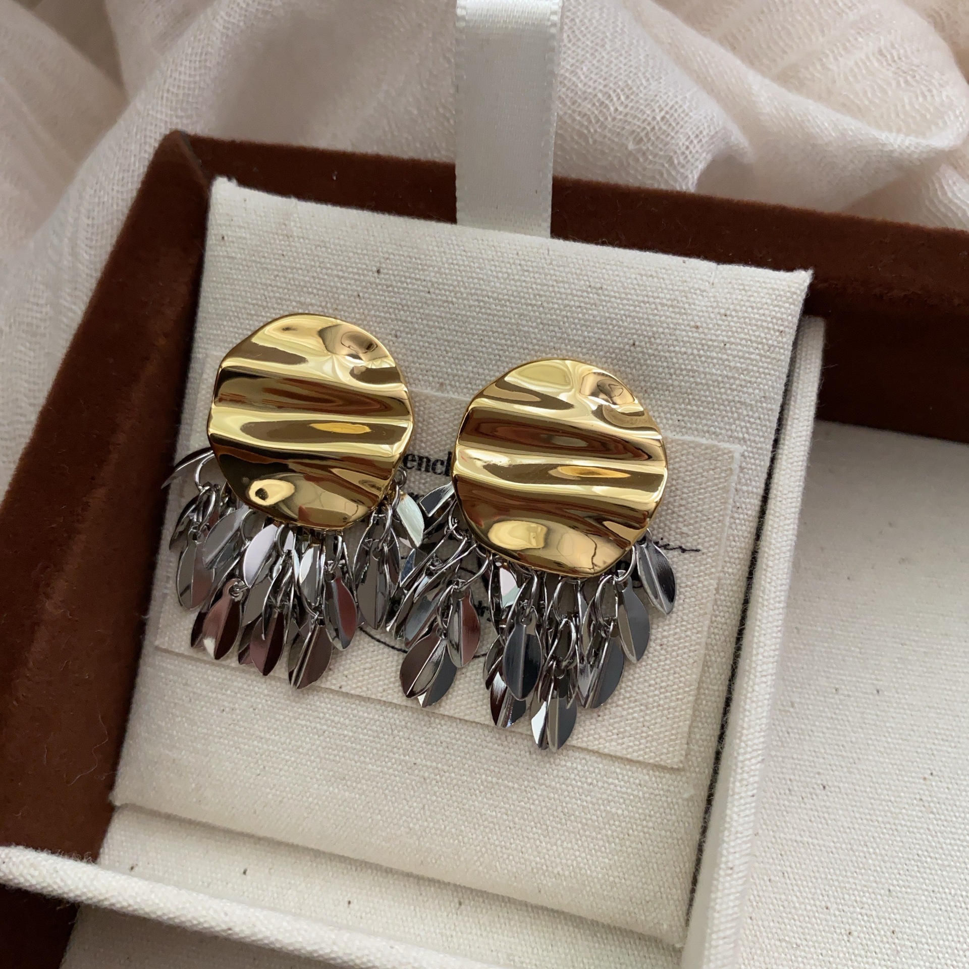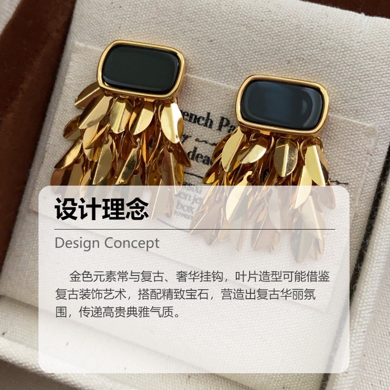 轻奢时尚新品女式树叶流苏耳环跨境气质百搭双色法式高级通勤耳钉