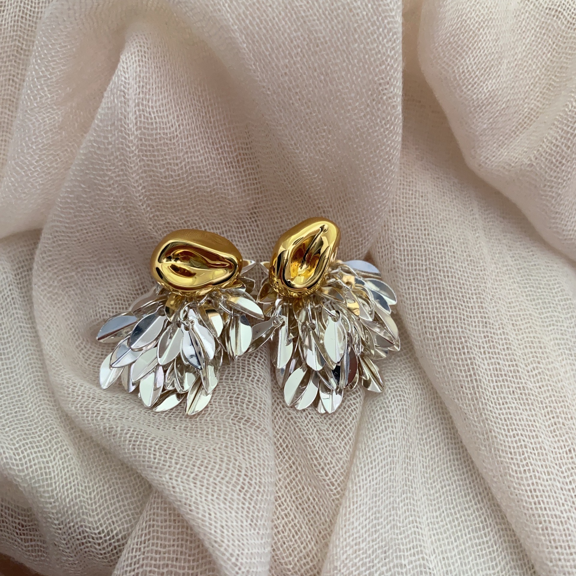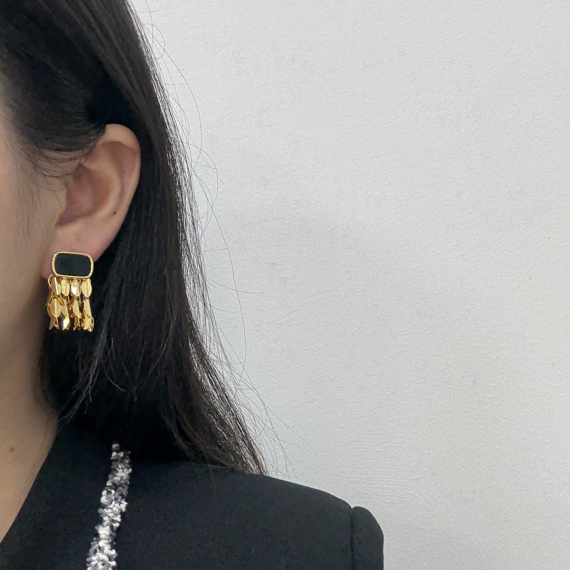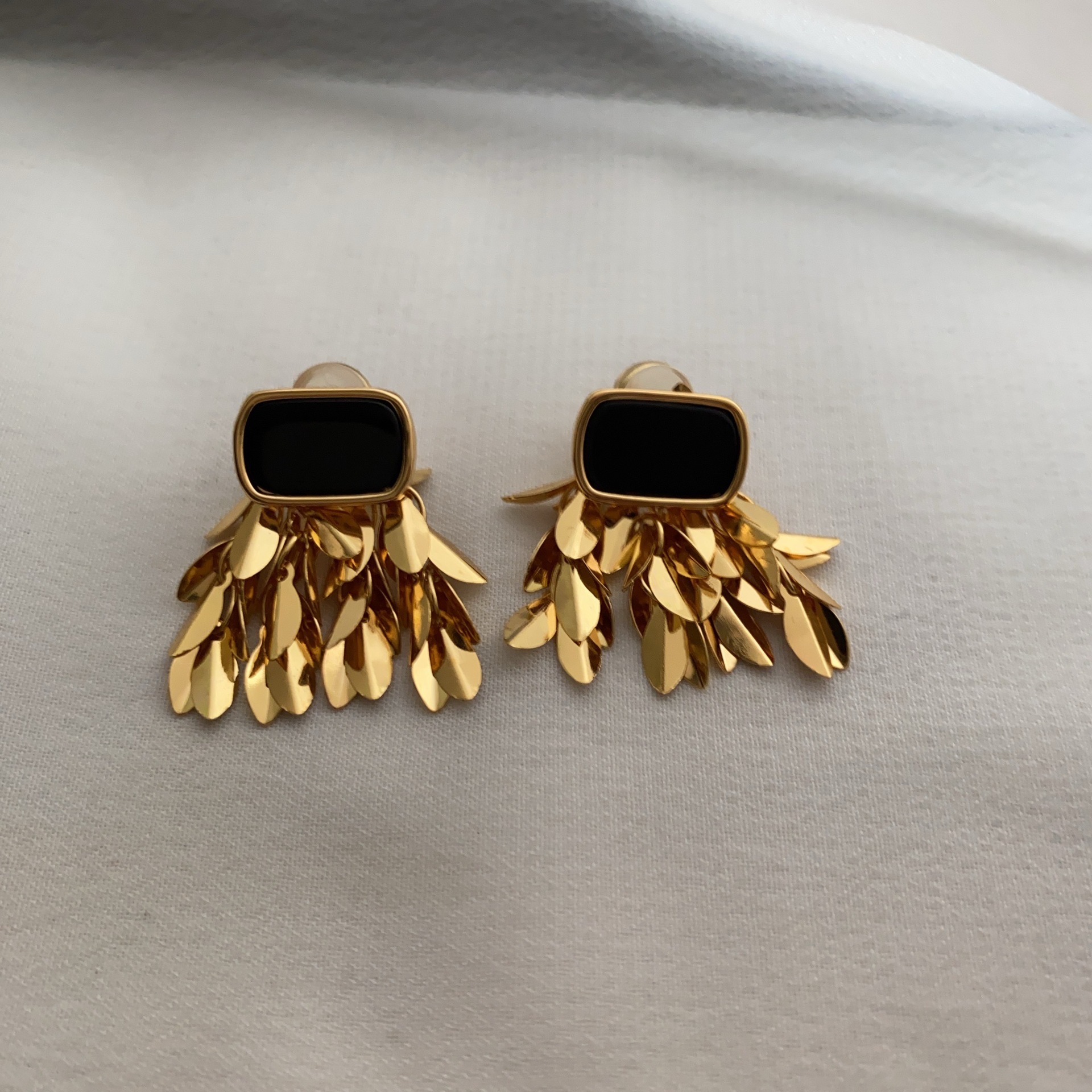 轻奢时尚新品女式树叶流苏耳环跨境气质百搭双色法式高级通勤耳钉