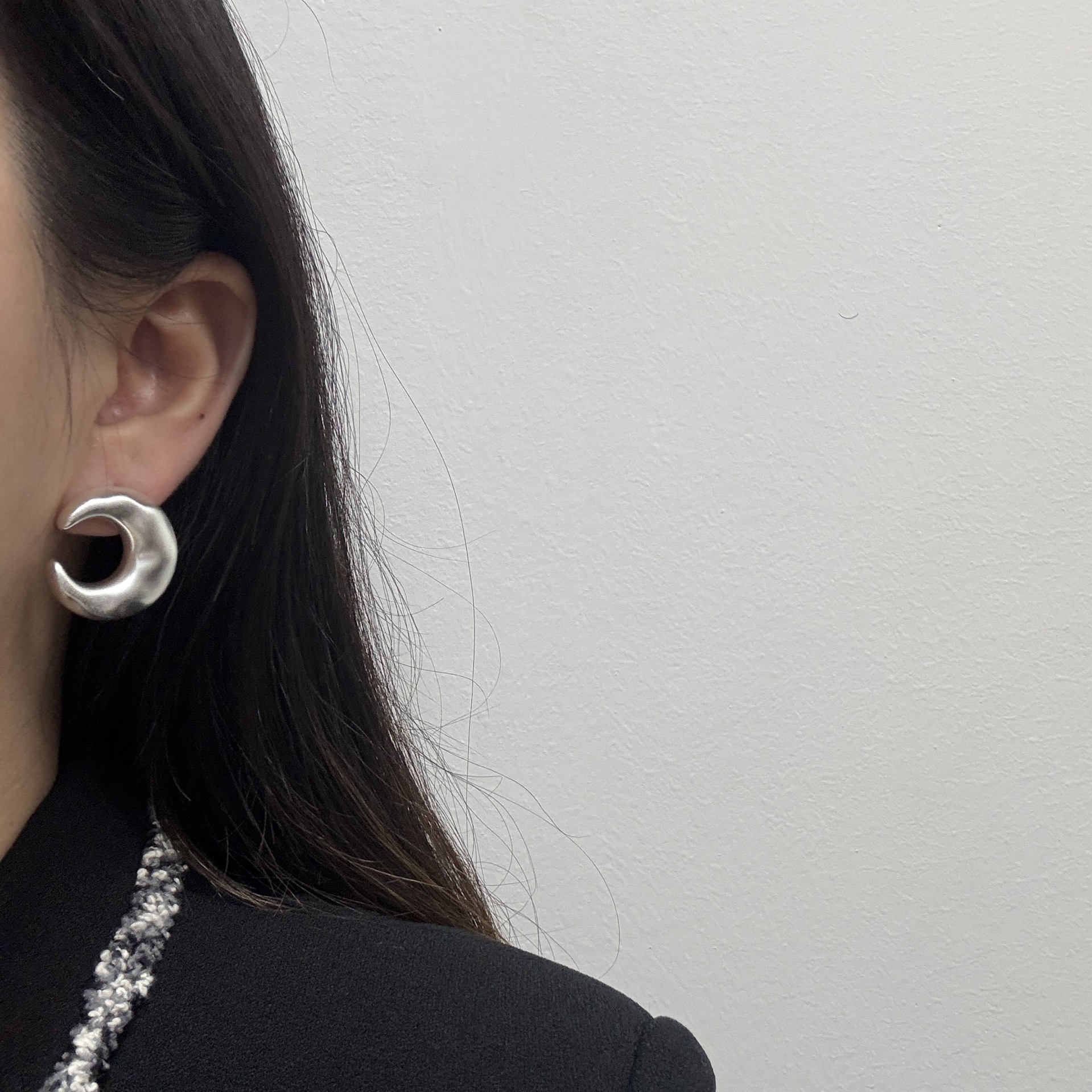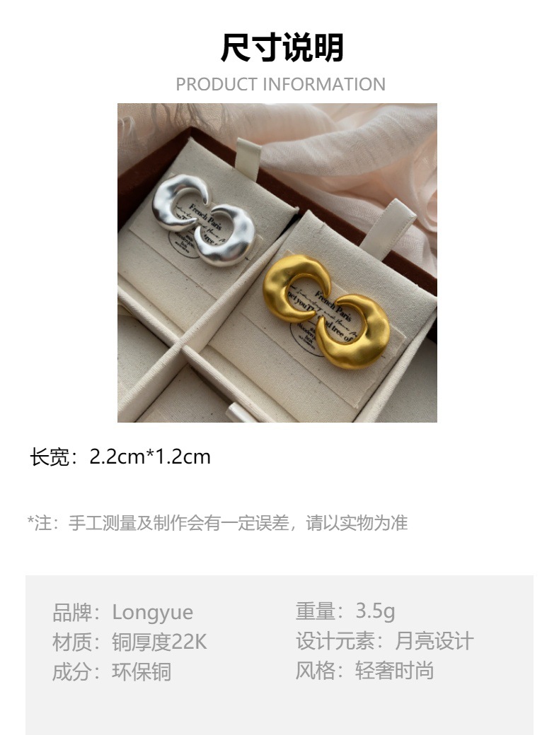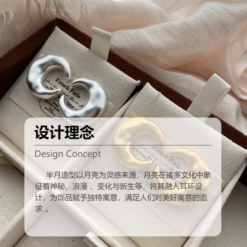 清冷感简约金银色月牙耳钉小众设计精致风时尚气质通勤百搭耳饰女