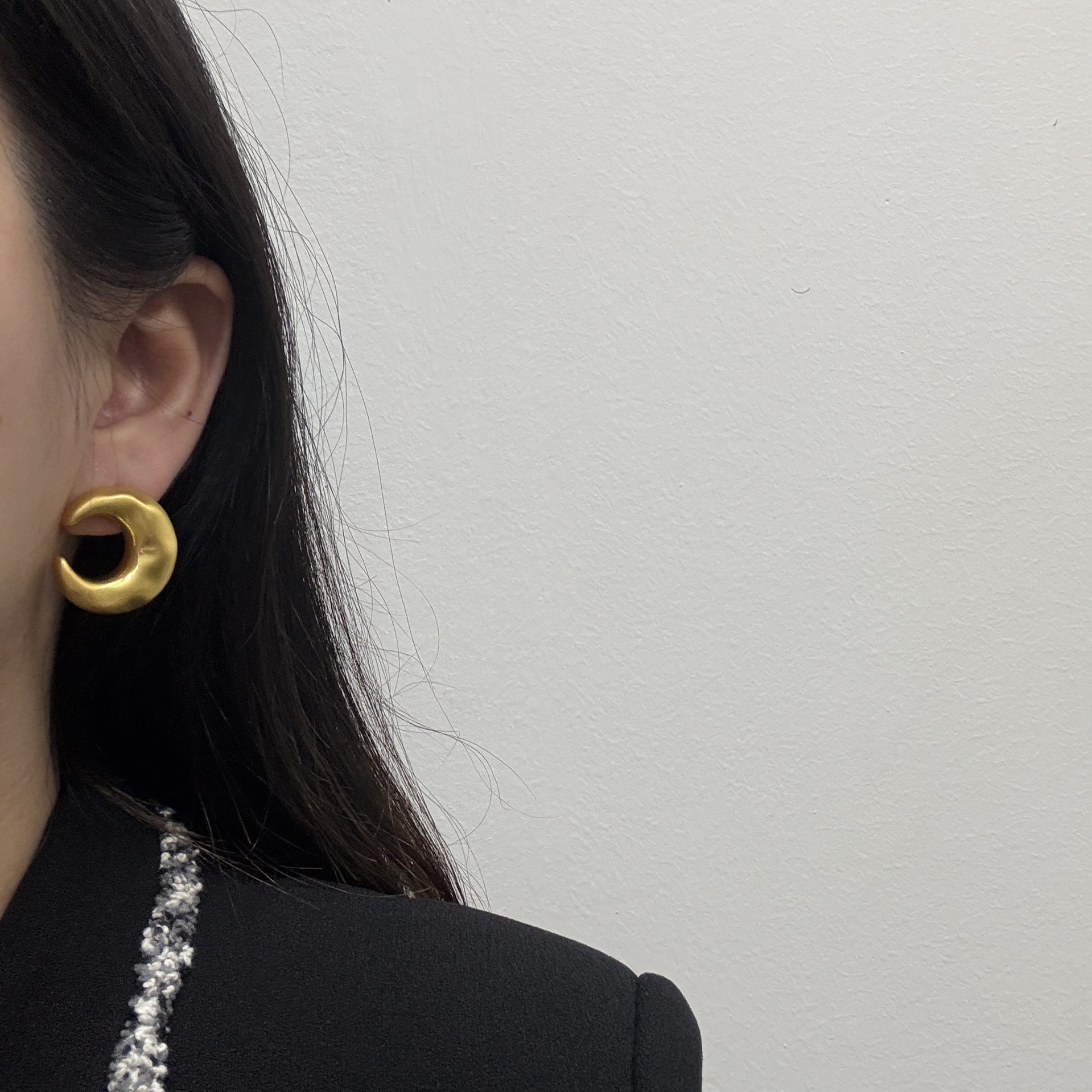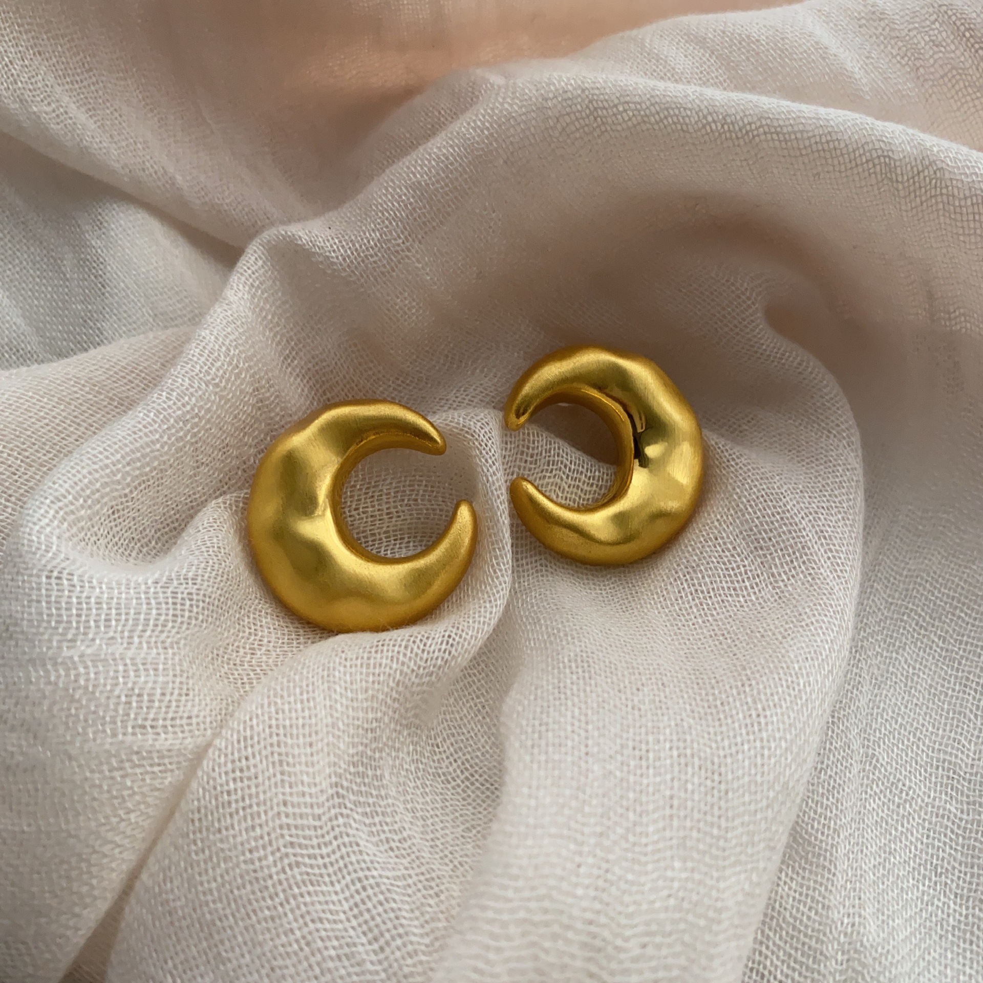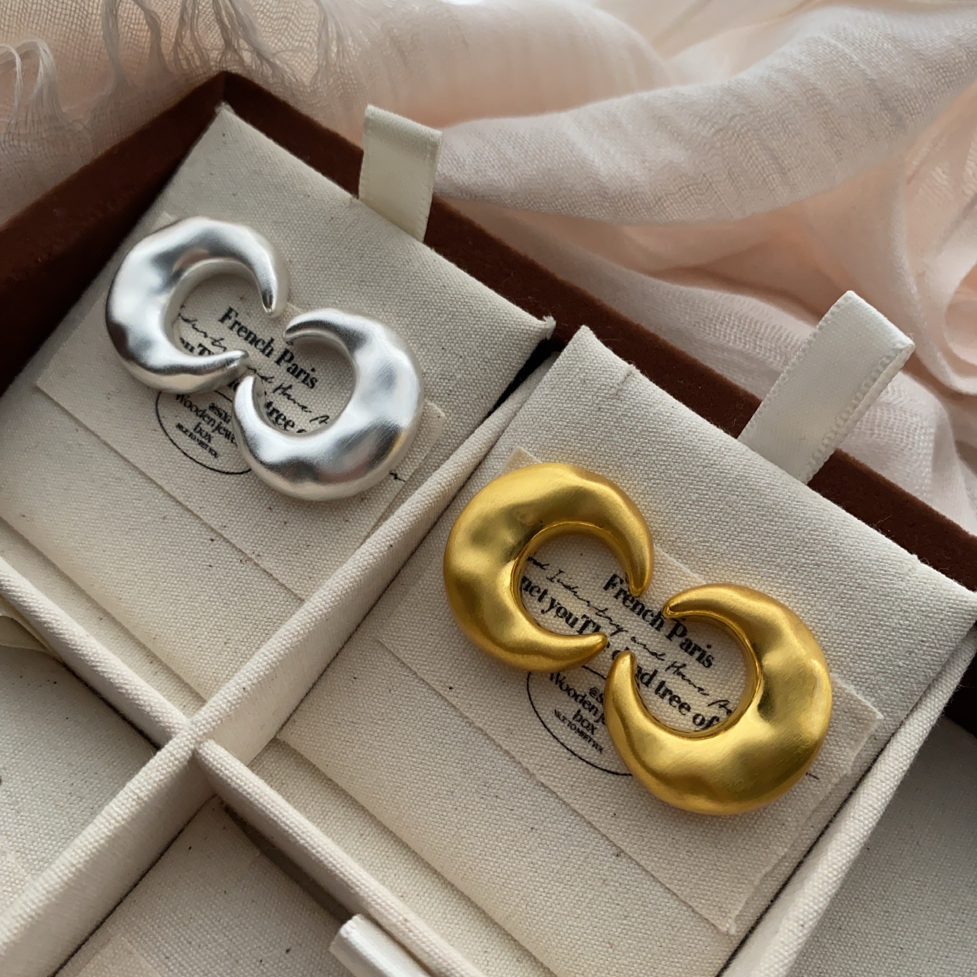 清冷感简约金银色月牙耳钉小众设计精致风时尚气质通勤百搭耳饰女