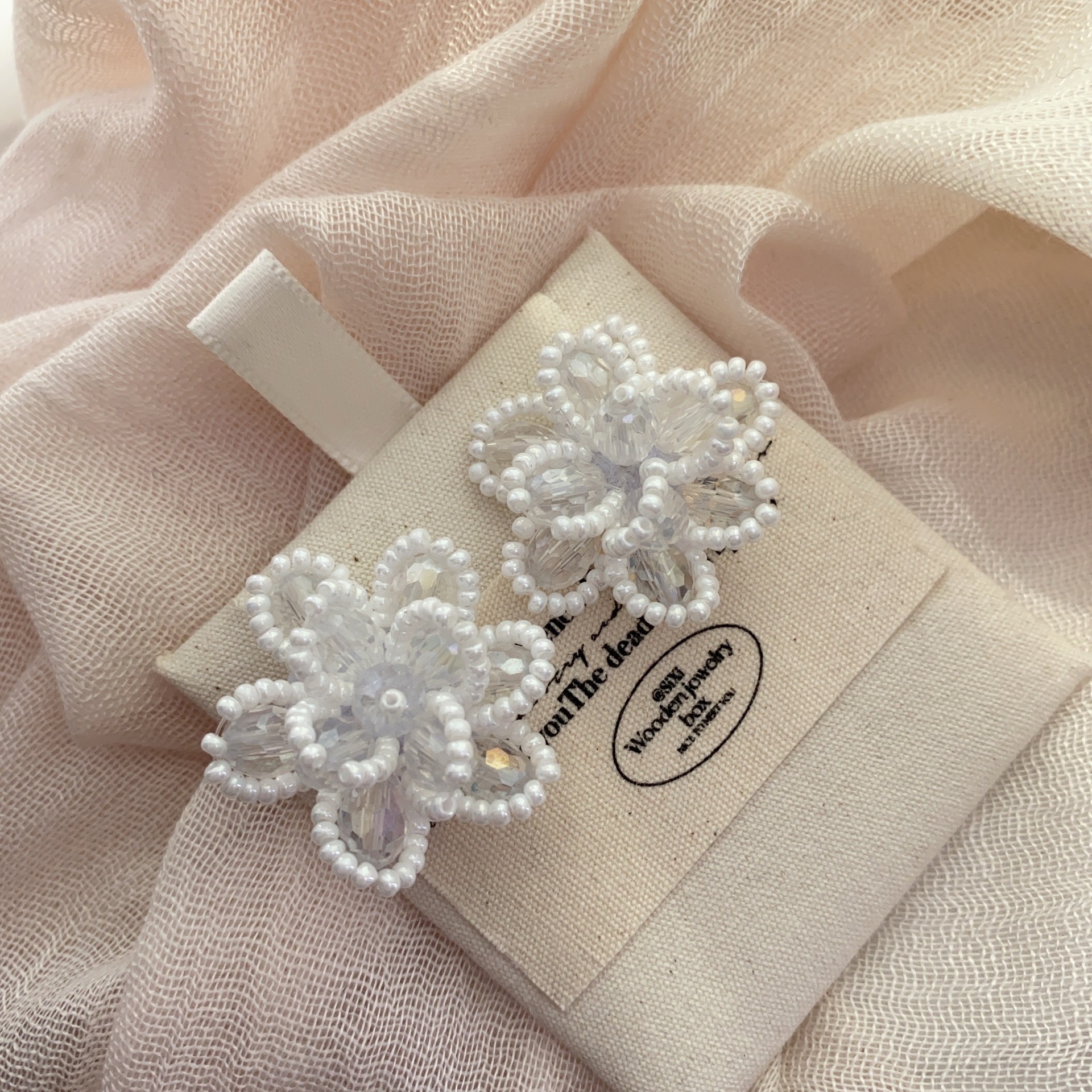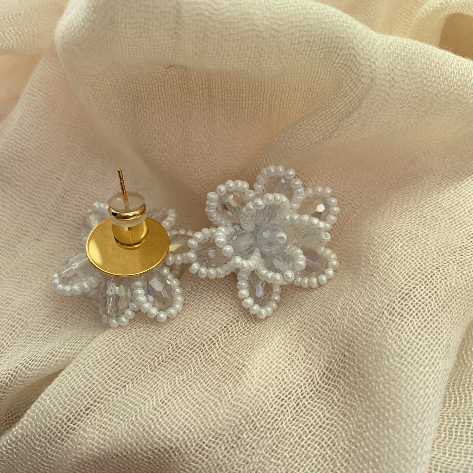 夏季网纱花朵耳环女2025新款爆款耳钉小众轻奢高级感时尚百搭耳饰