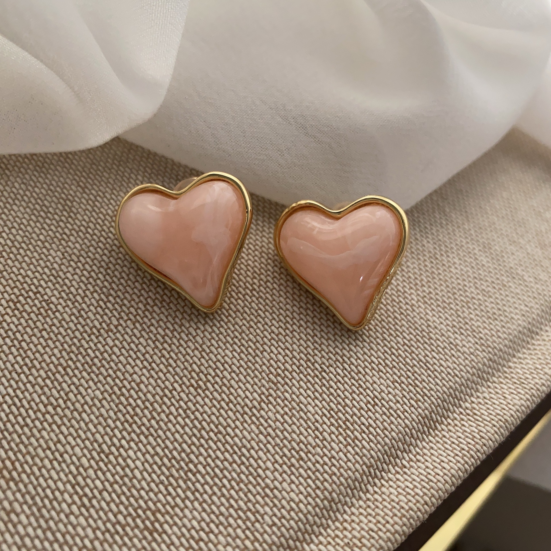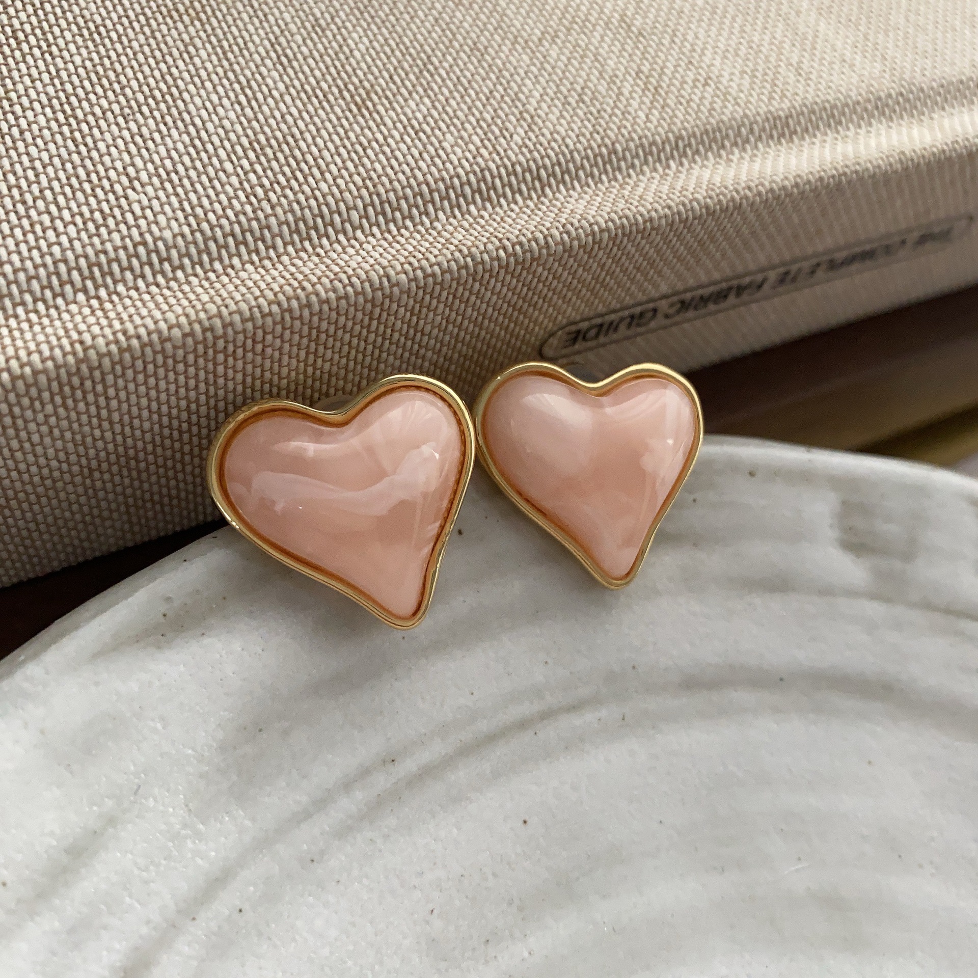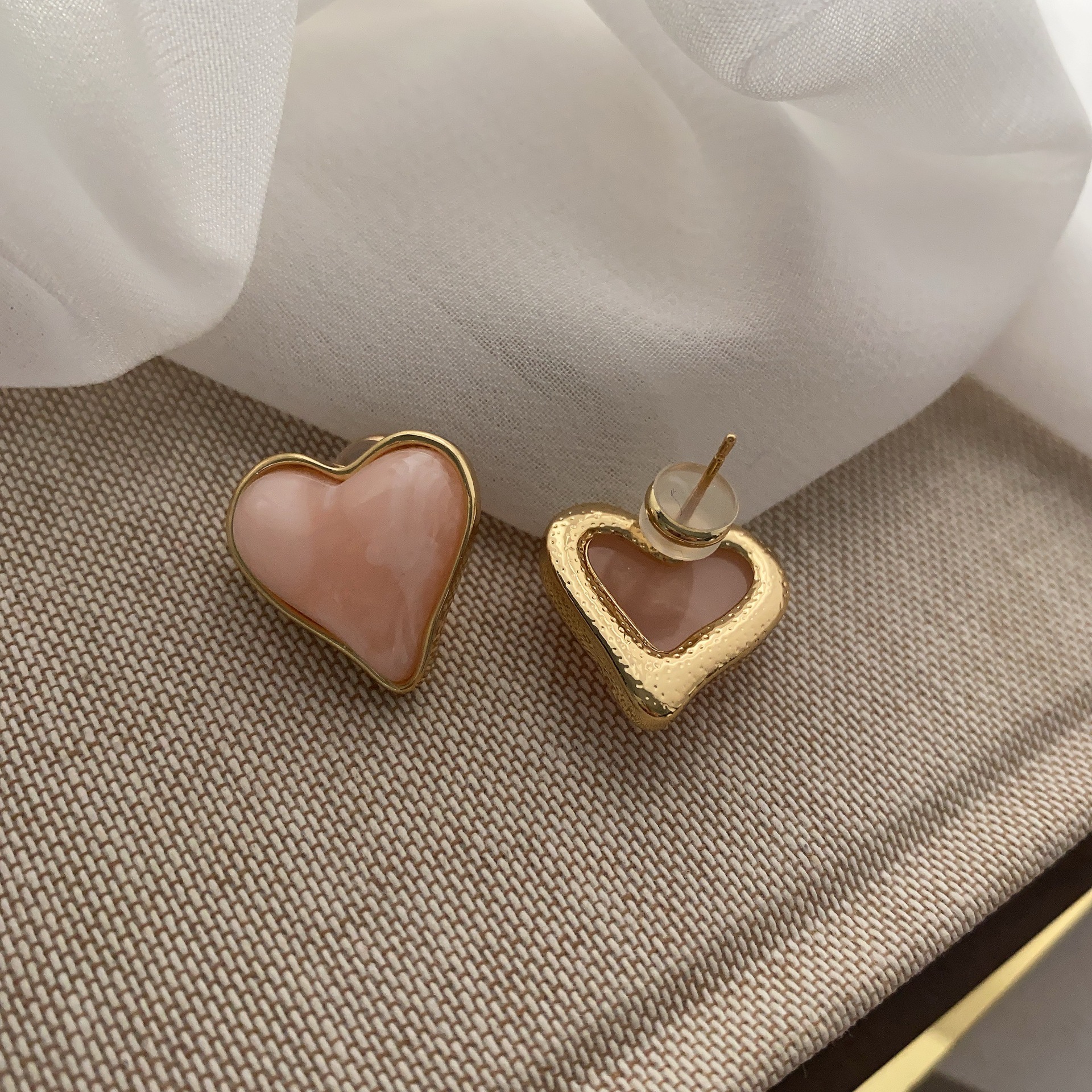 复古果冻树脂爱心耳钉女甜美可爱少女桃心耳环小众设计感蜜桃耳饰