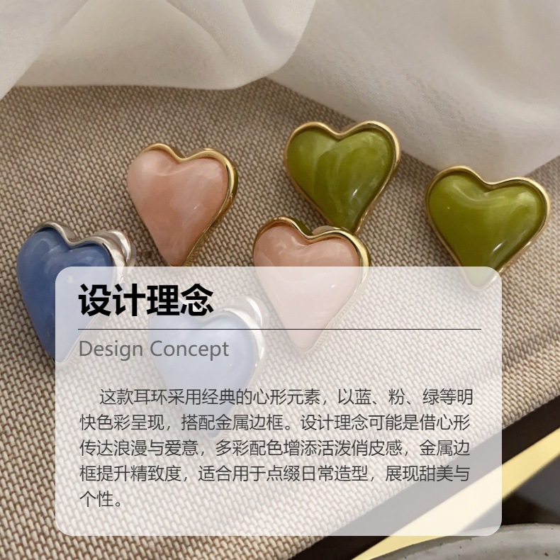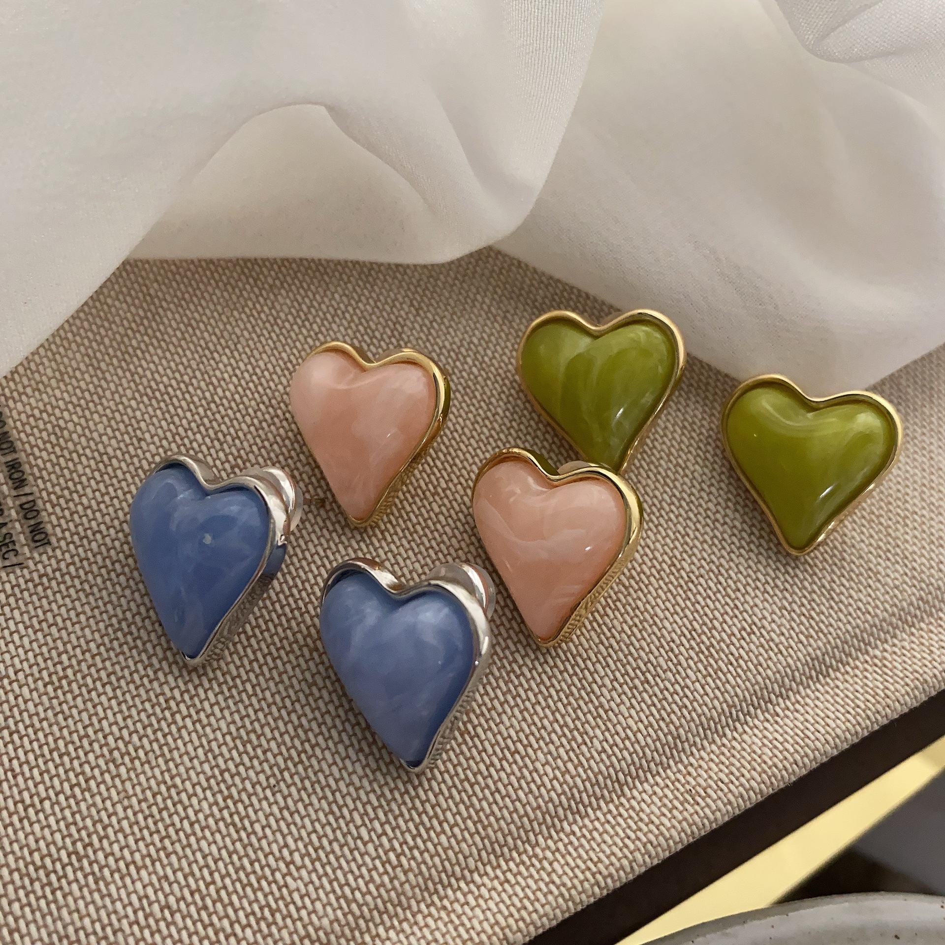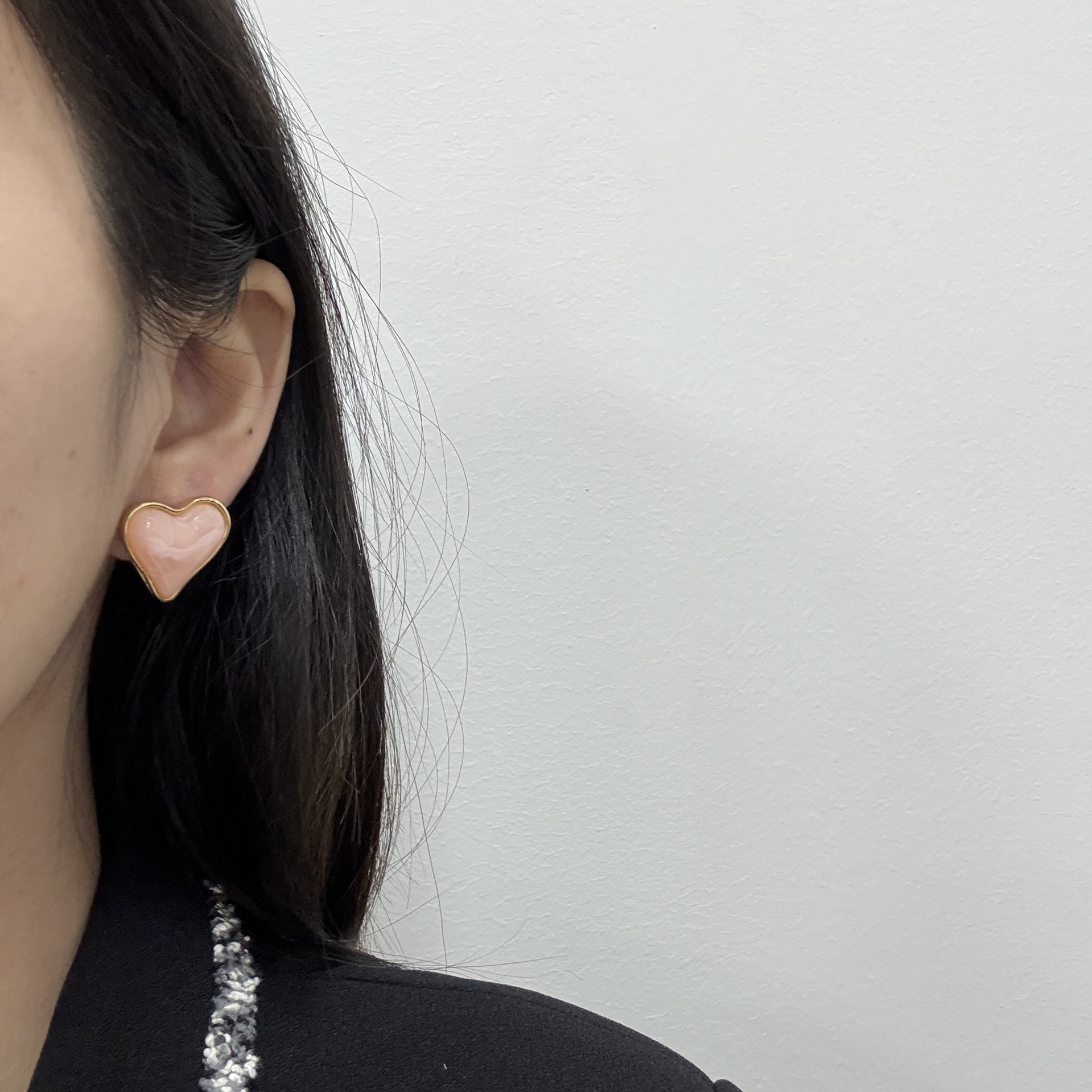 复古果冻树脂爱心耳钉女甜美可爱少女桃心耳环小众设计感蜜桃耳饰