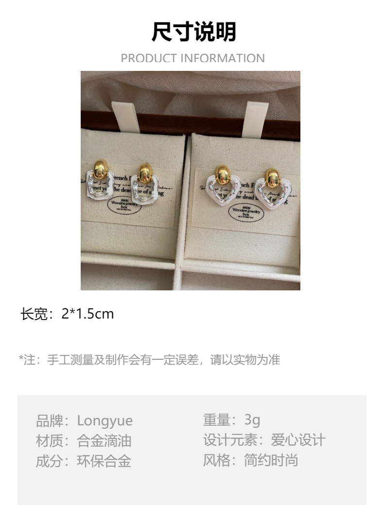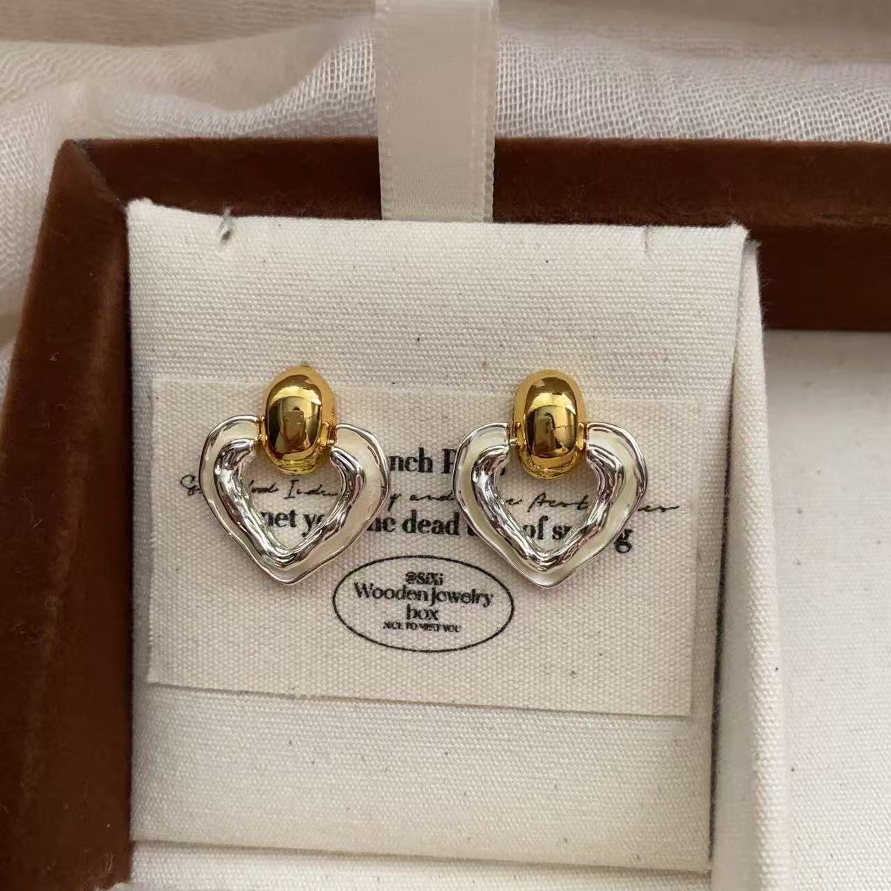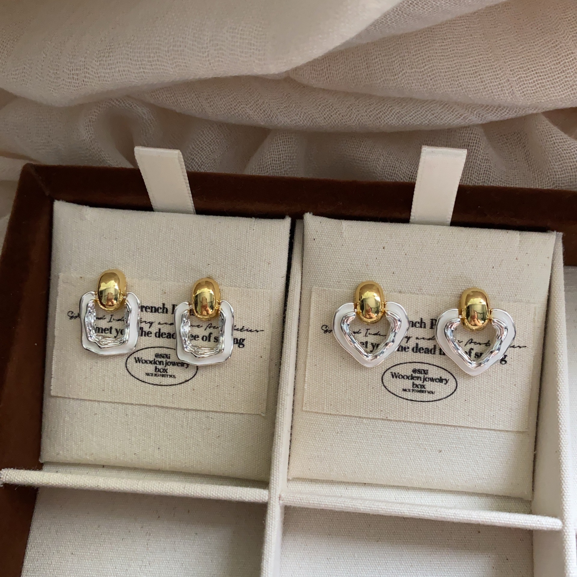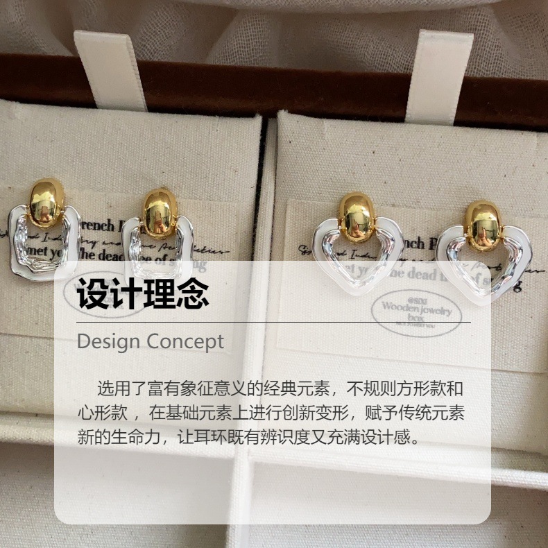 新款轻奢精致简洁大方爱心方形耳环极简奢华风小众设计气质女耳钉