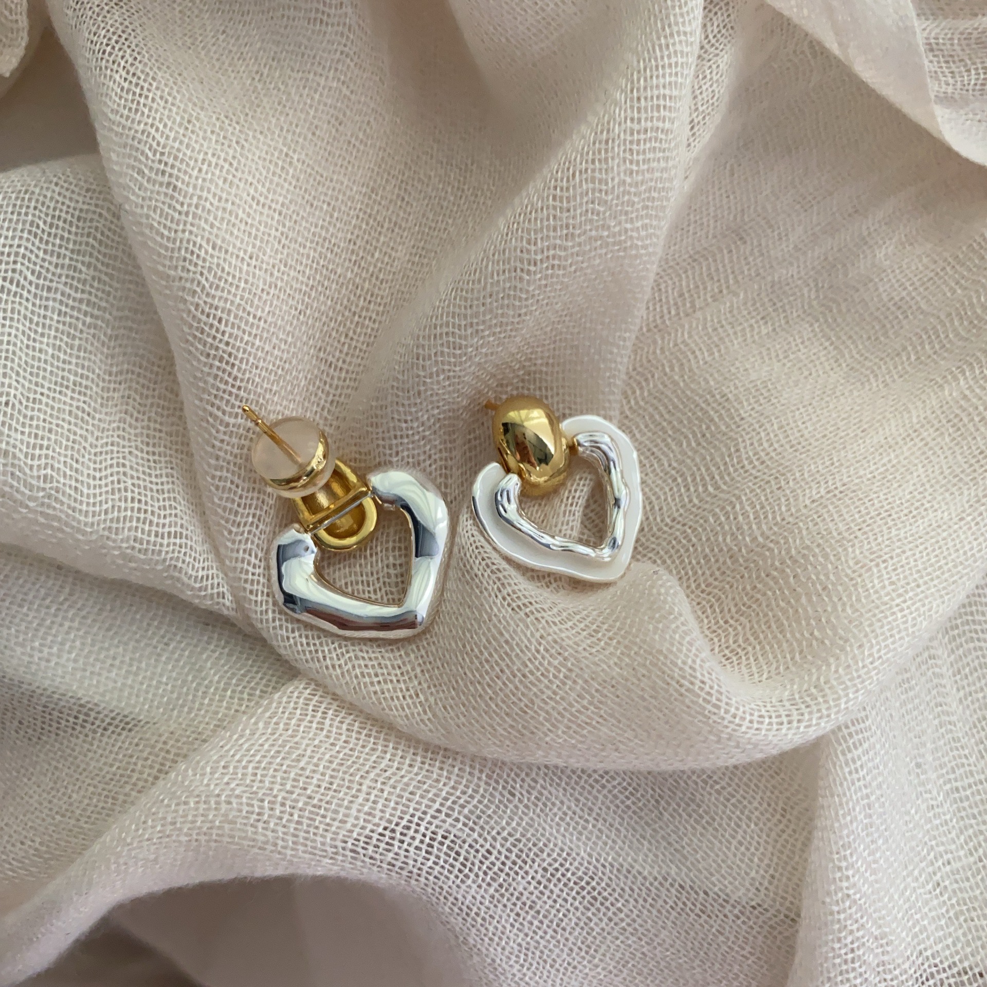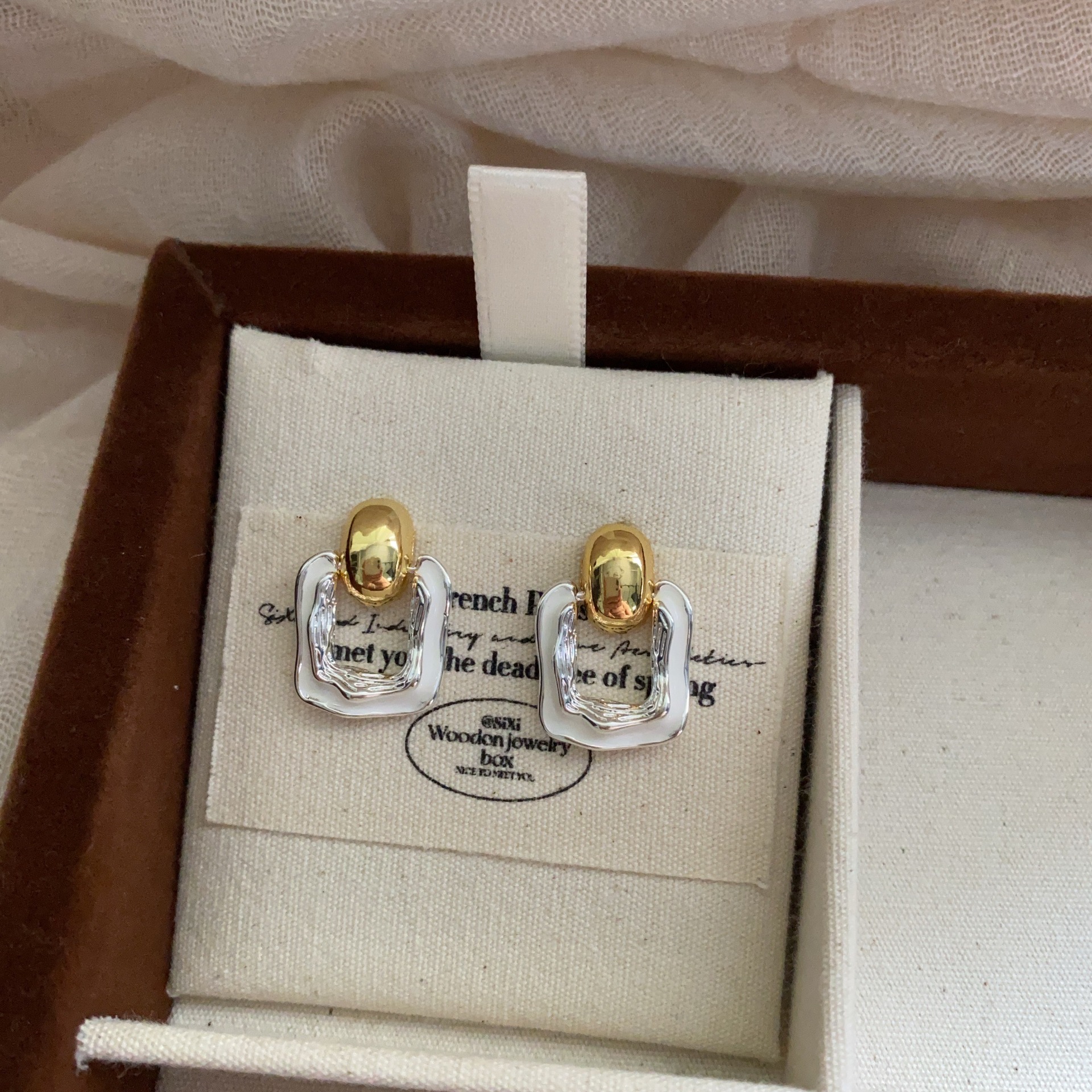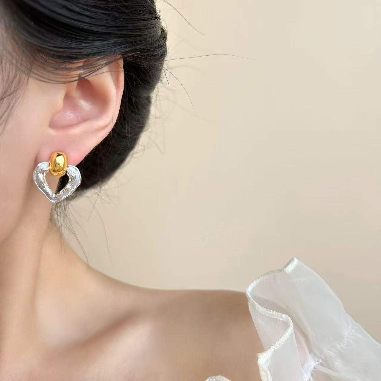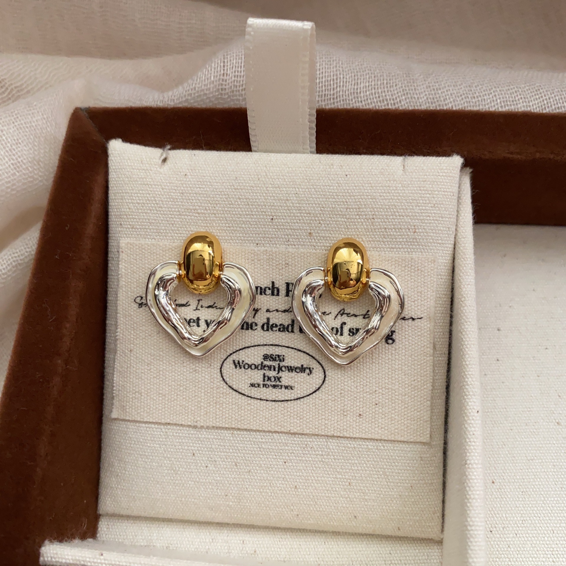新款轻奢精致简洁大方爱心方形耳环极简奢华风小众设计气质女耳钉