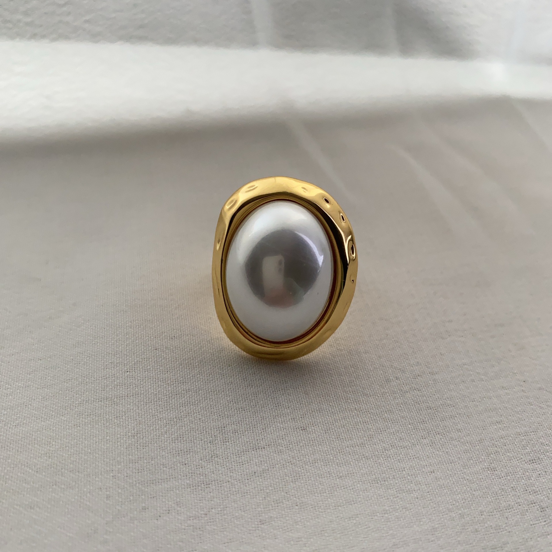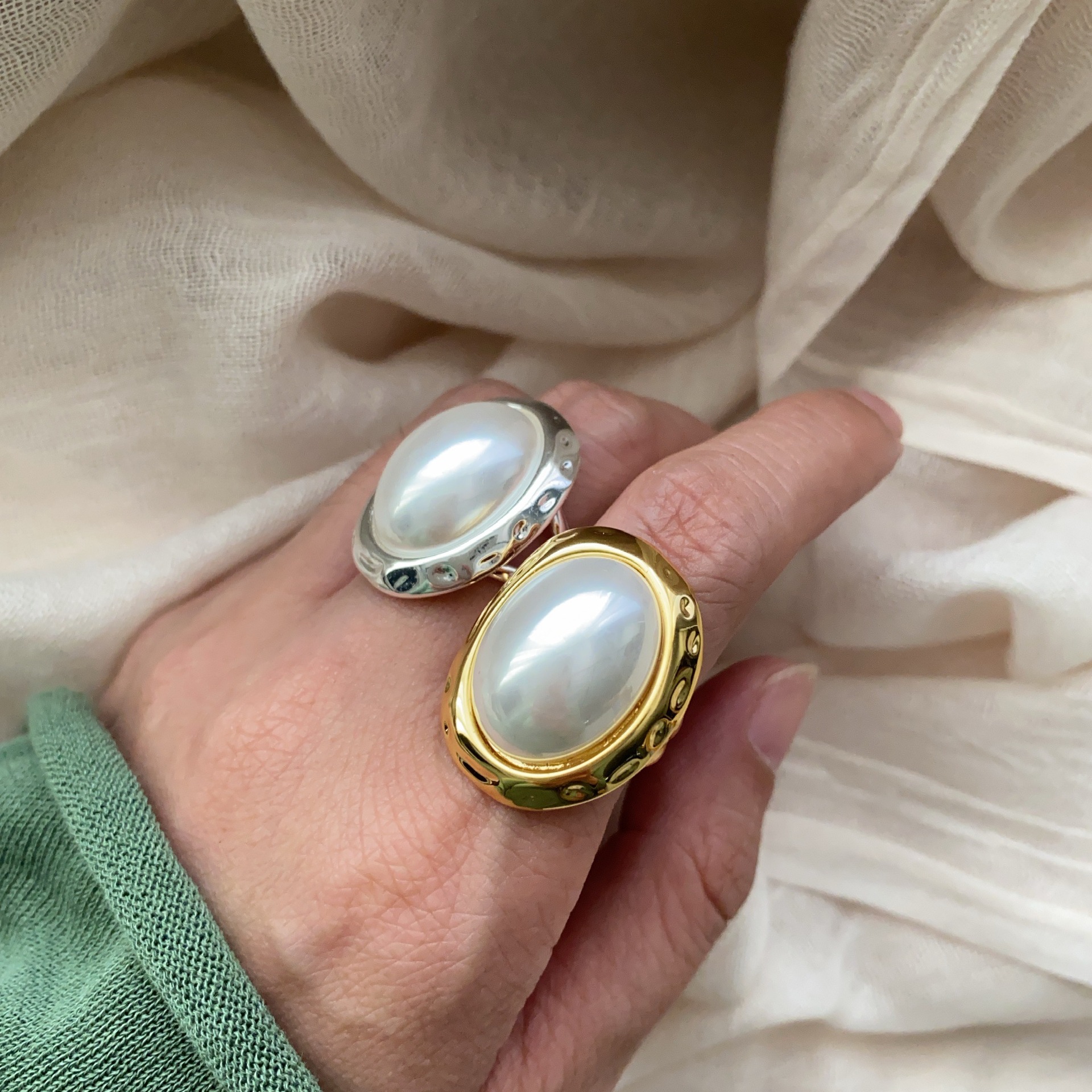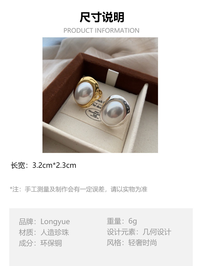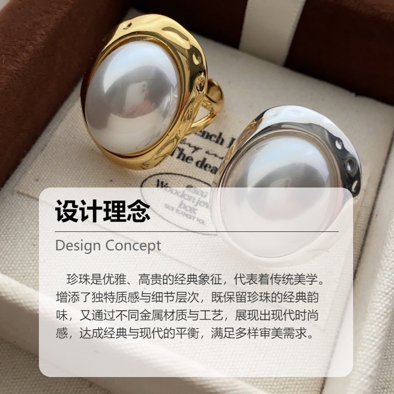 珍珠戒指香风金银两色圆形珍珠椭圆戒指通勤小轻奢气质百搭强光女
