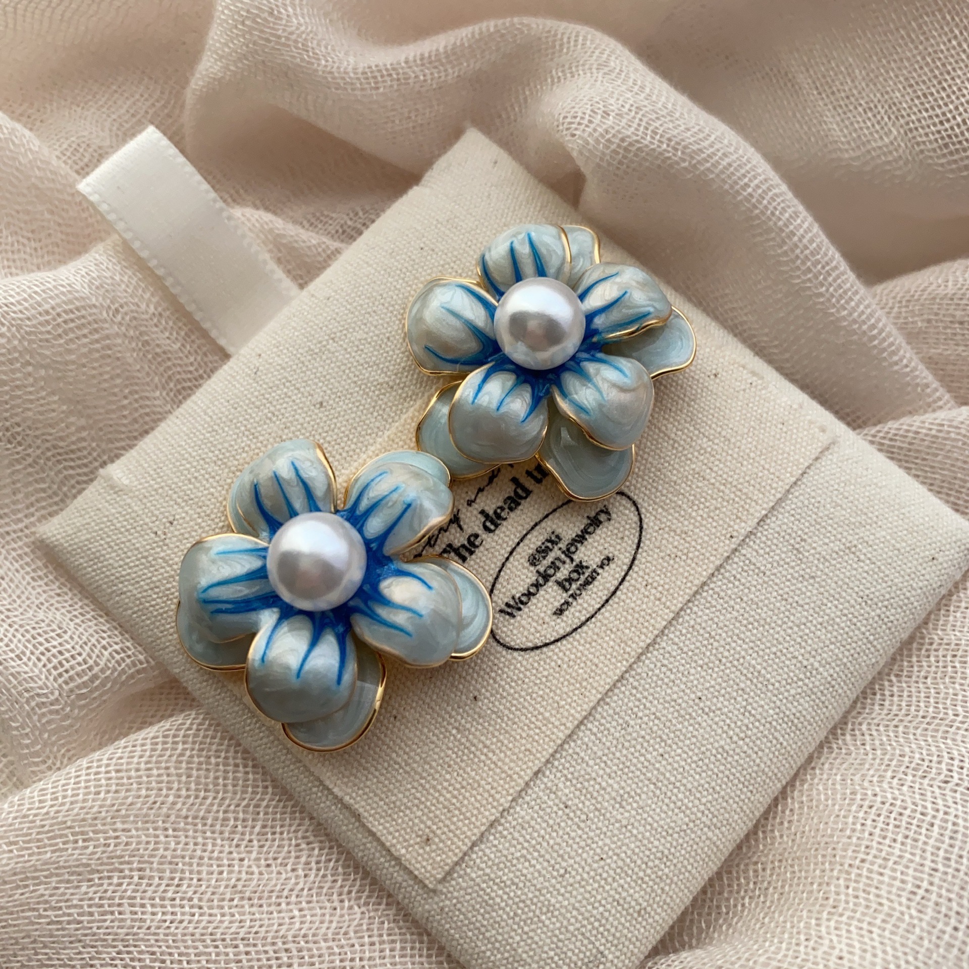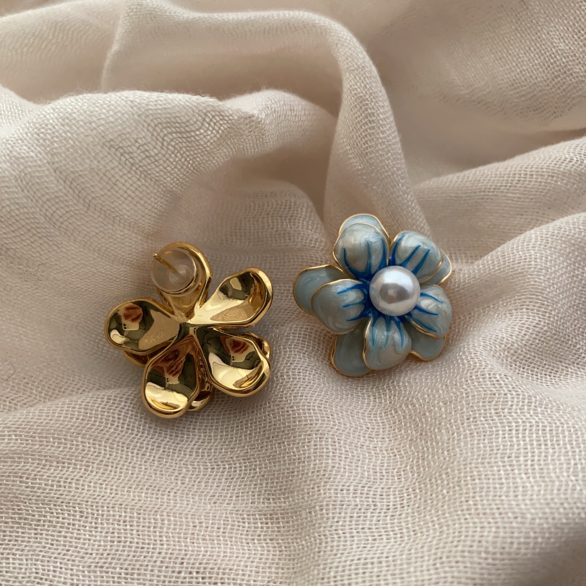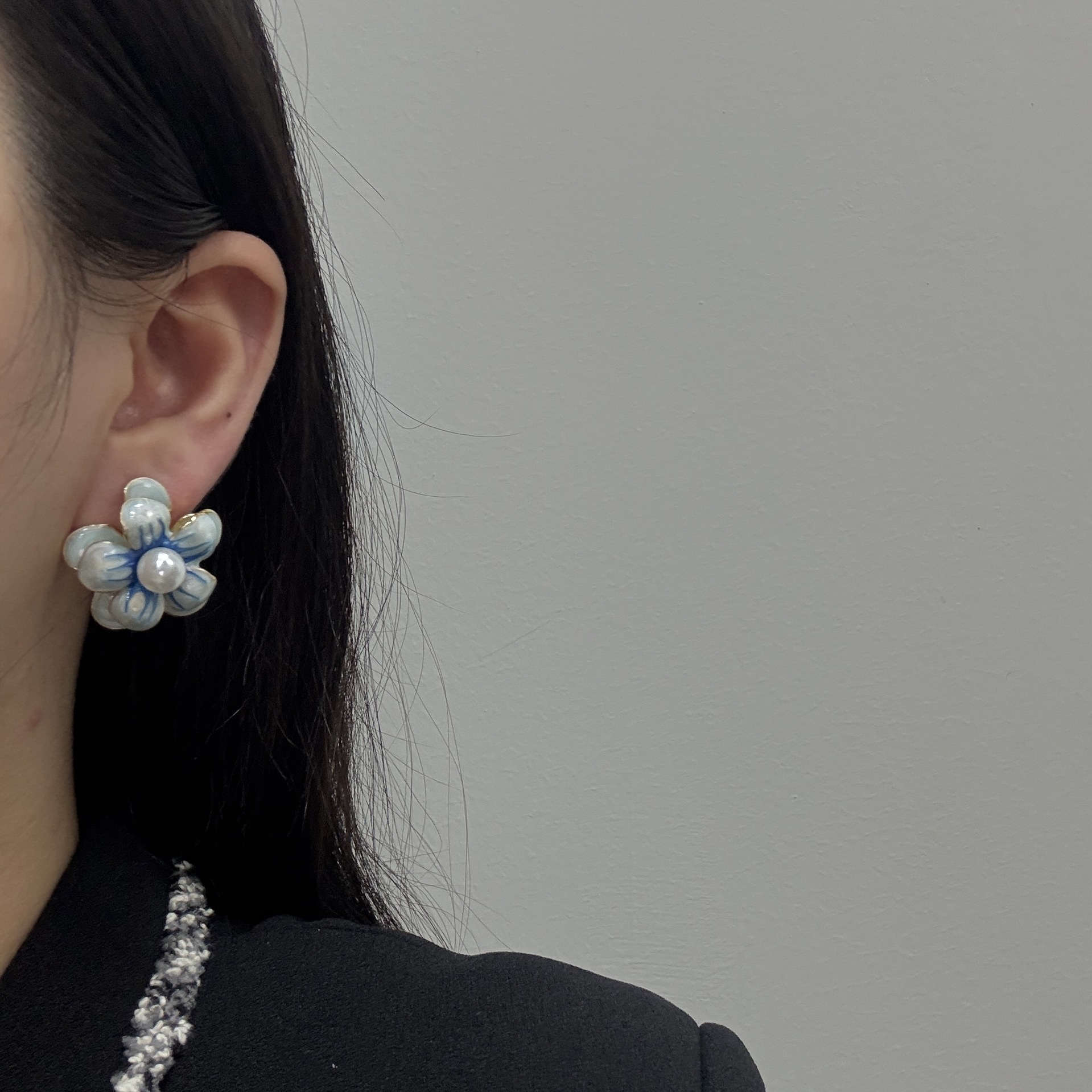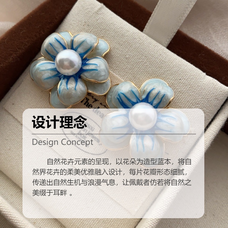 花朵耳环法式高级感珐琅滴釉花朵珍珠耳钉女百搭小众复古耳环温柔