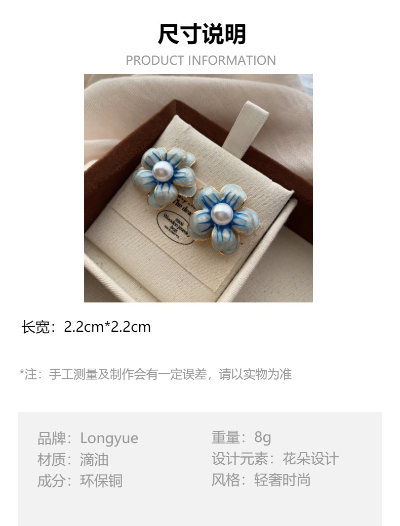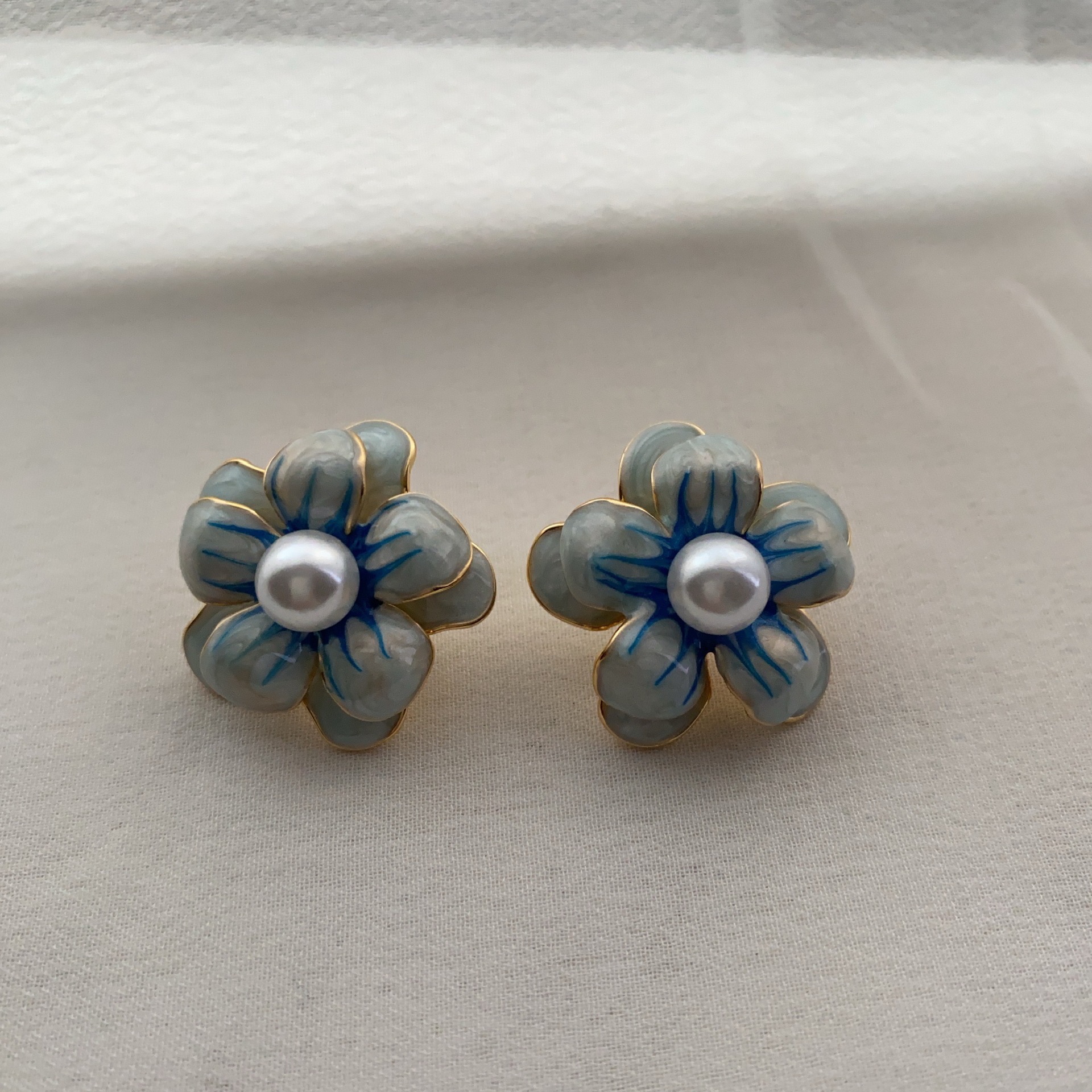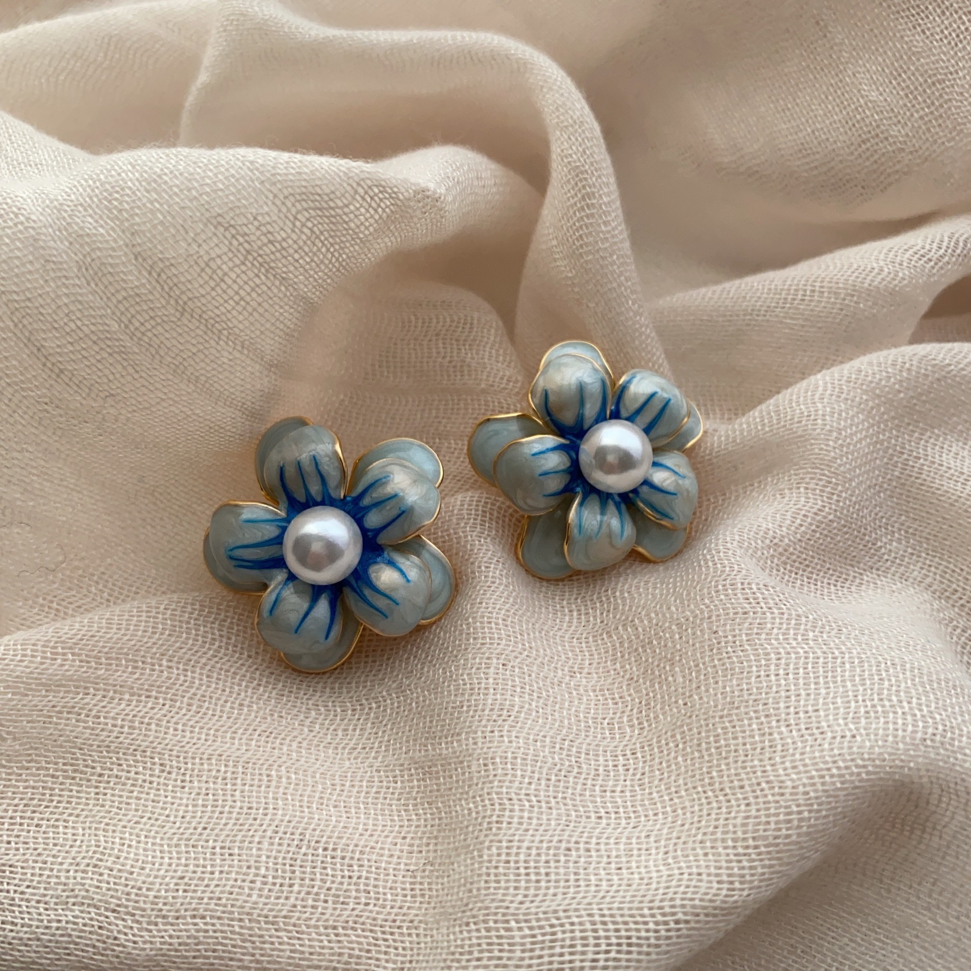 花朵耳环法式高级感珐琅滴釉花朵珍珠耳钉女百搭小众复古耳环温柔