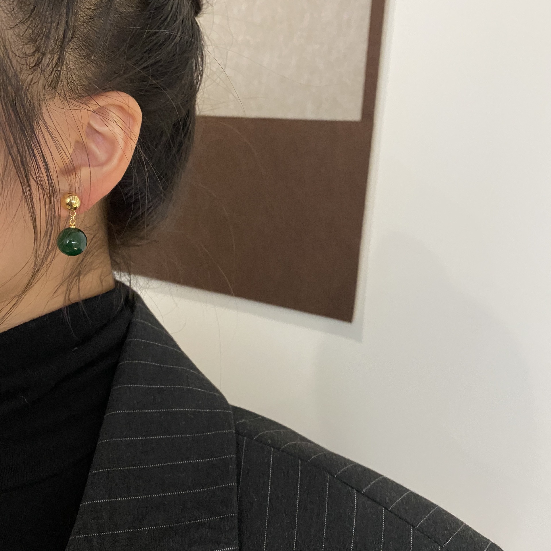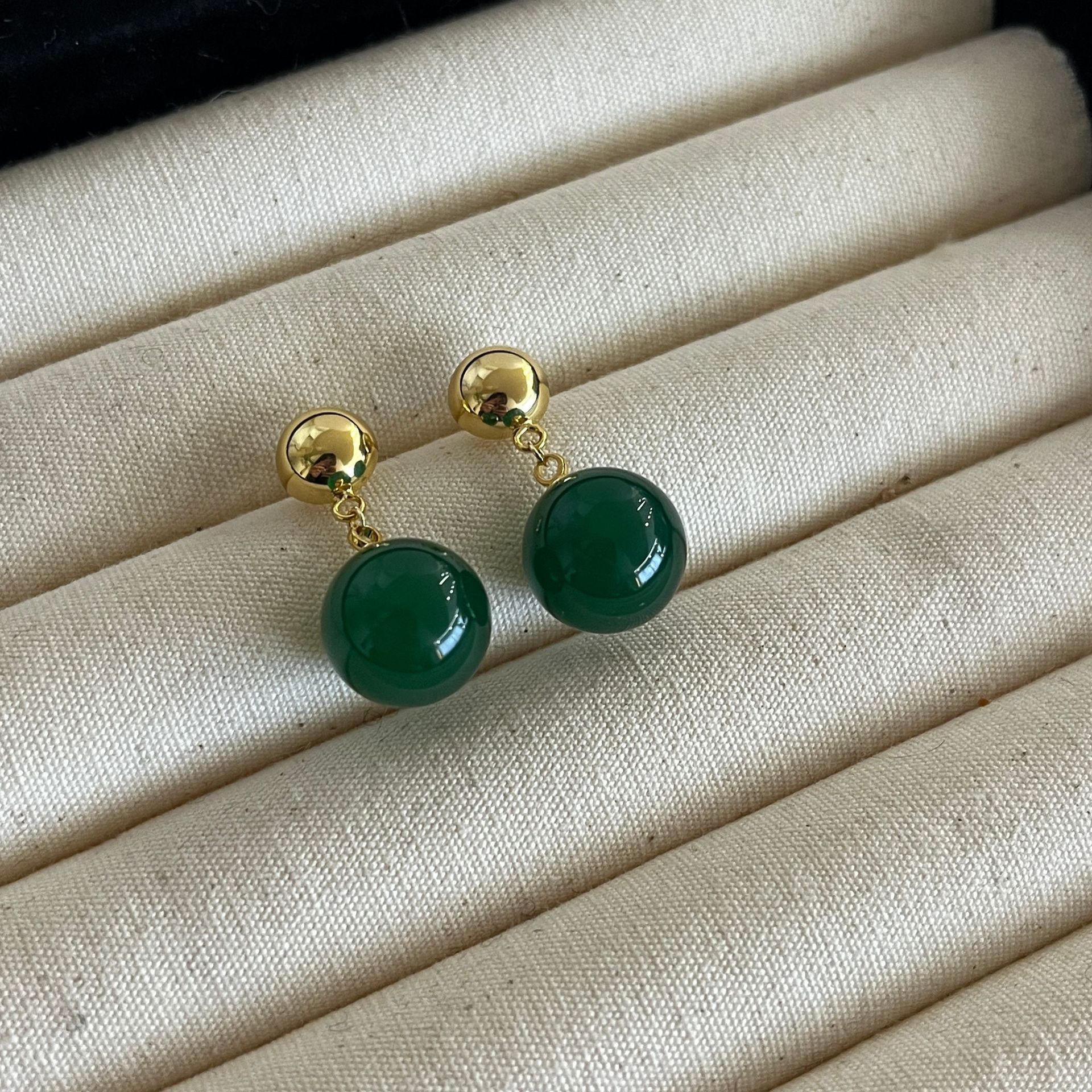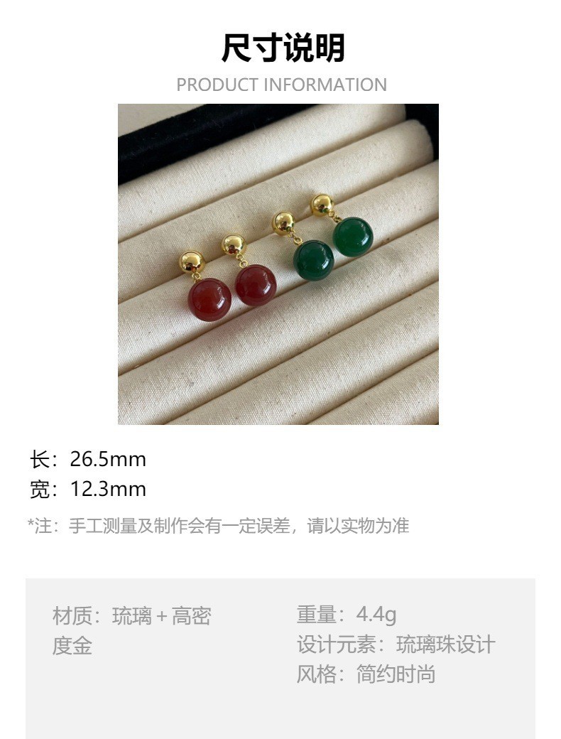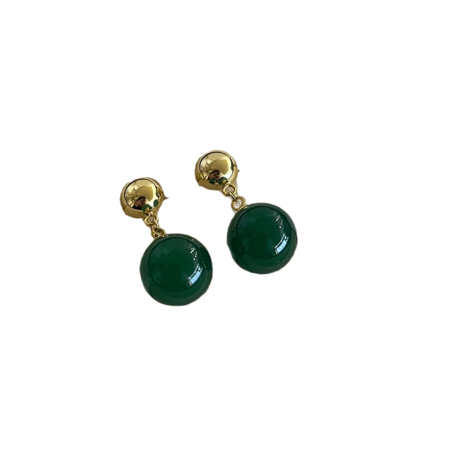 新中式翡翠色系圆形水滴气质耳环高级感耳饰小众设计女绿色玉髓