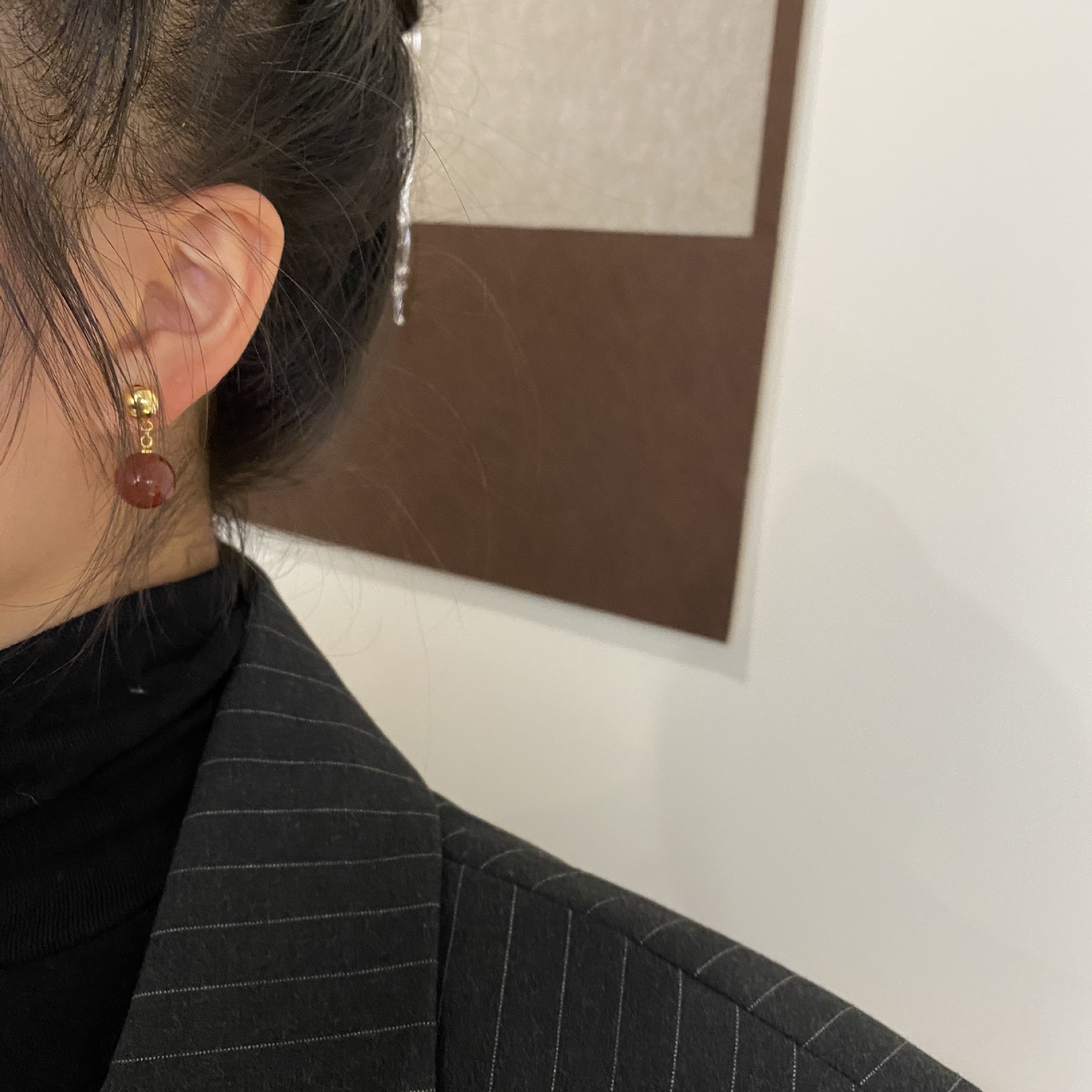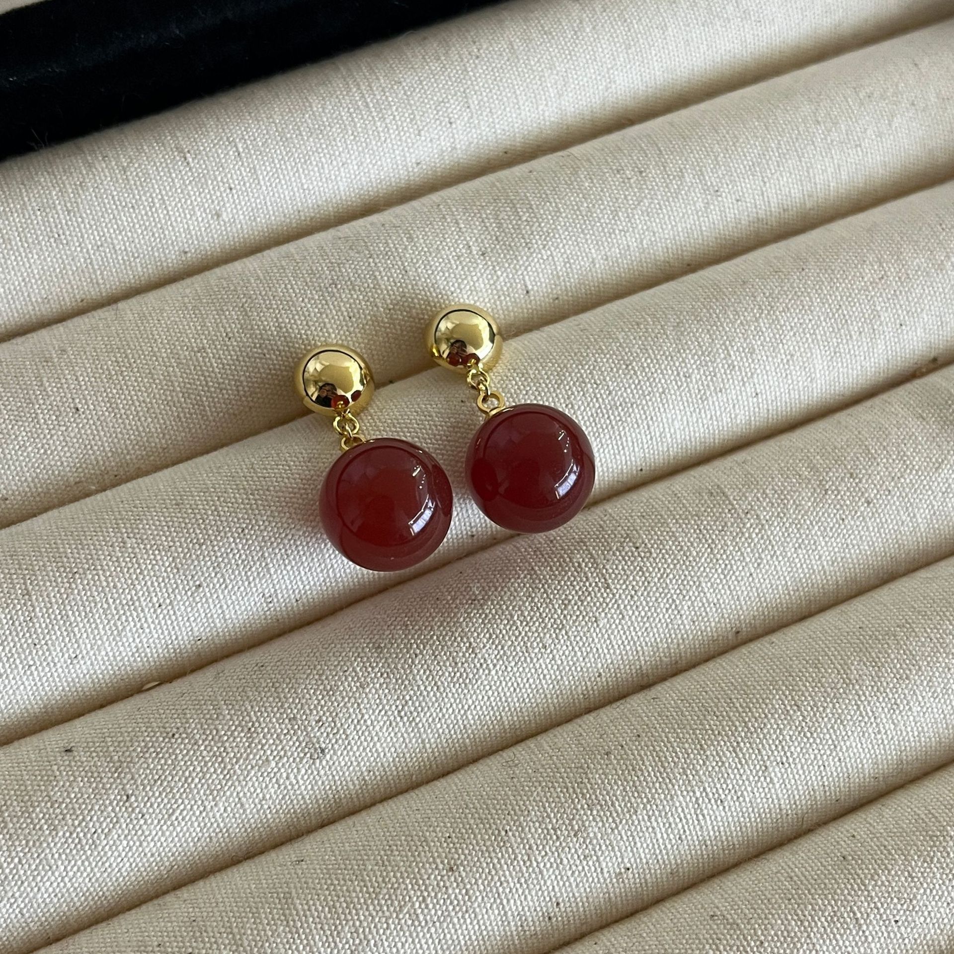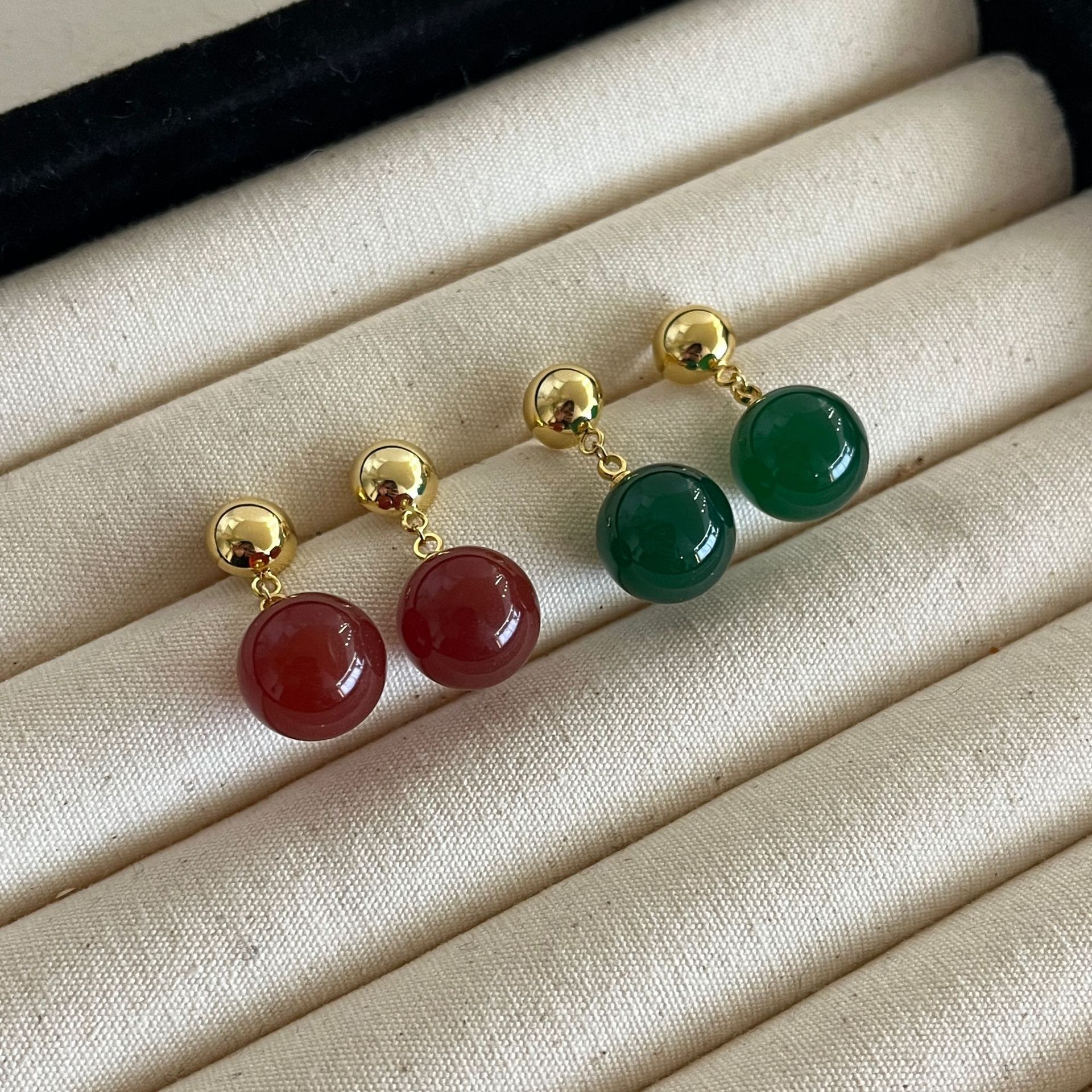 新中式翡翠色系圆形水滴气质耳环高级感耳饰小众设计女绿色玉髓