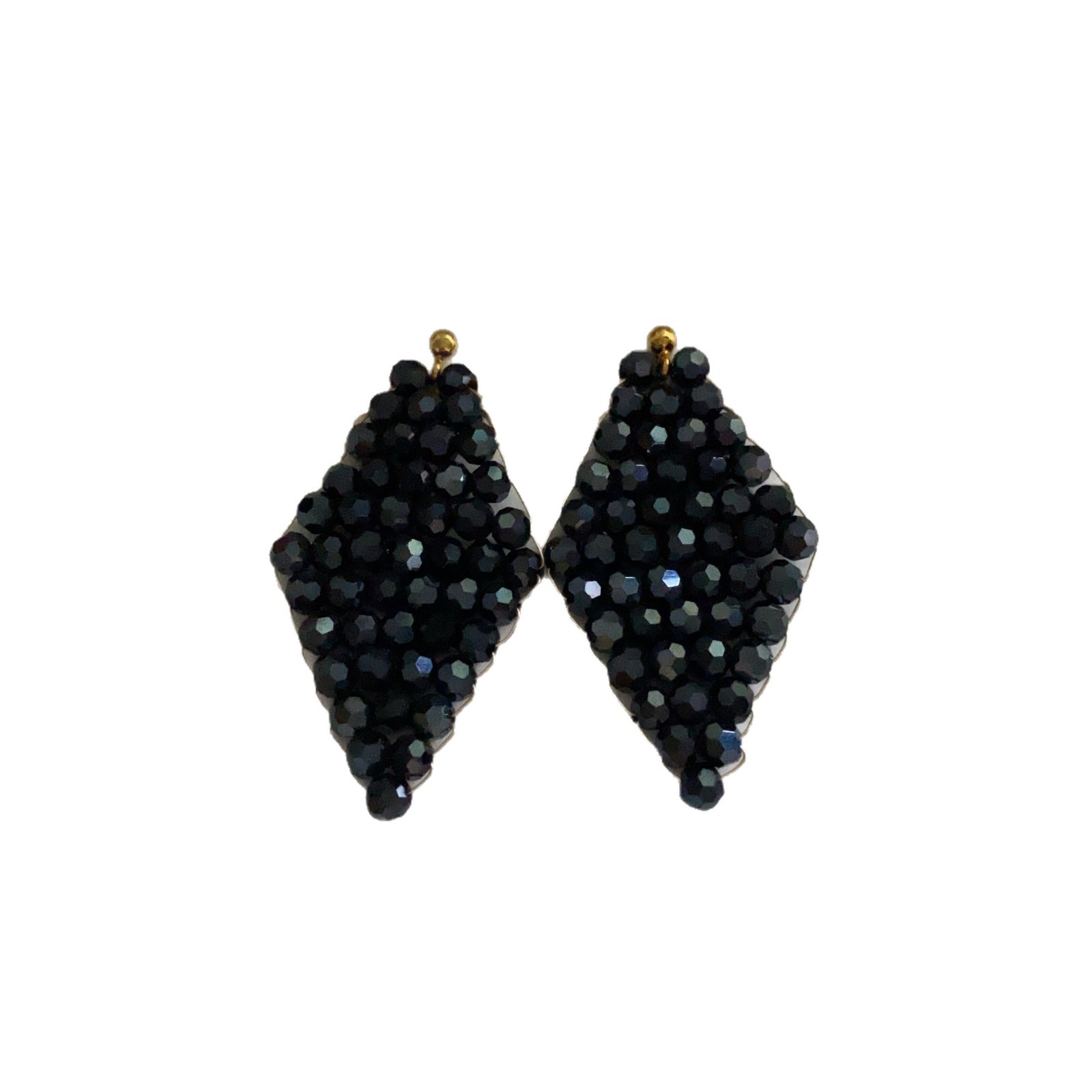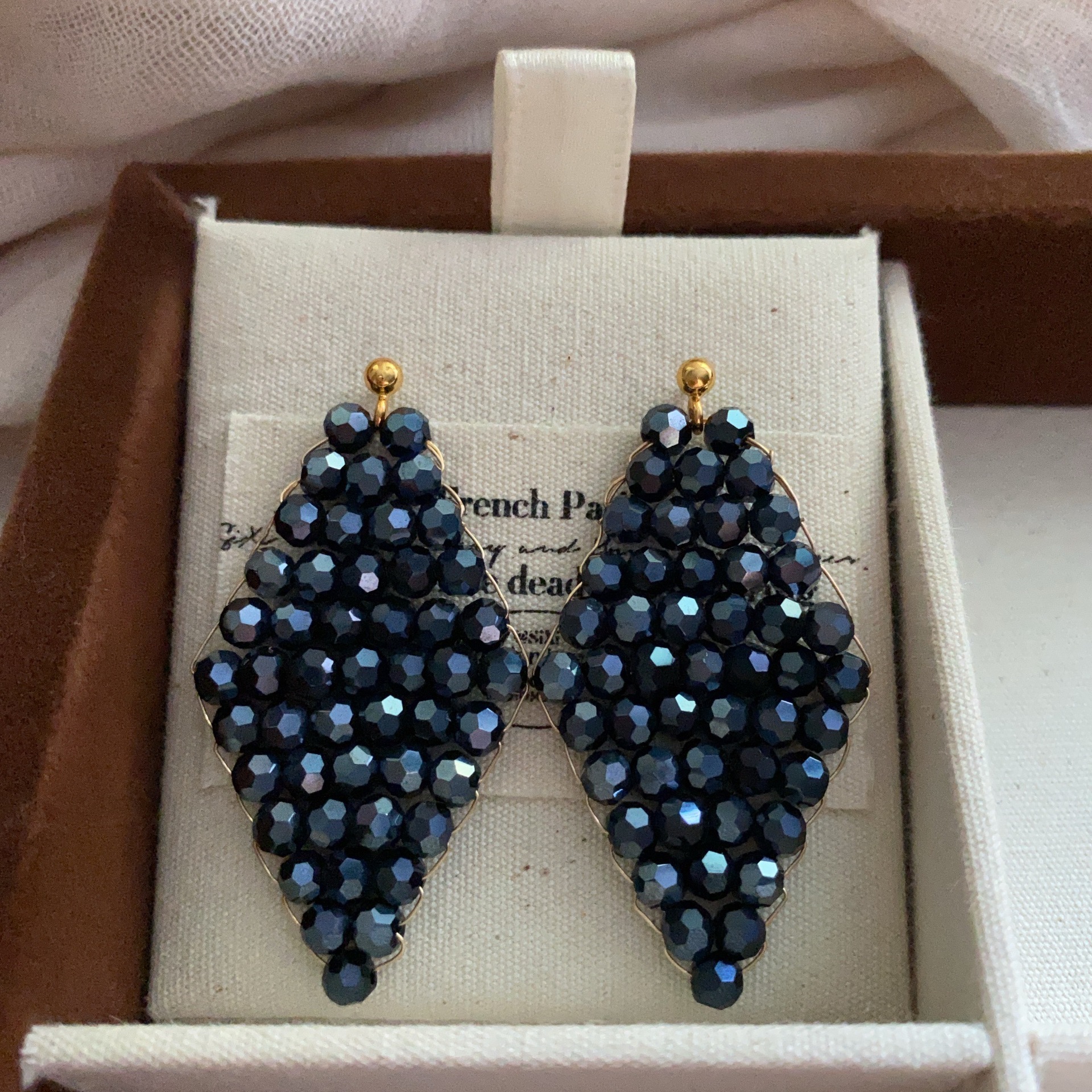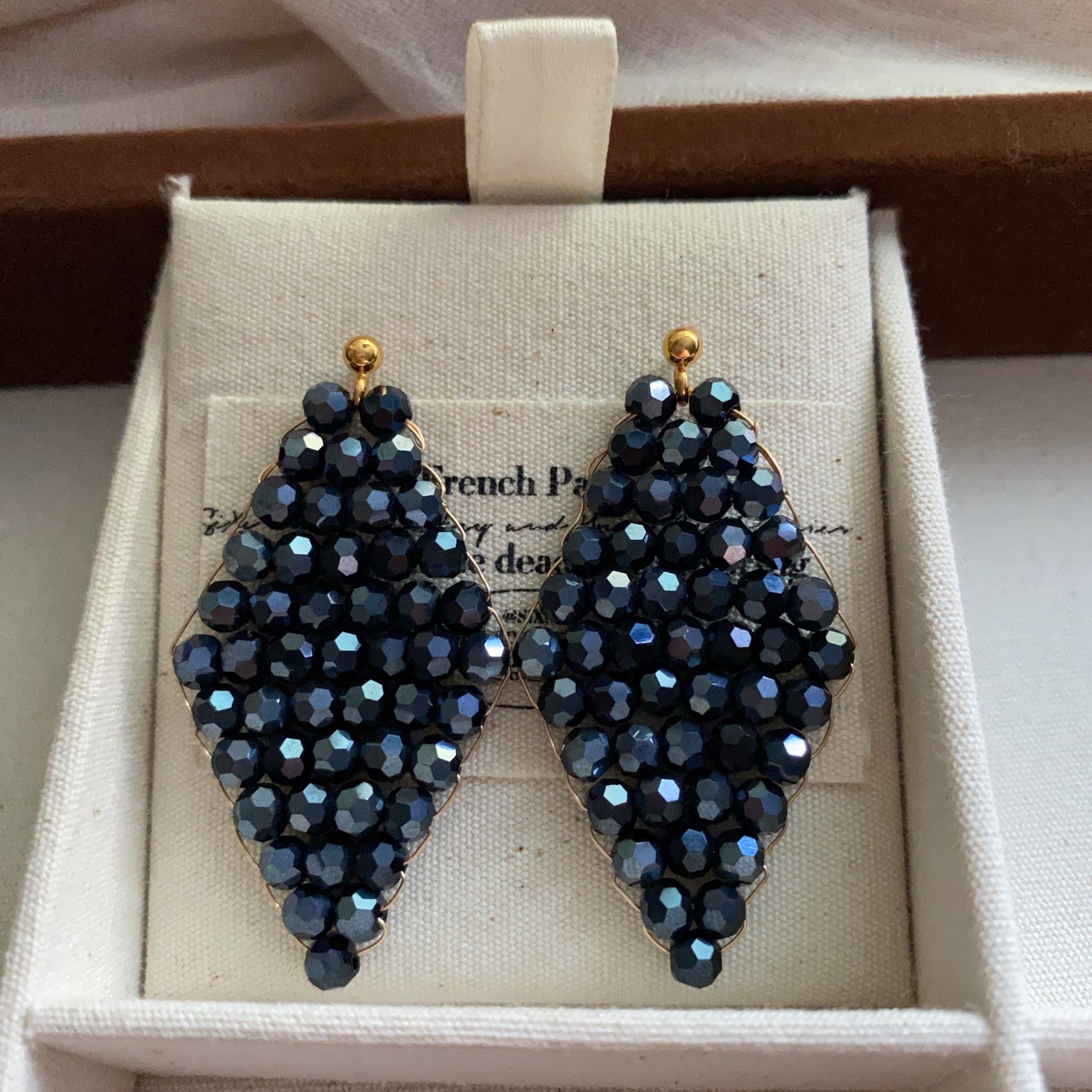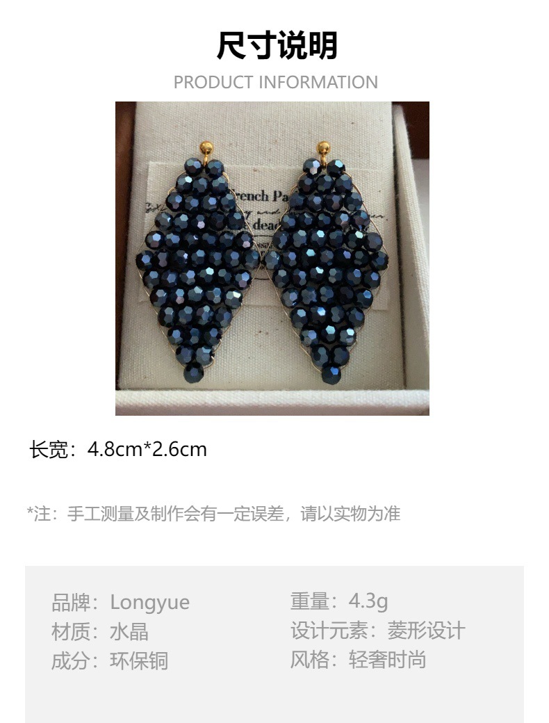 菱形手工串珠蓝色晶晶耳钉耳环轻奢精致小众时尚设计闪亮优雅耳饰