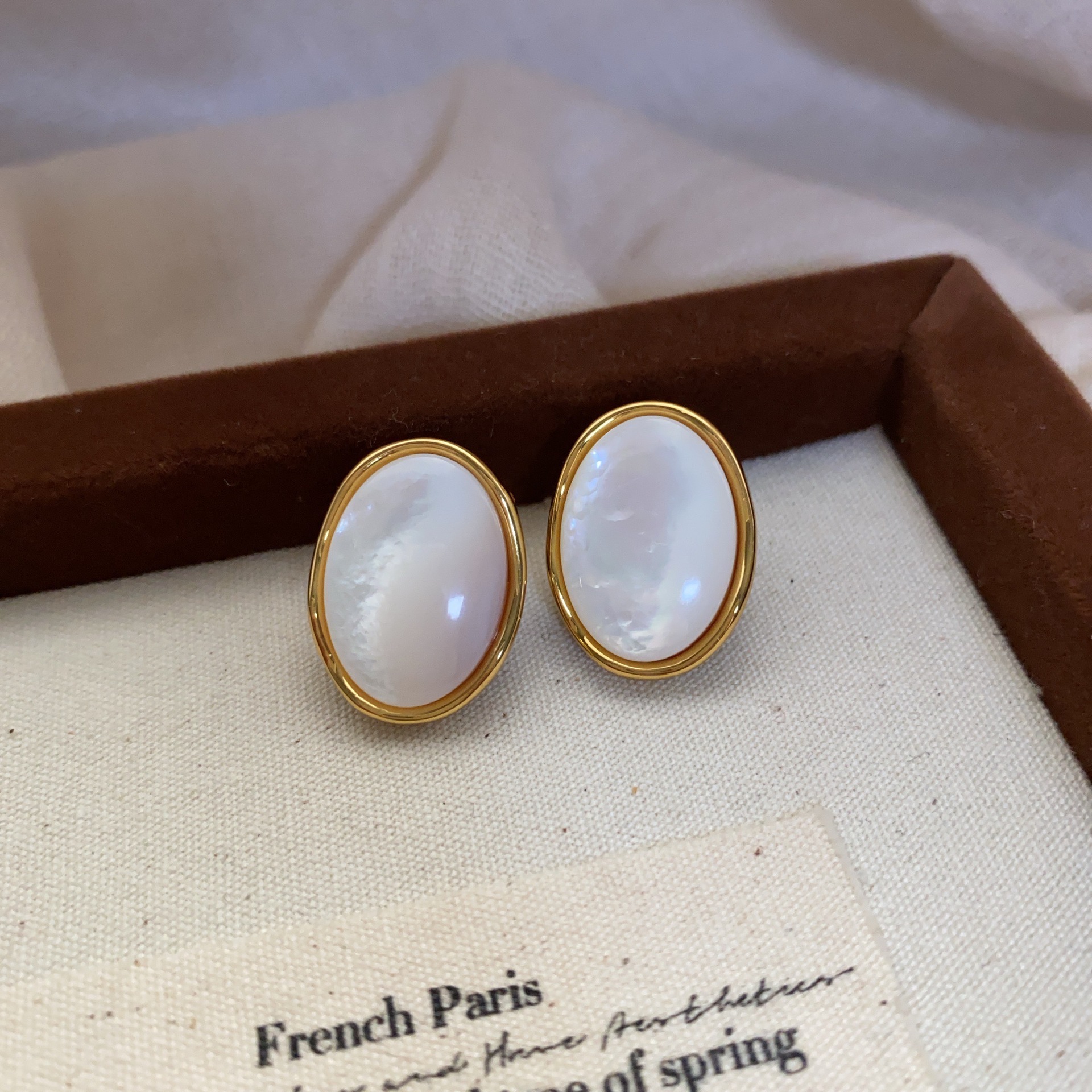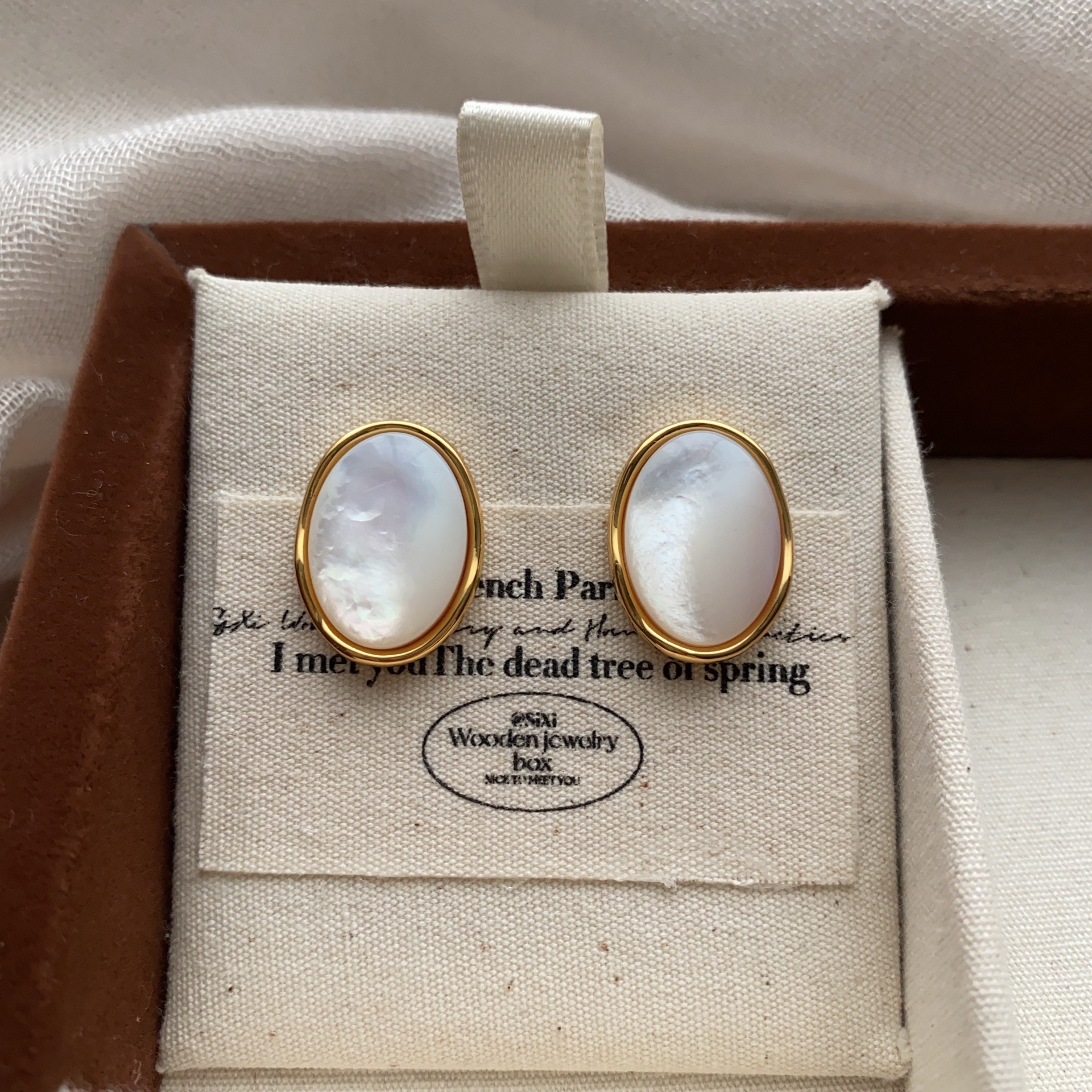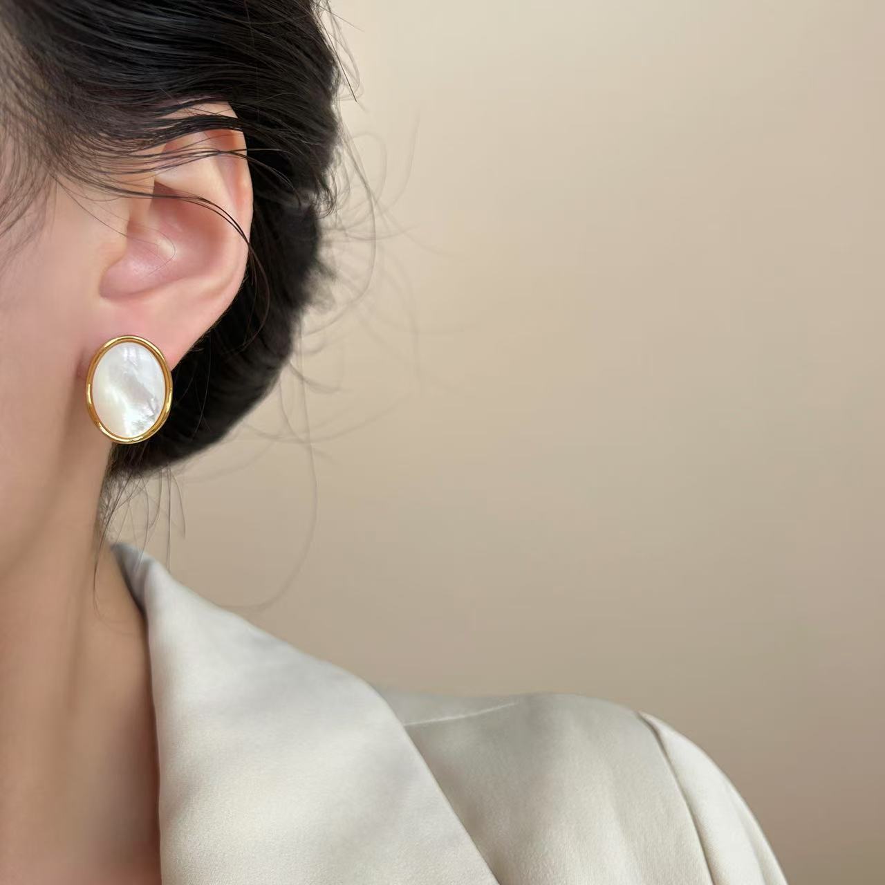 椭圆形天然贝母耳钉耳饰简约个性精致百搭耳钉时尚气质款简洁大方
