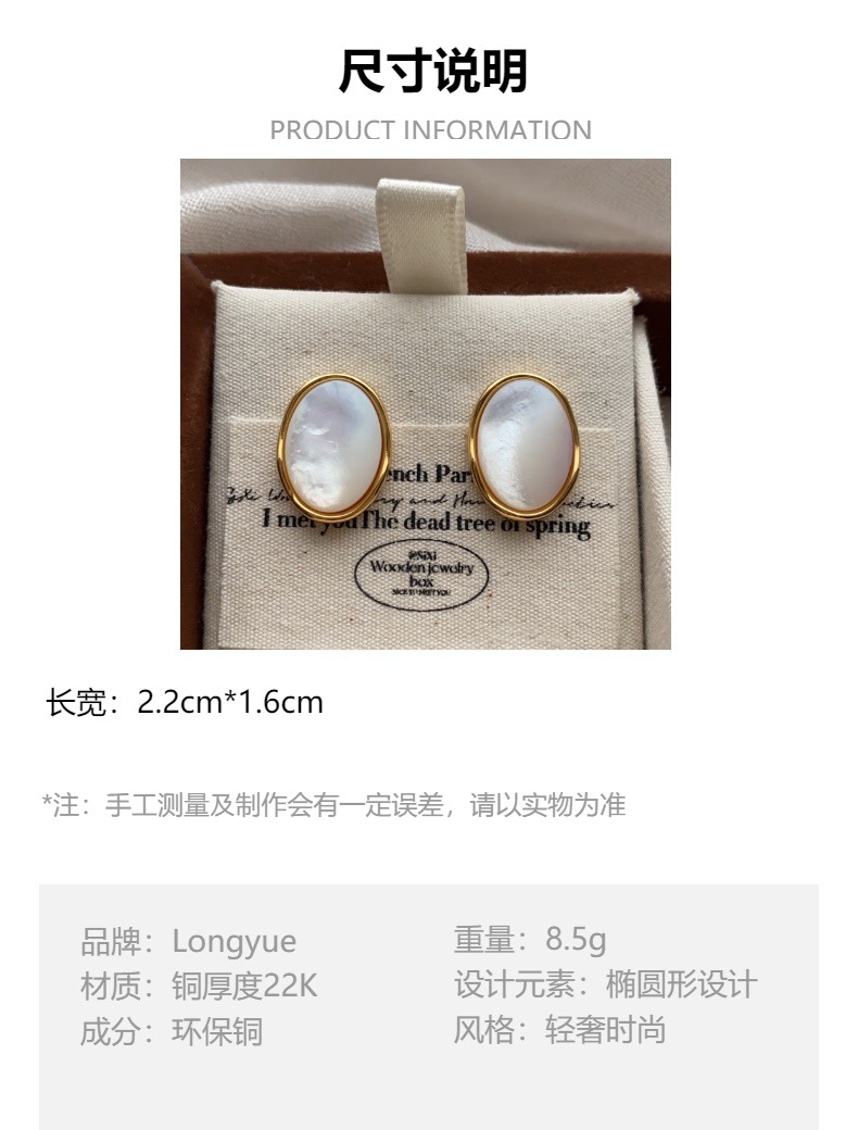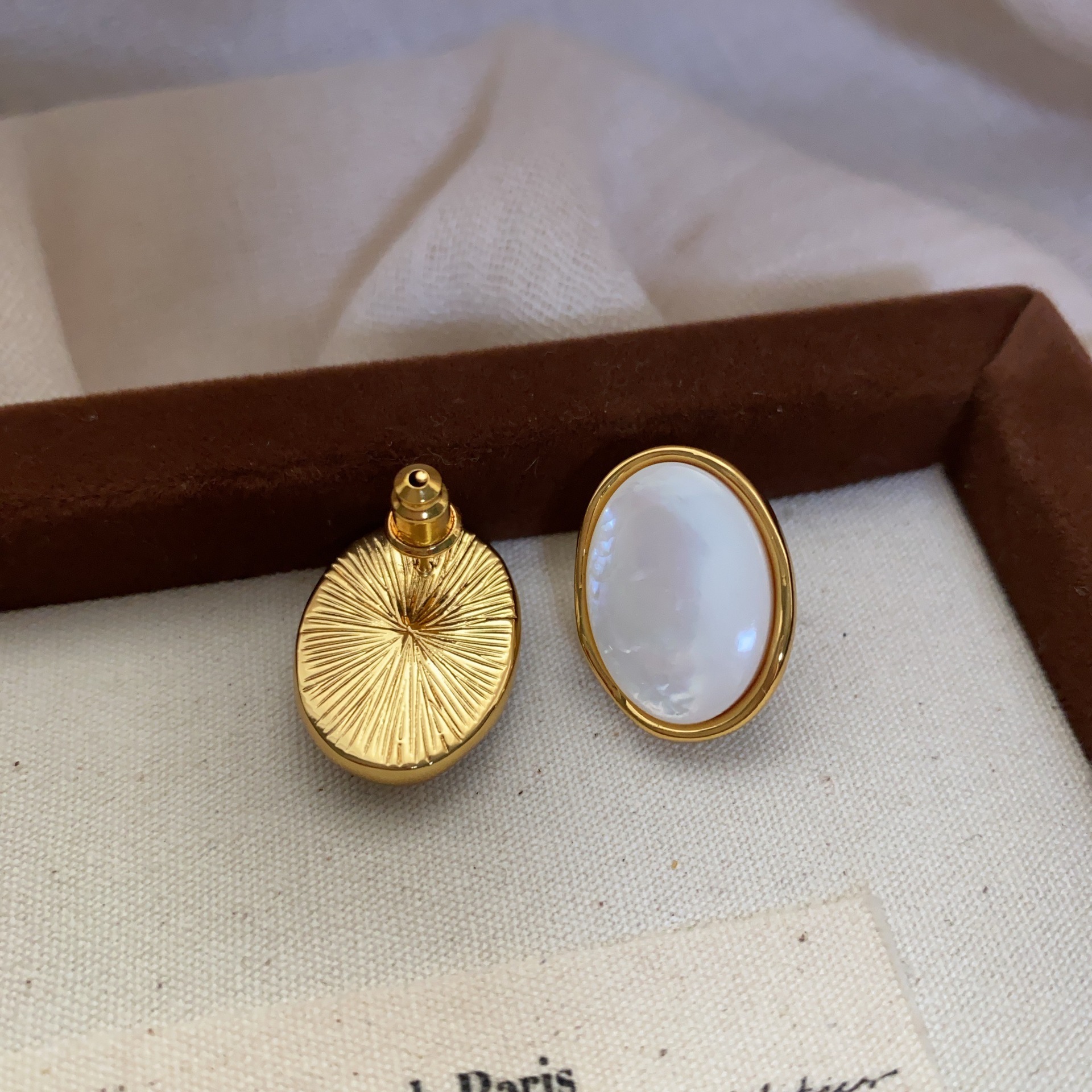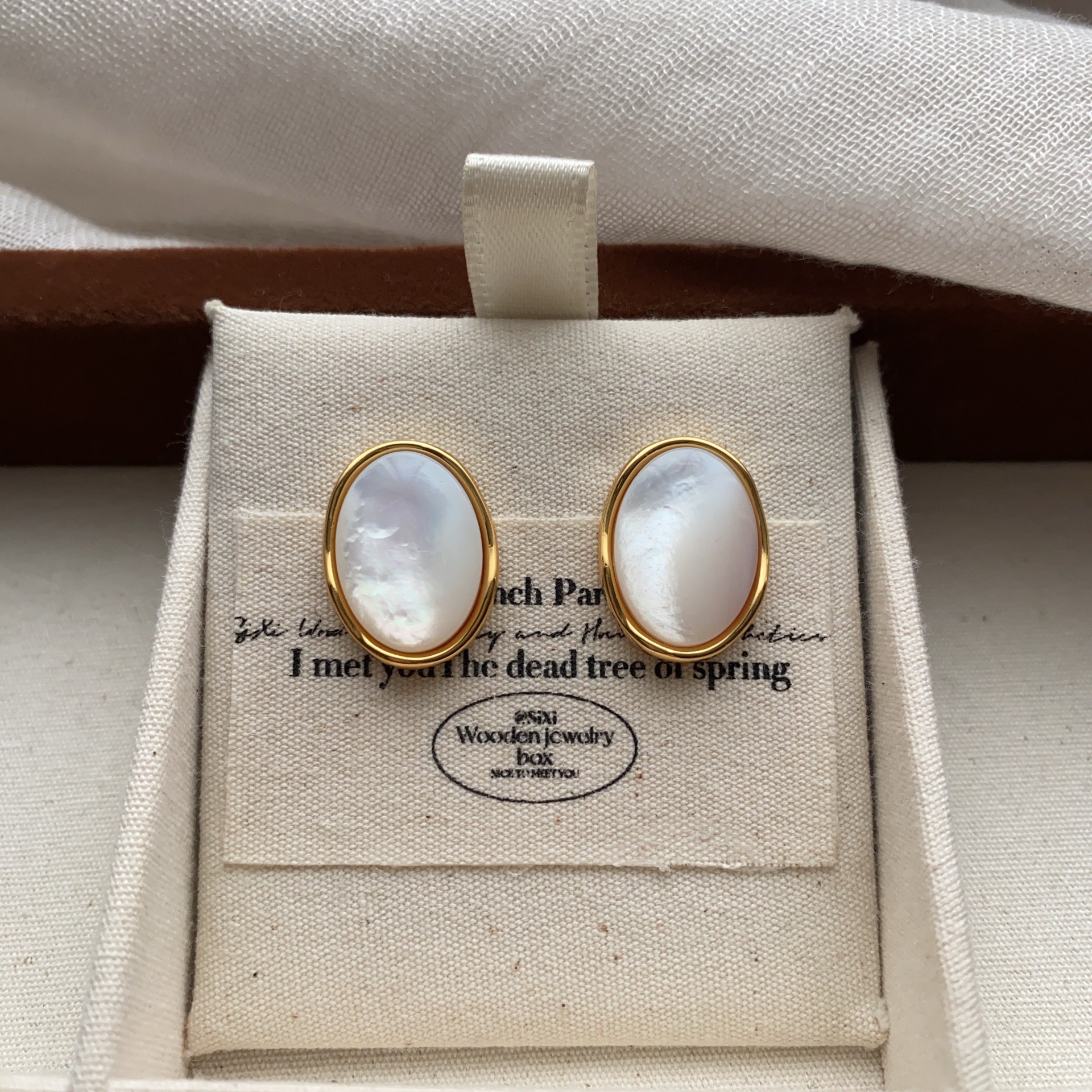 椭圆形天然贝母耳钉耳饰简约个性精致百搭耳钉时尚气质款简洁大方