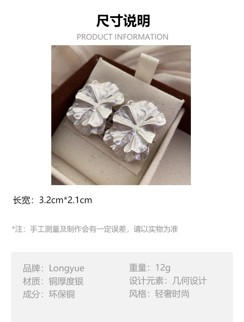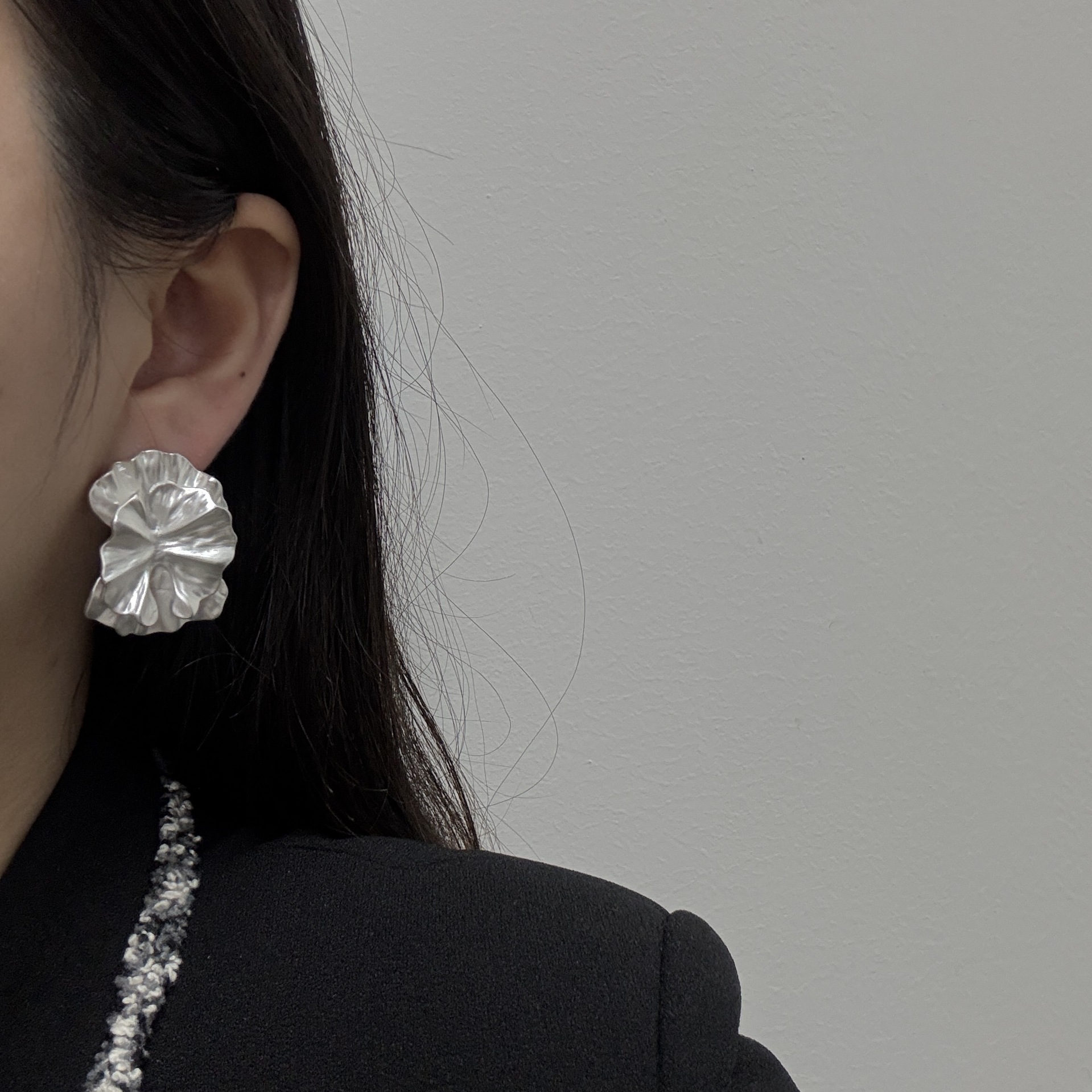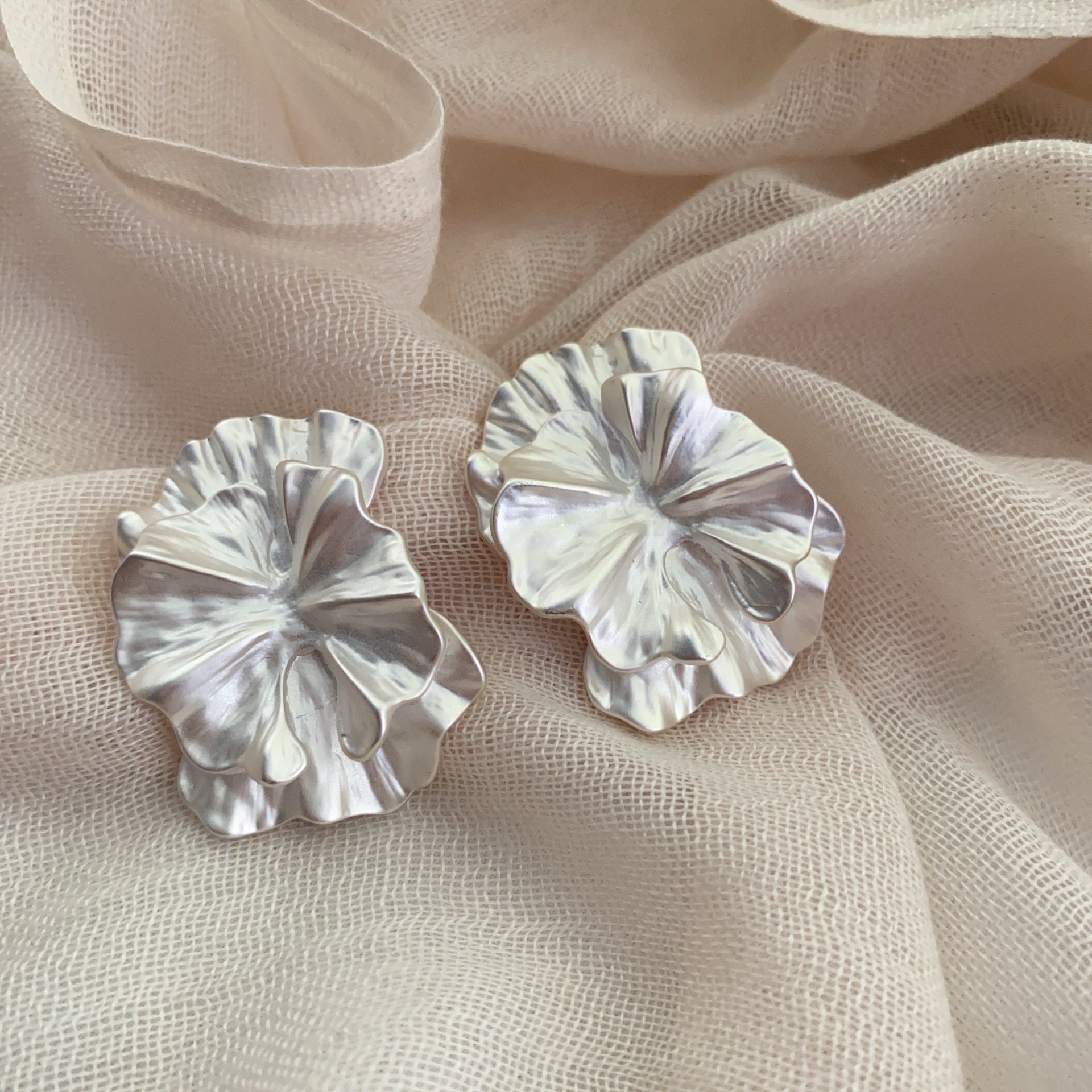 双层花奔耳环女小众设计高级感银色花掰耳钉轻奢时尚夸张气质耳饰