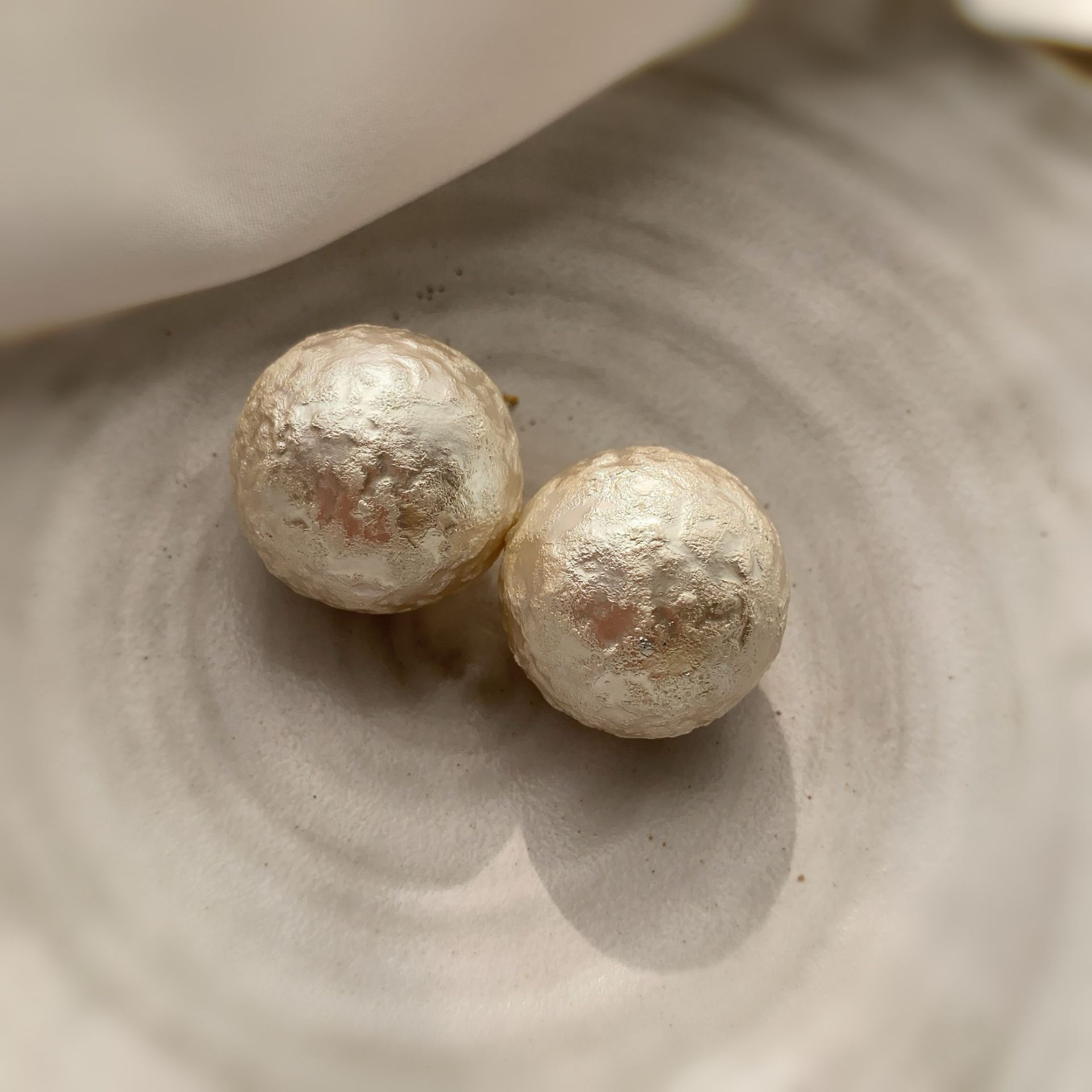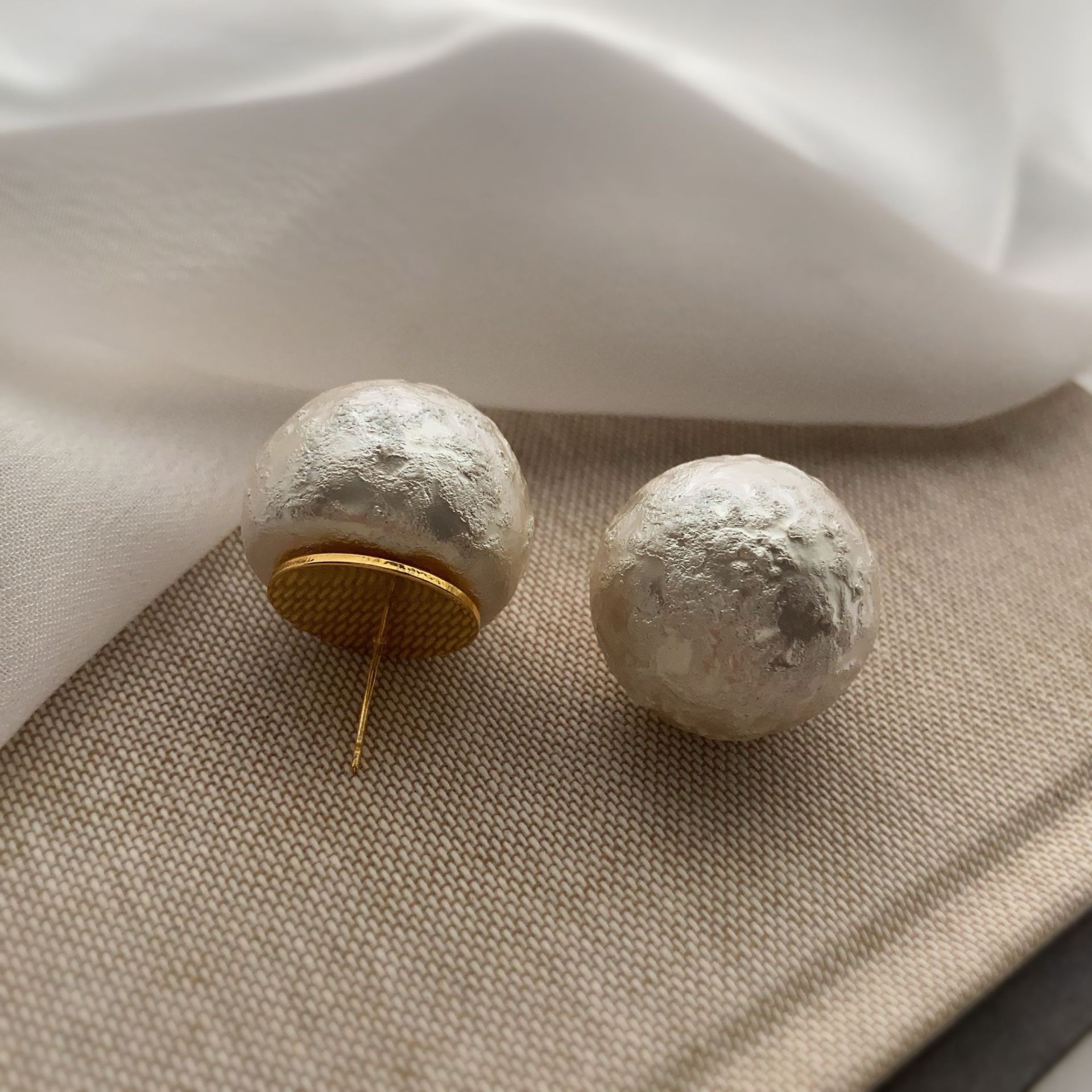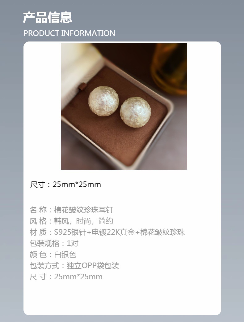 秋冬新款棉花皱纹珍珠耳钉网红爆款镶钻花朵真金电镀时尚百搭耳环