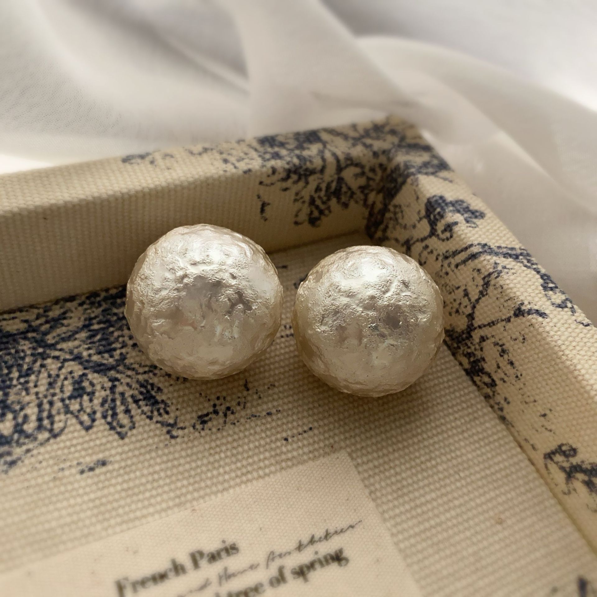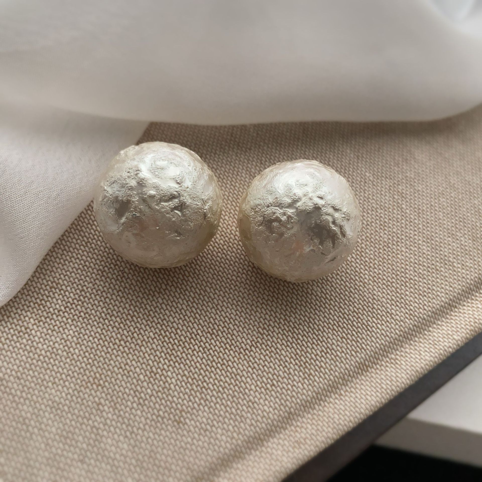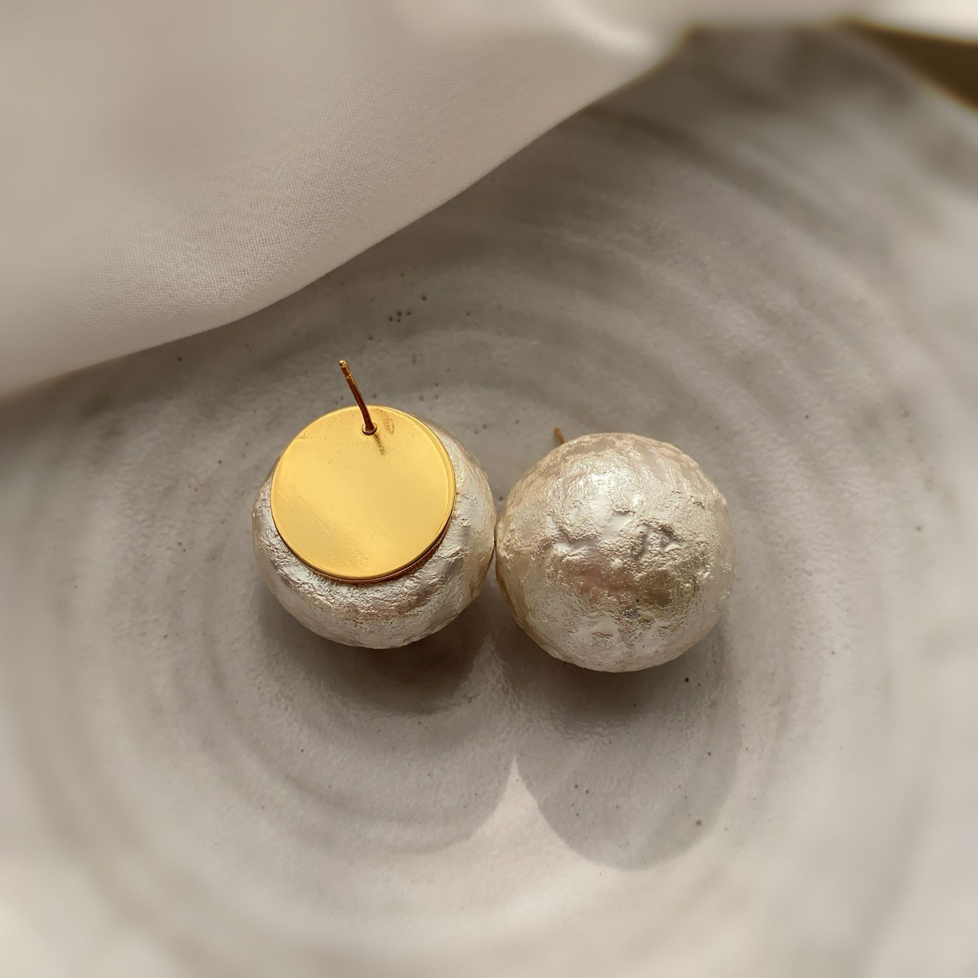 秋冬新款棉花皱纹珍珠耳钉网红爆款镶钻花朵真金电镀时尚百搭耳环