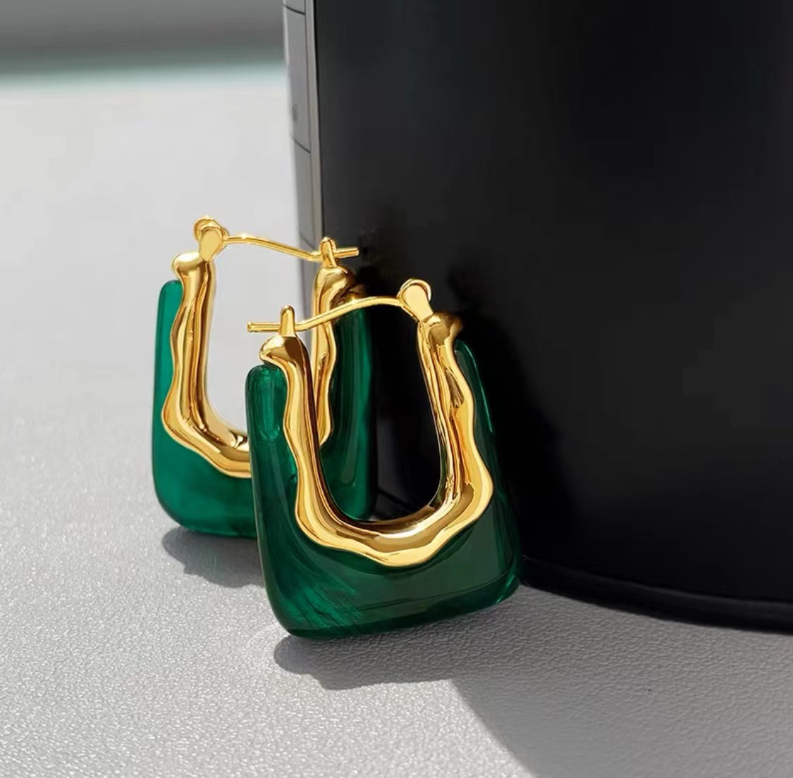 高冷范冷性风复古绿色耳饰耳圈耳环女轻奢小众高级感百搭气质耳钉