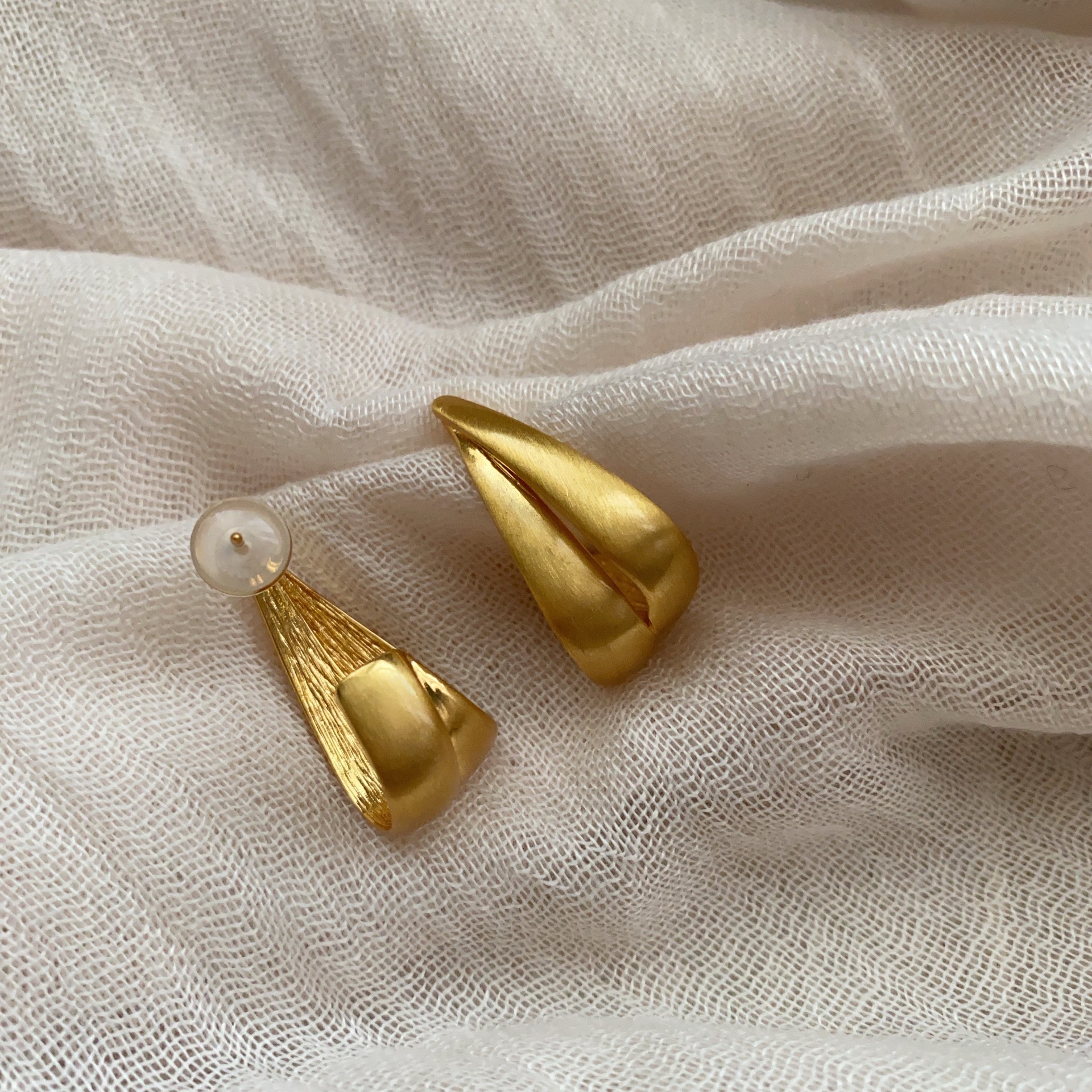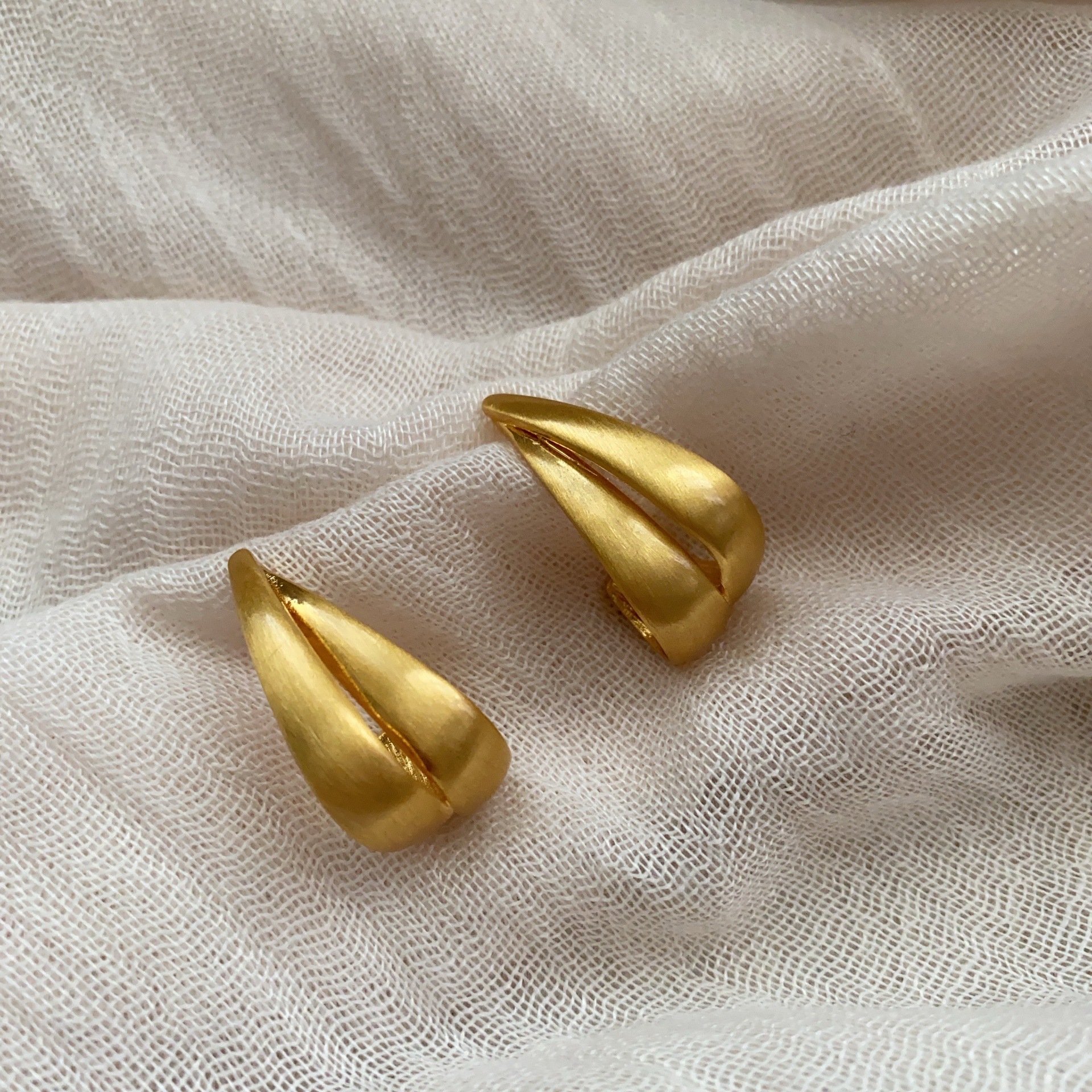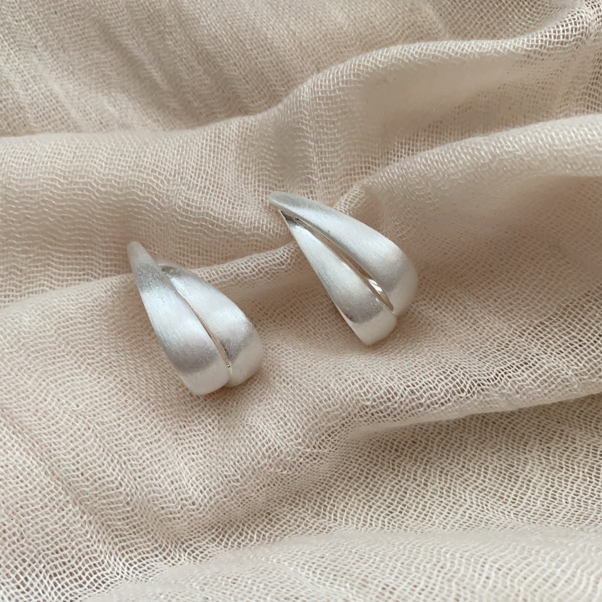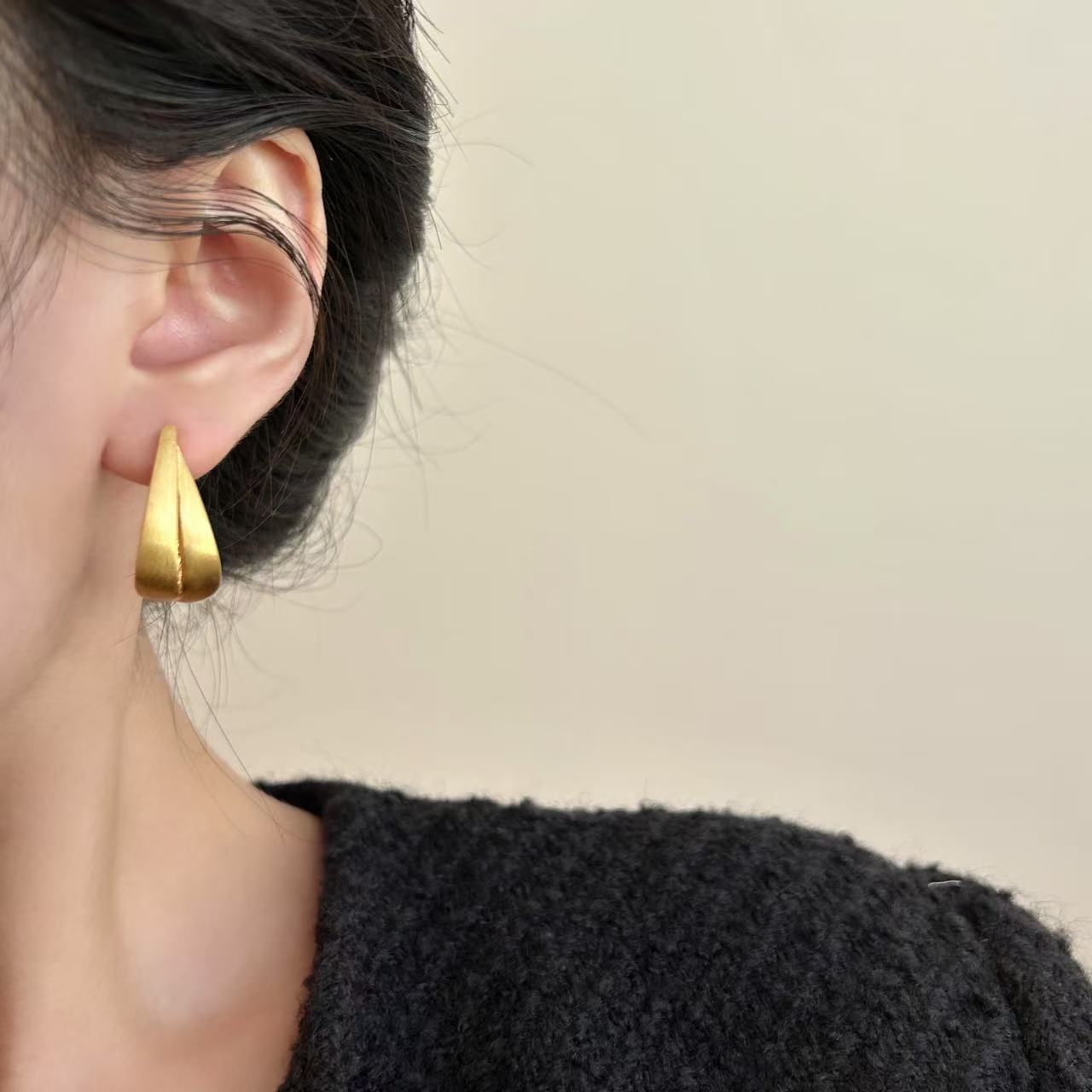 简约金属磨砂拉丝耳环女高端耳钉耳饰2025新爆款金色高级轻奢时尚