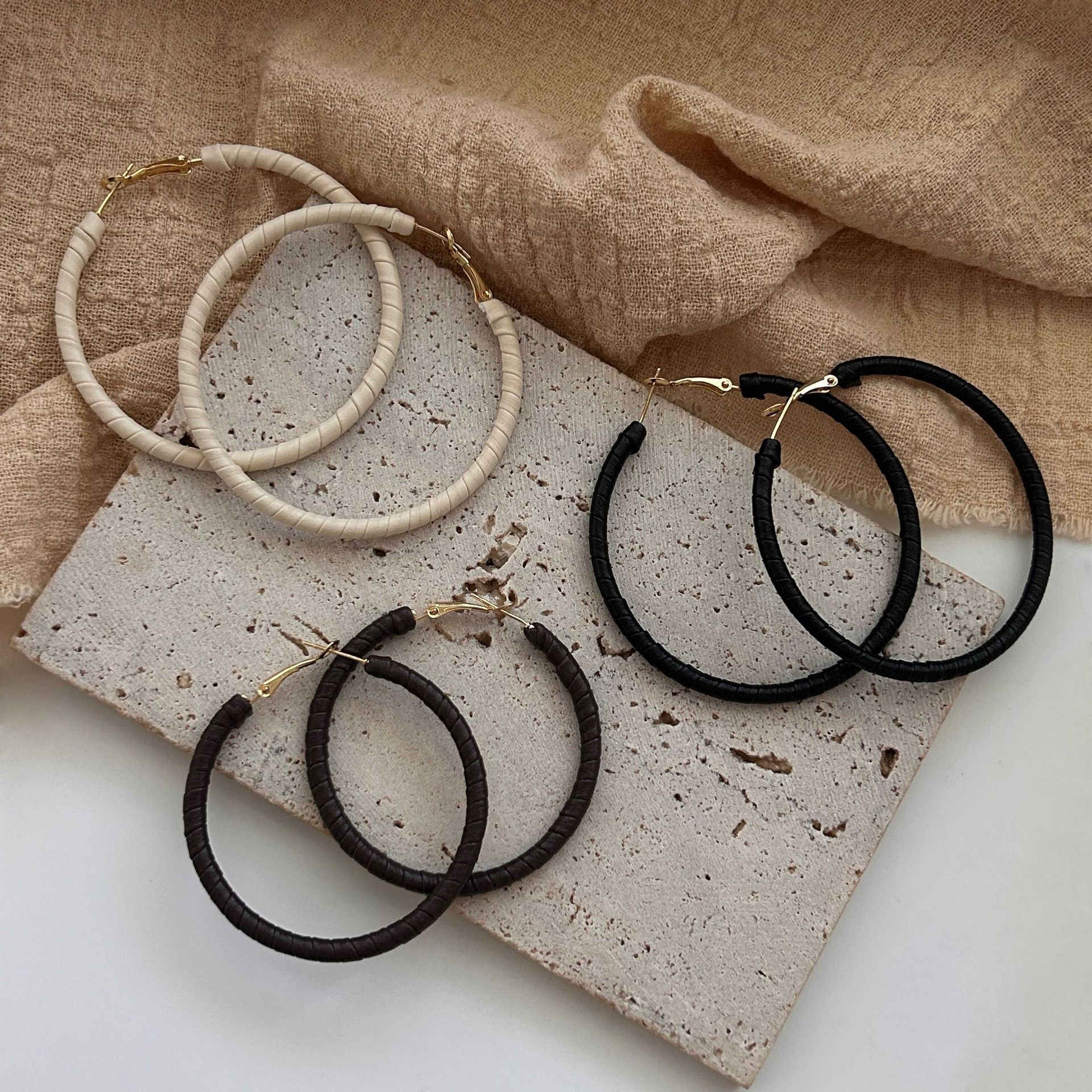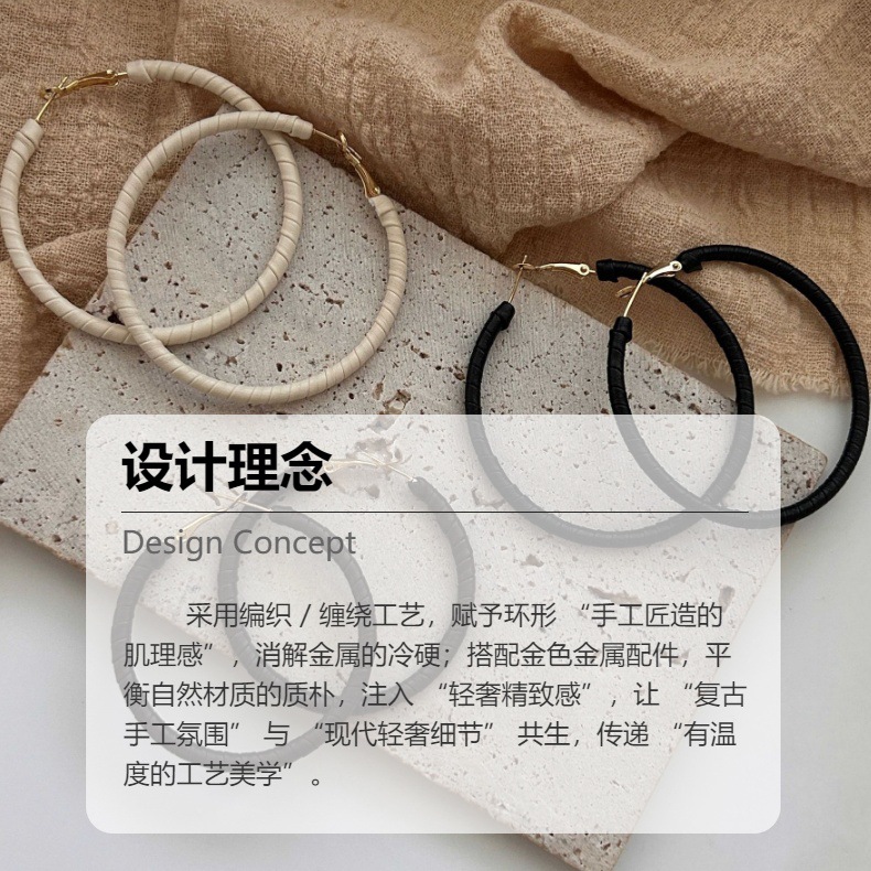 复古皮革缠绕耳圈几何圆形耳环时尚简约百搭耳环小众设计感耳饰女