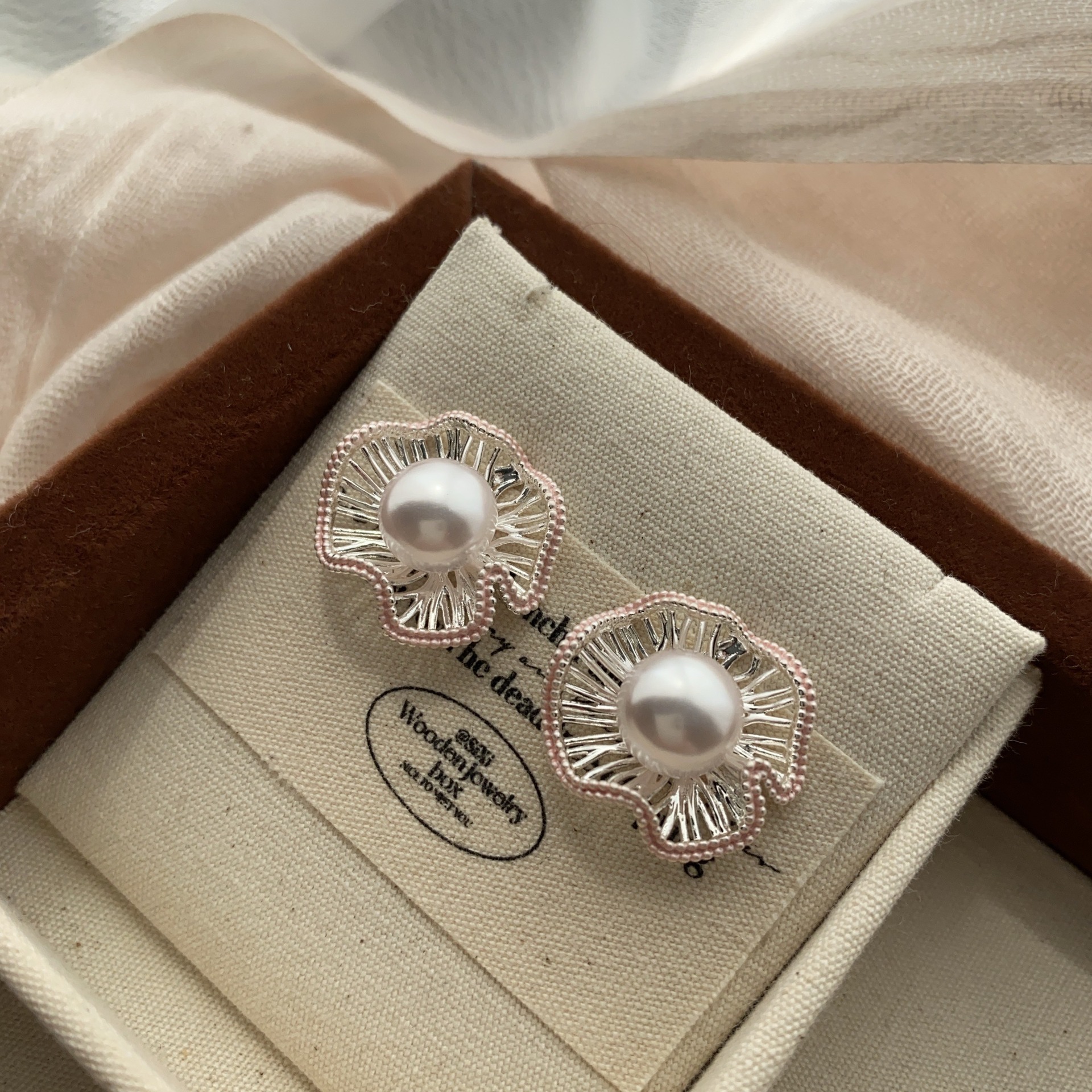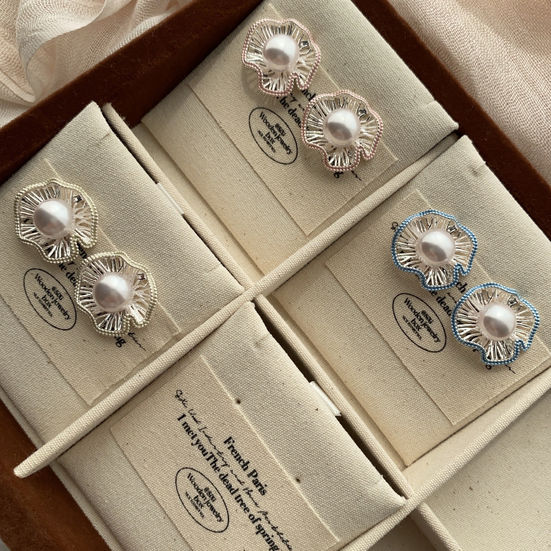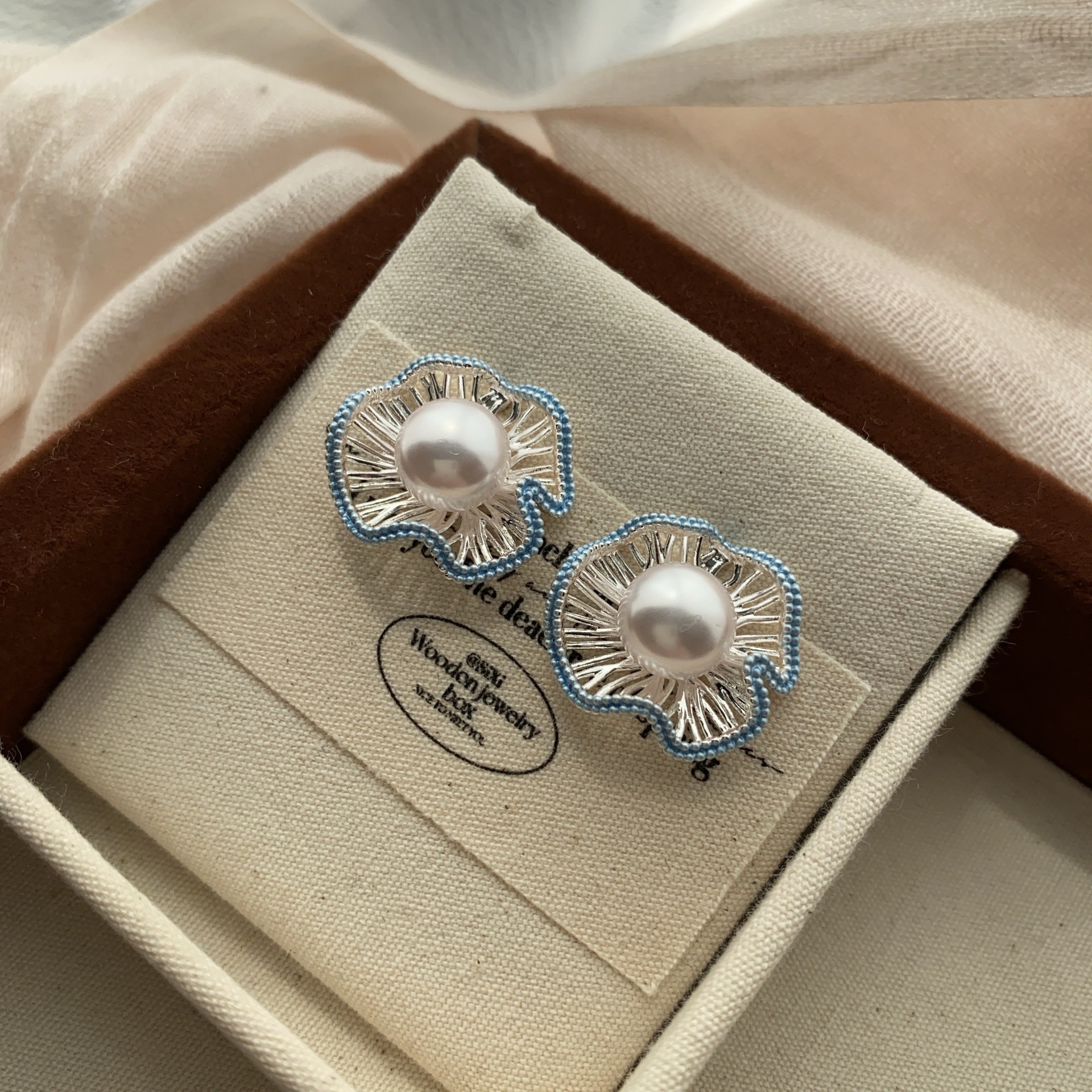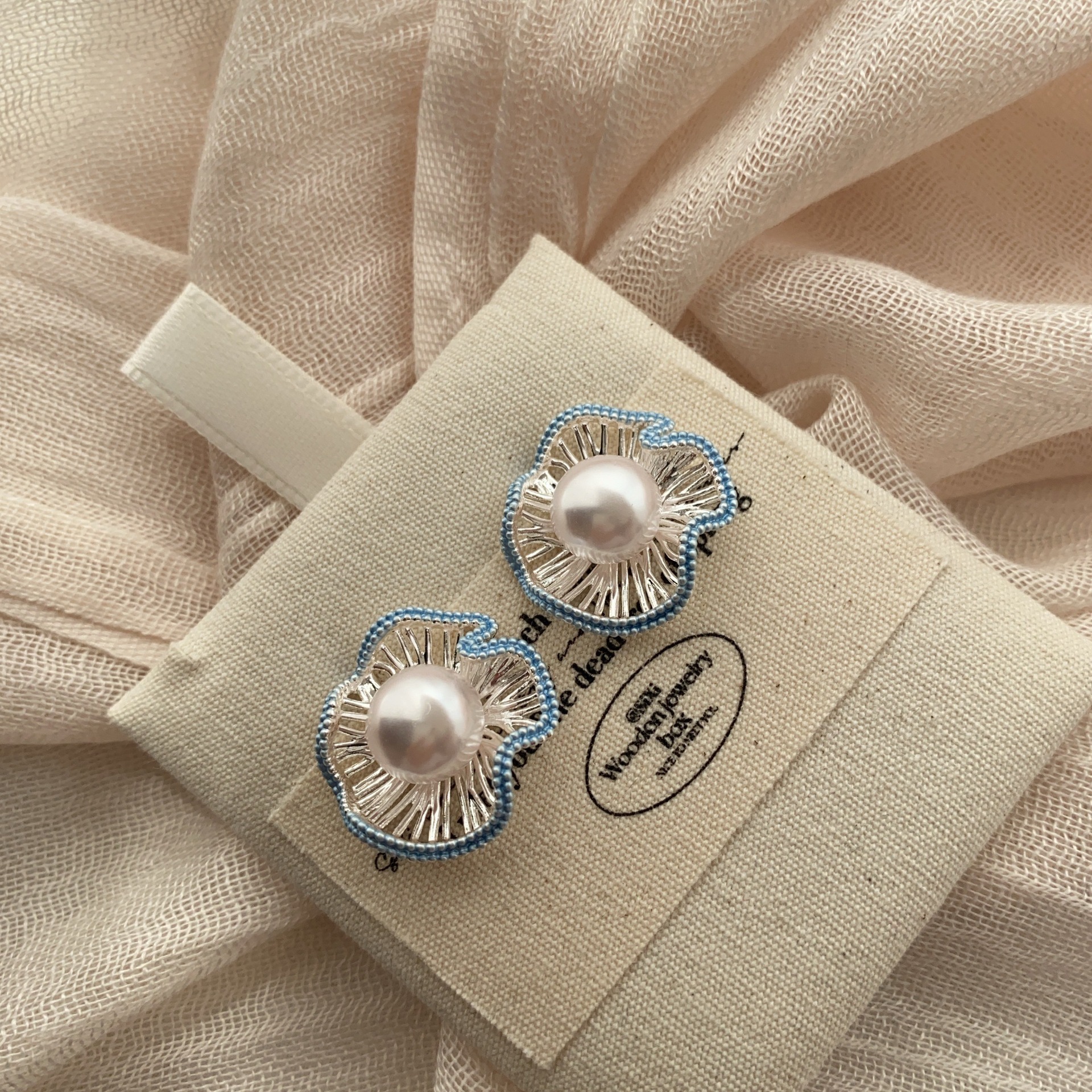夏日度假风彩色波浪花朵镂空珍珠耳环轻奢法式甜美新款时尚耳钉女