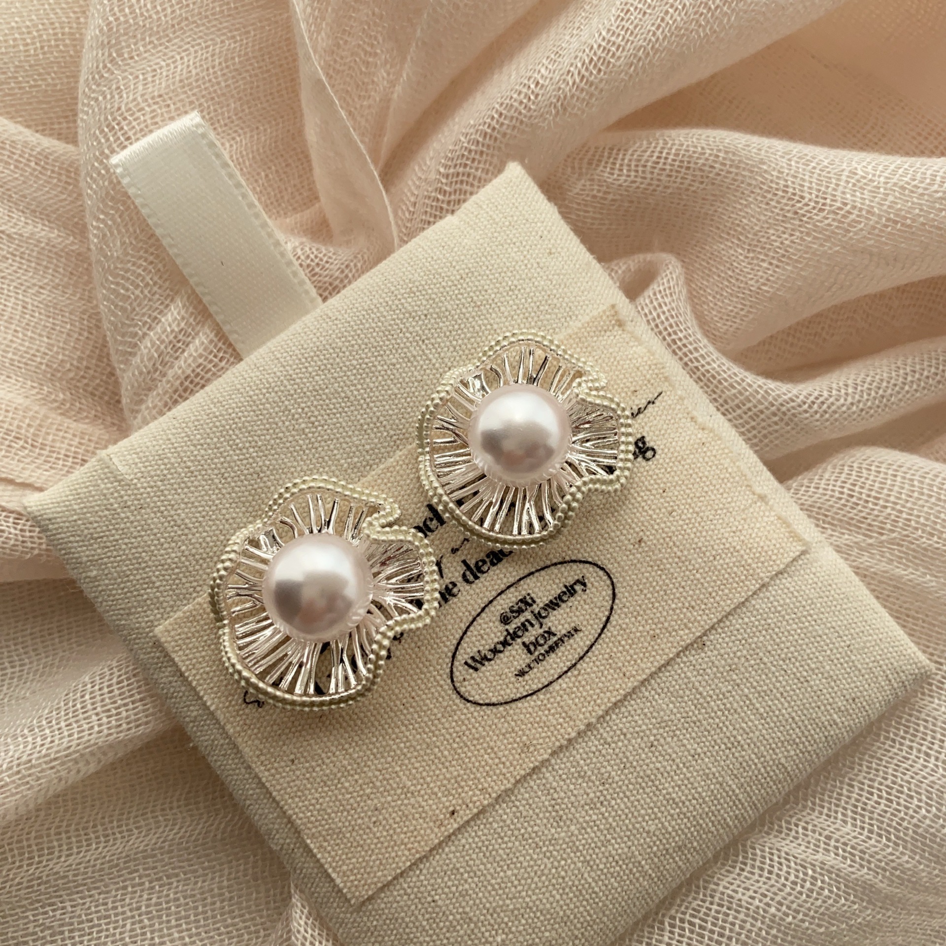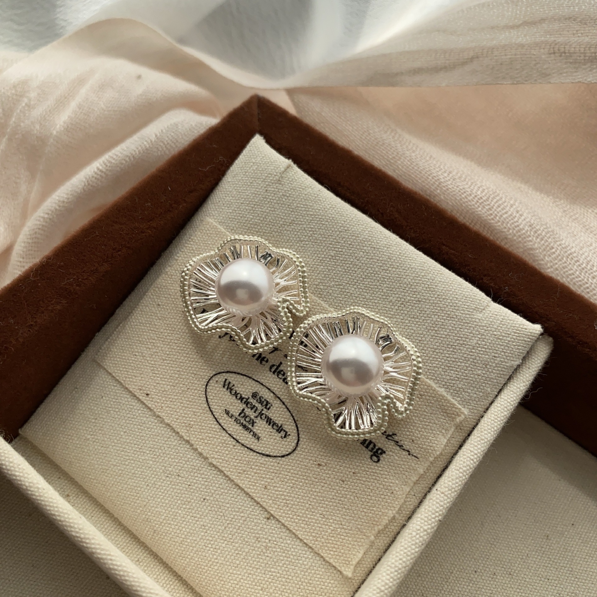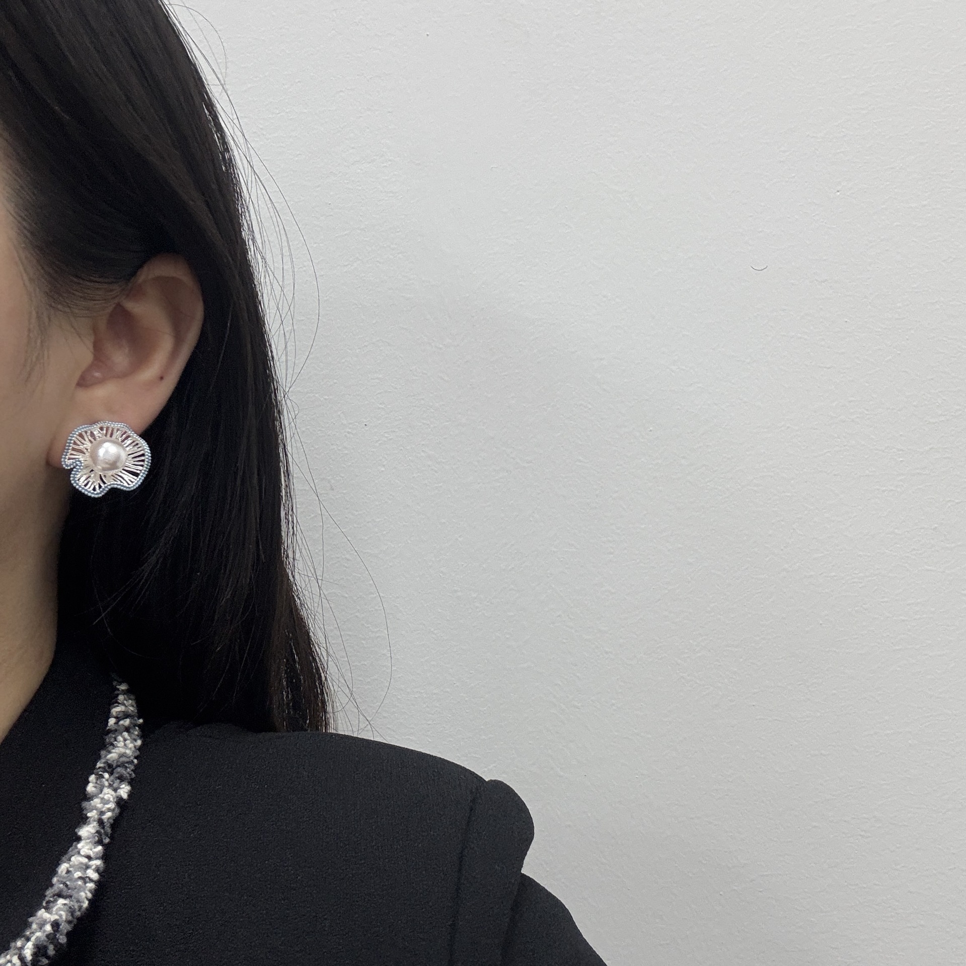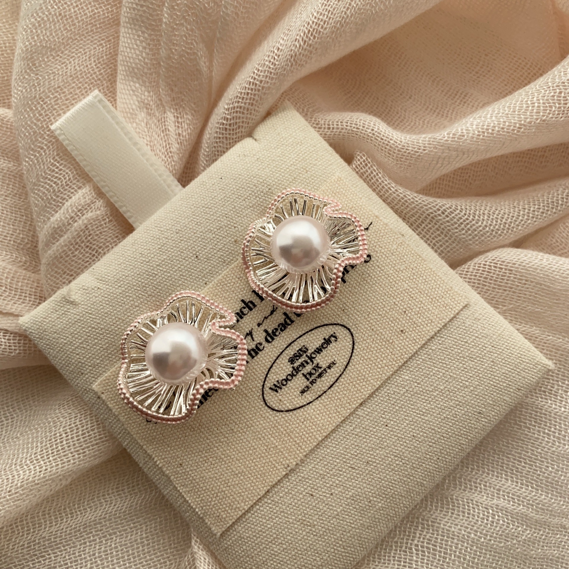 夏日度假风彩色波浪花朵镂空珍珠耳环轻奢法式甜美新款时尚耳钉女
