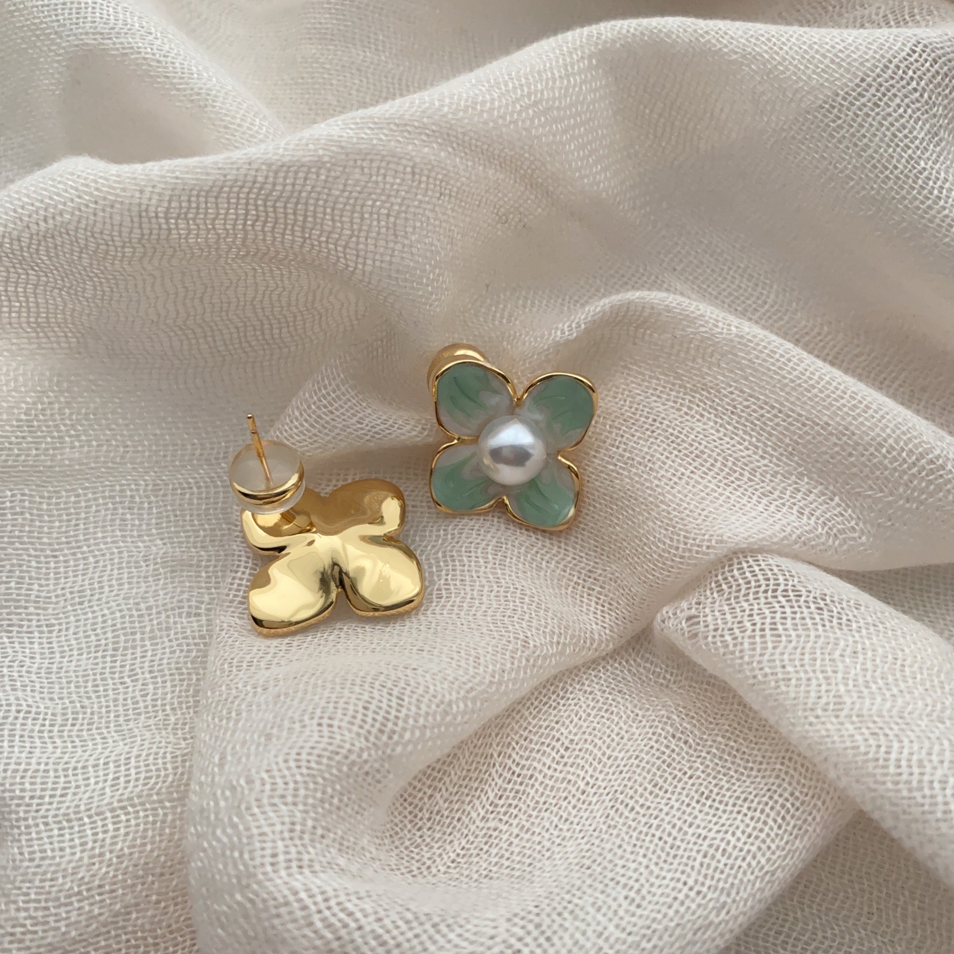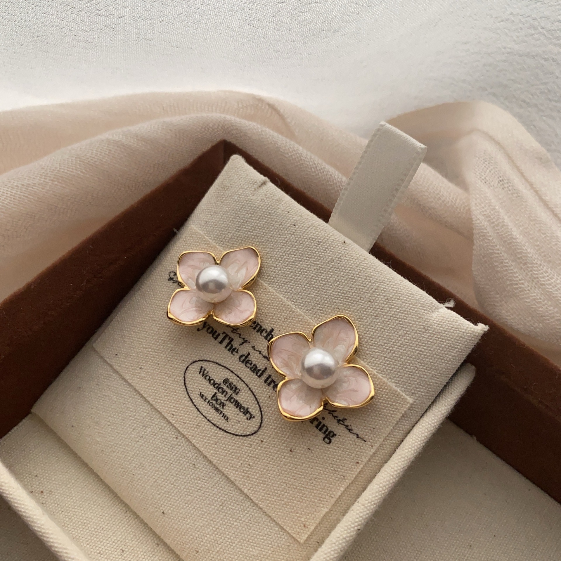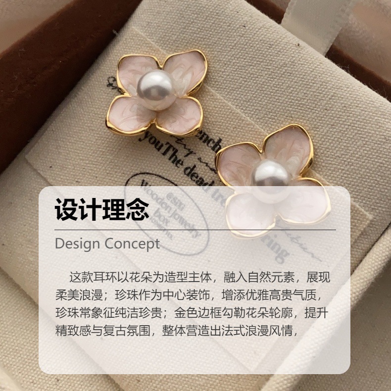 蓝粉两色花朵耳环独特设计感新款潮耳钉高级感法式轻奢耳饰耳坠女