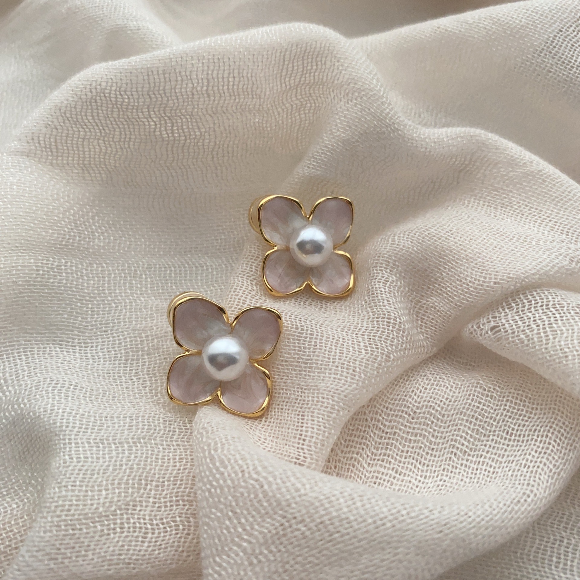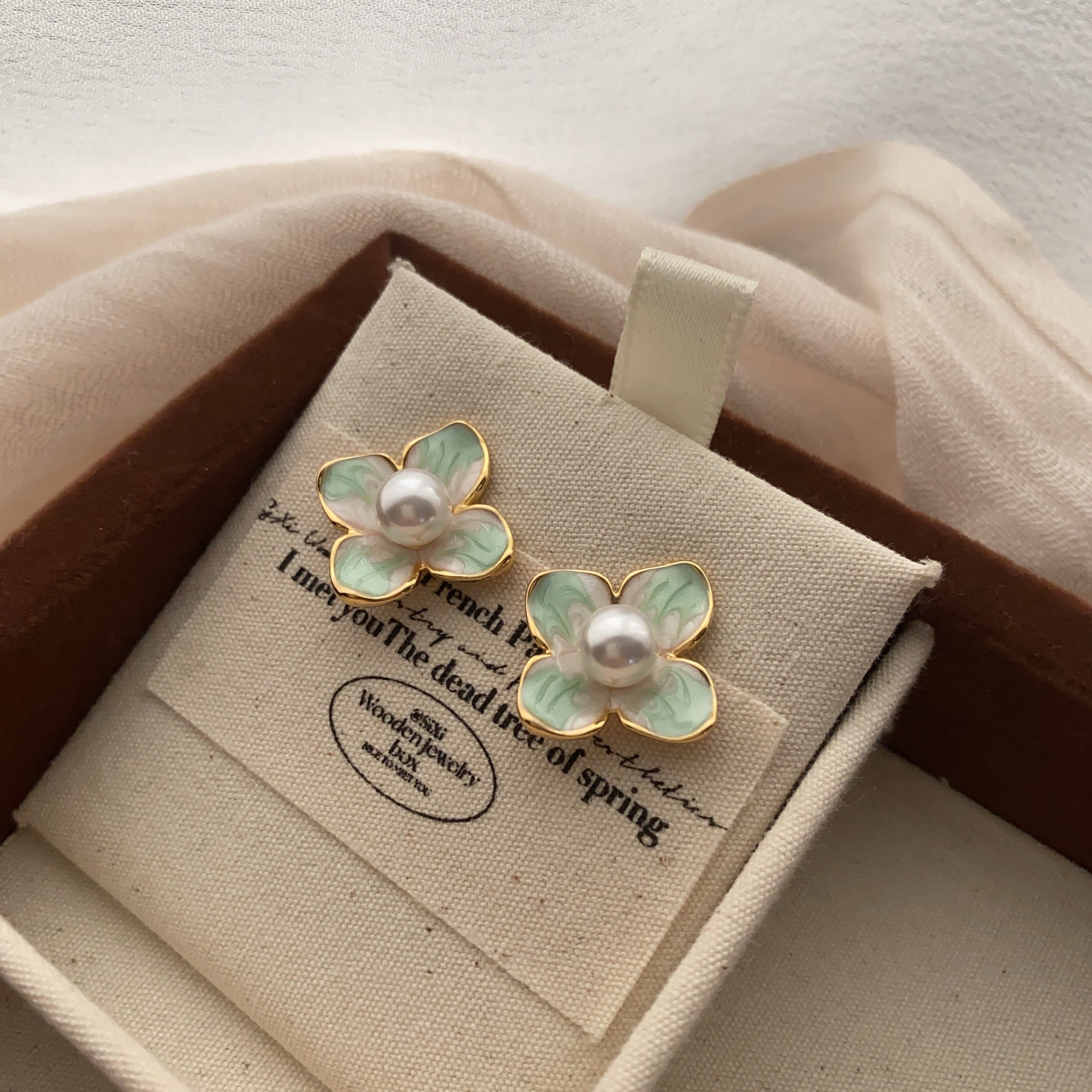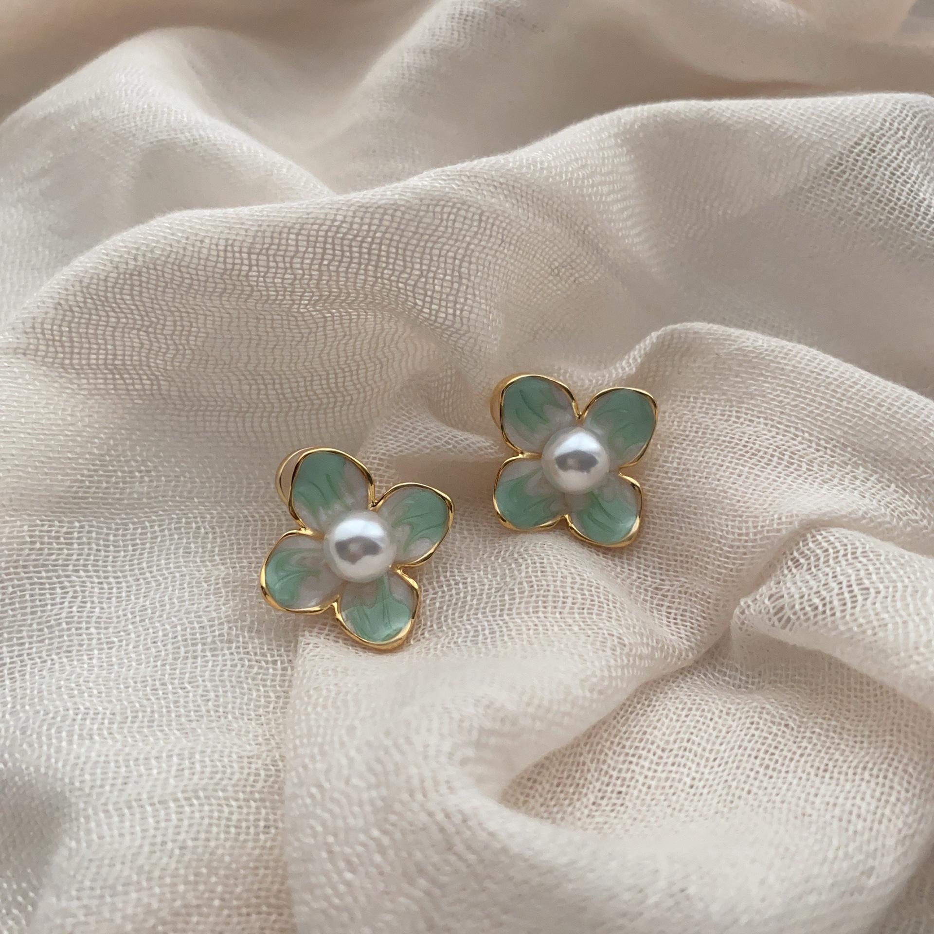 蓝粉两色花朵耳环独特设计感新款潮耳钉高级感法式轻奢耳饰耳坠女