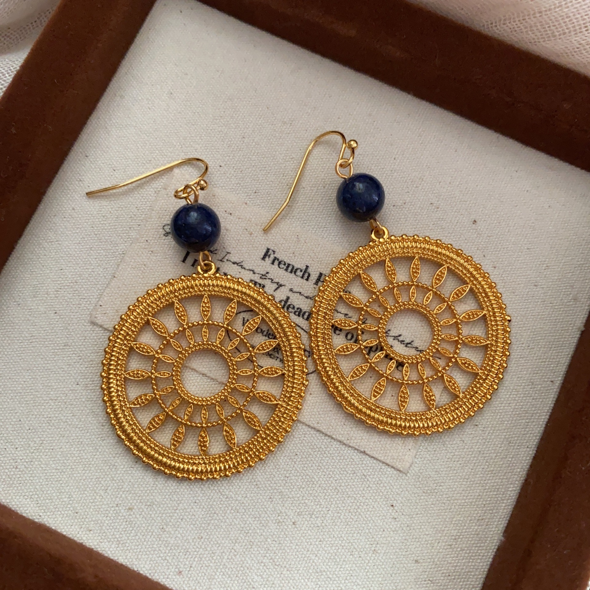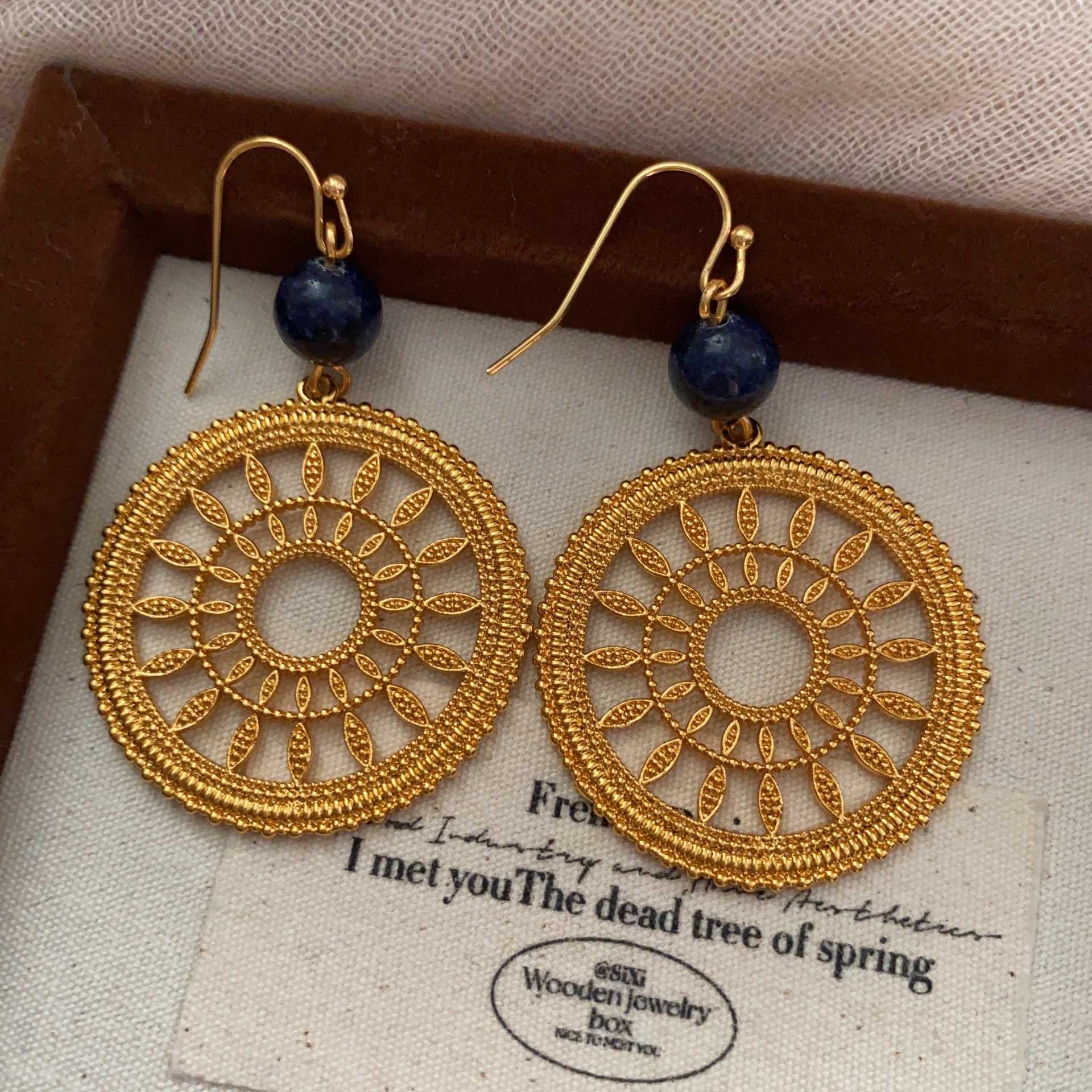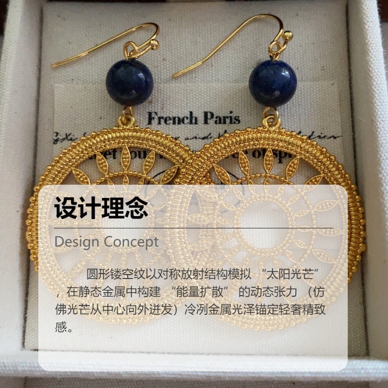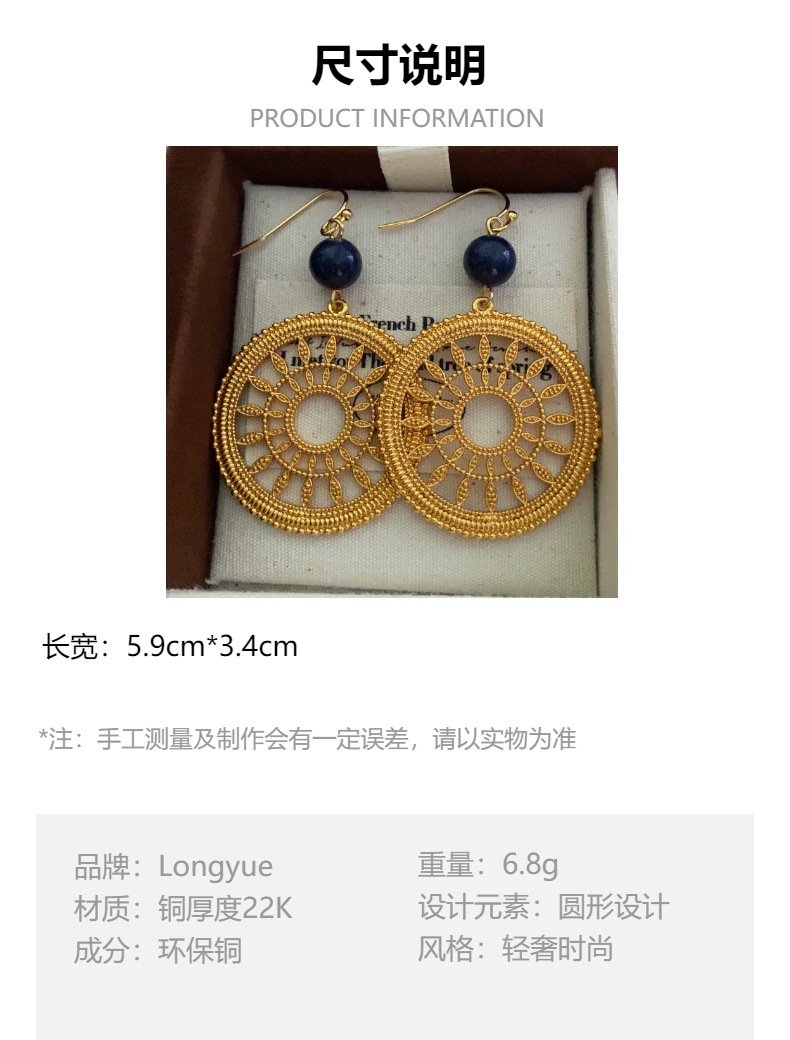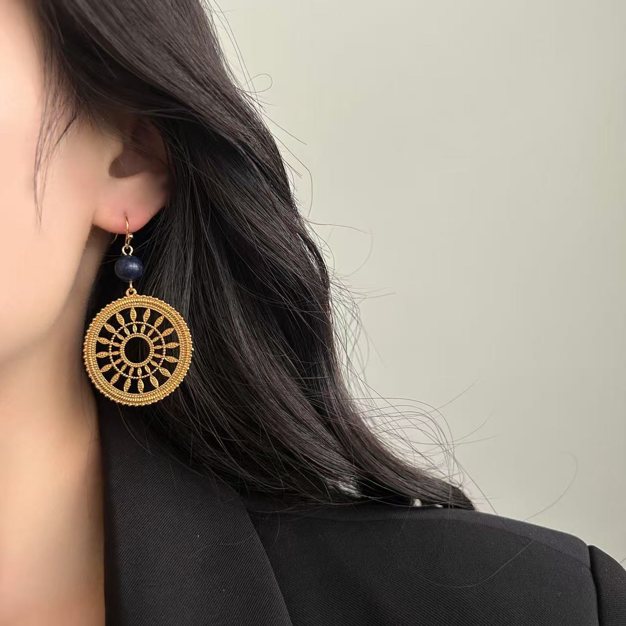 冷冽金属圆形镂空纹耳环耳坠轻奢精致复古高级感2025新款中式耳饰