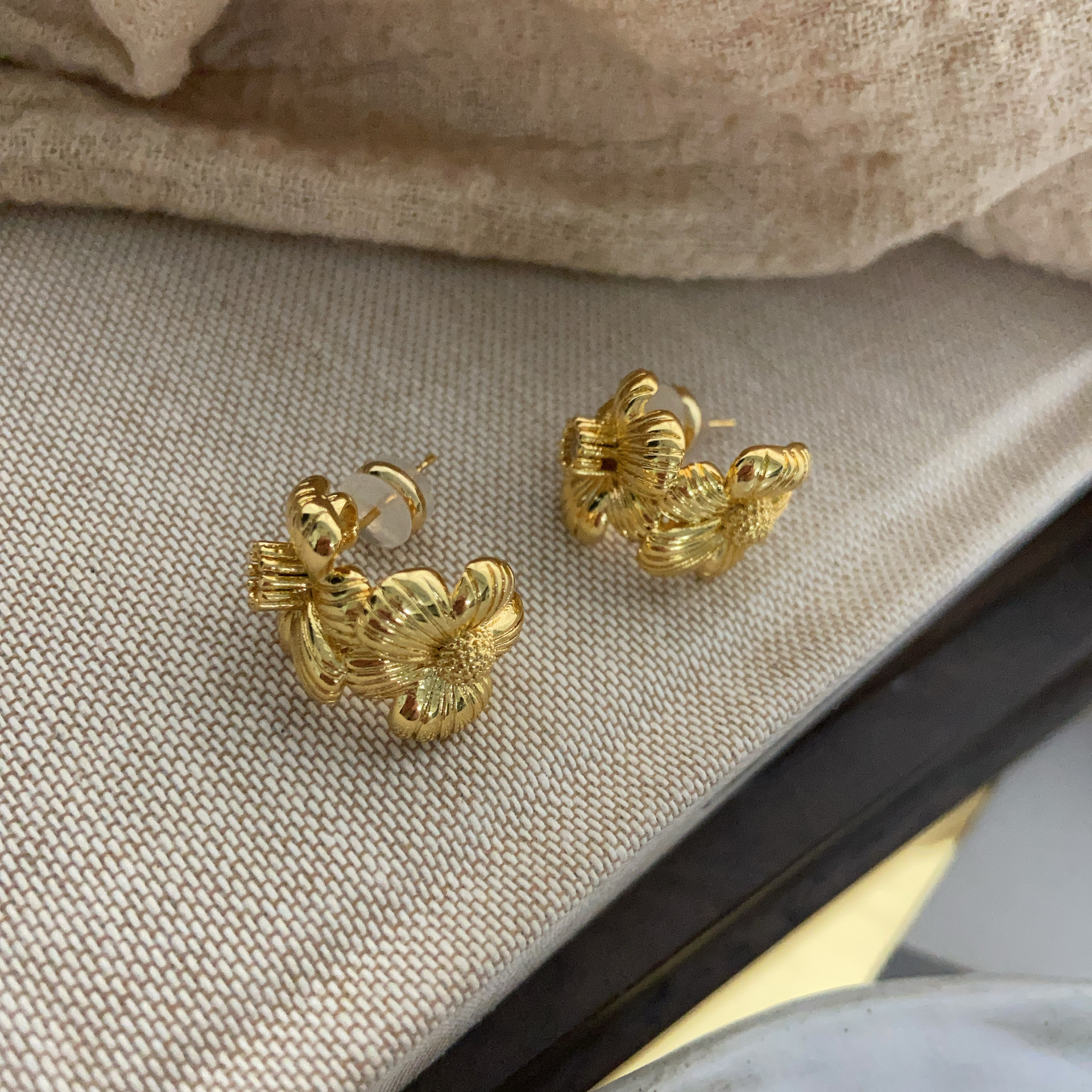 夸张大气花朵耳环金属欧美风小众设计感爆款耳饰女轻奢高级感耳钉