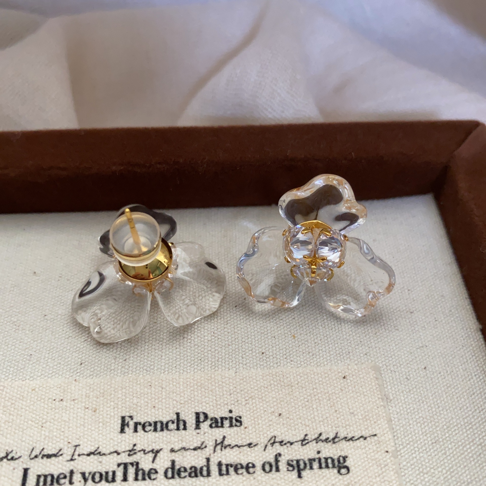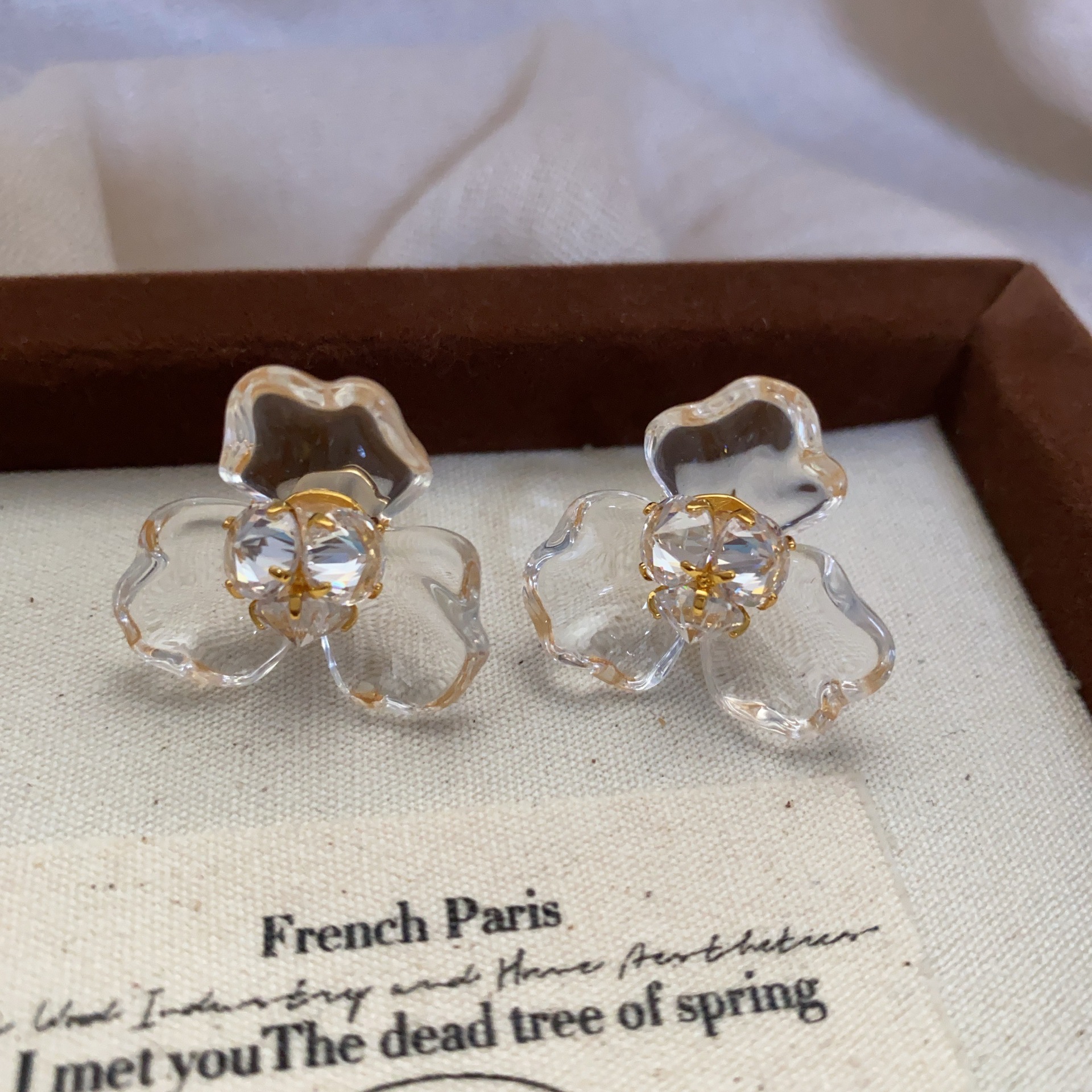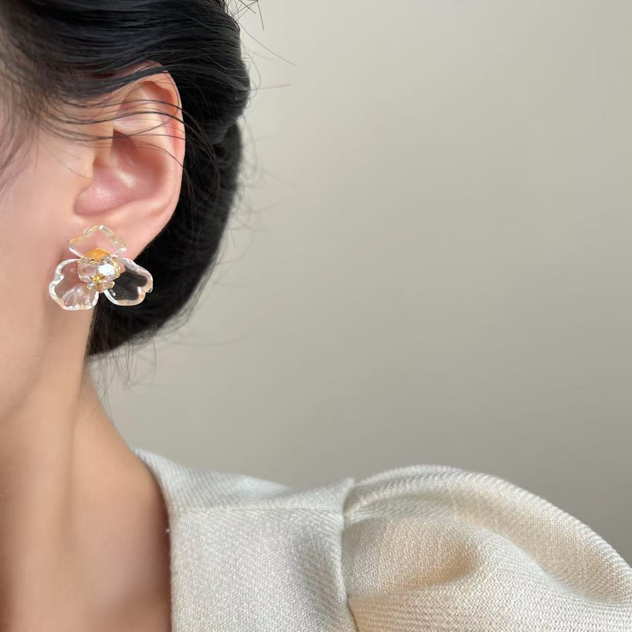 韩系小清新透明花朵耳钉甜美百搭耳环耳饰气质时尚简约小众高级感